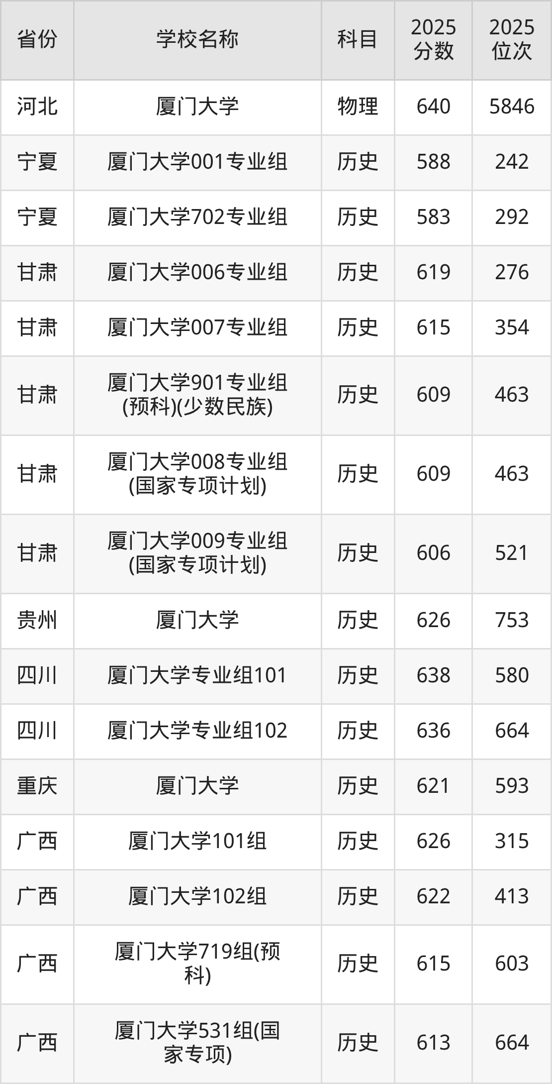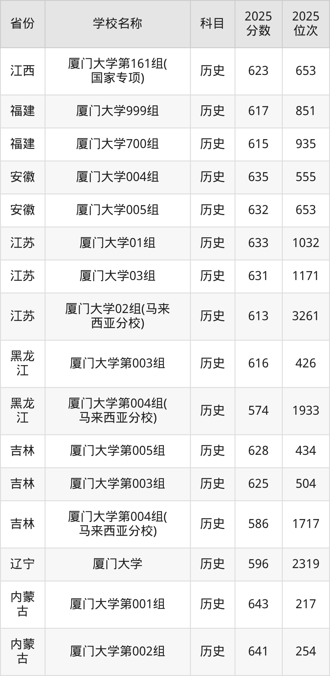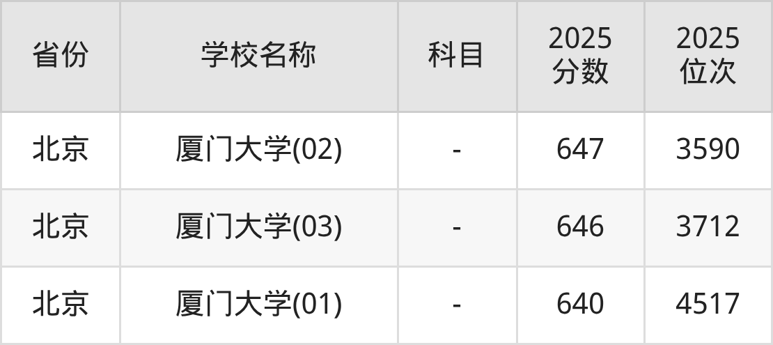 一、2025厦门大学录取分数线