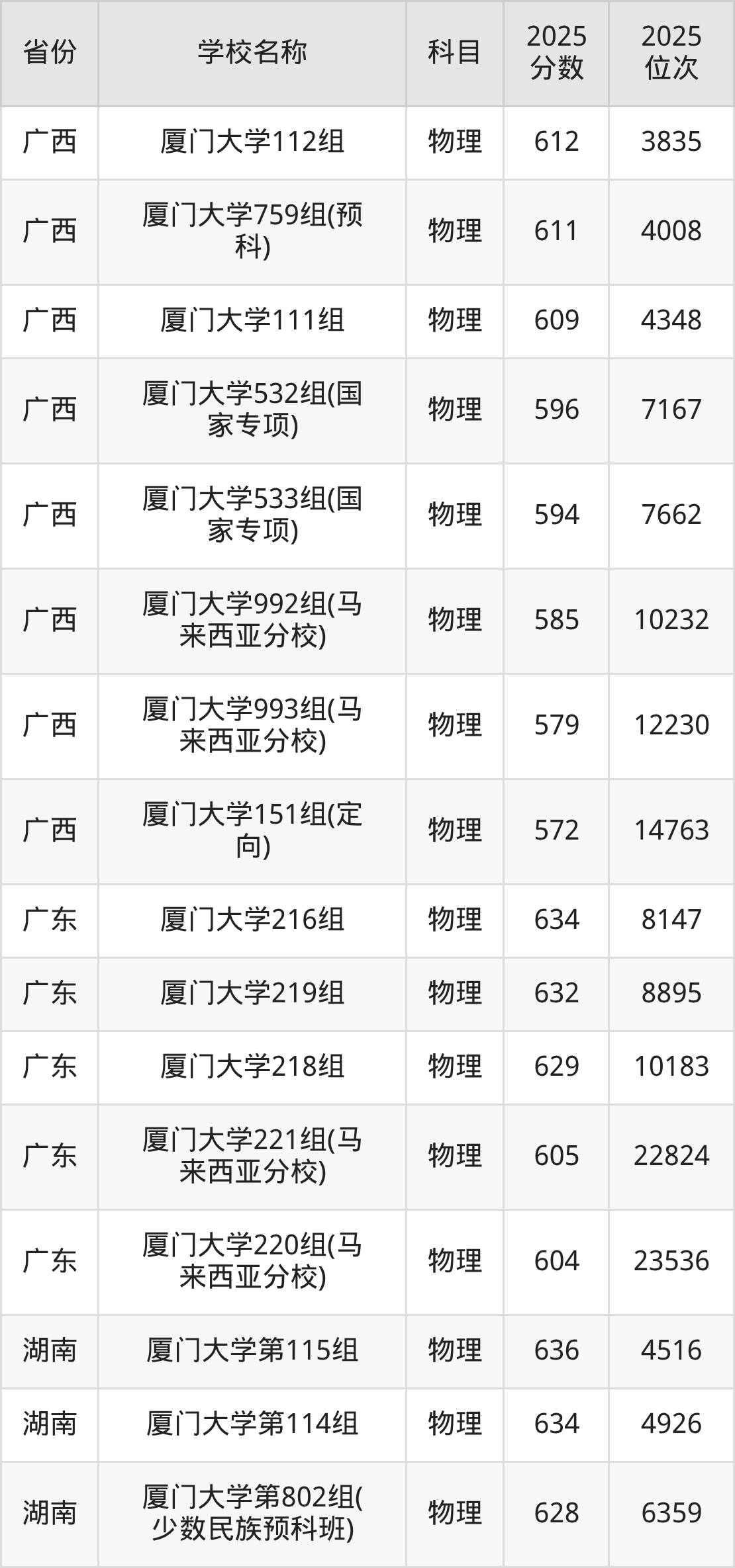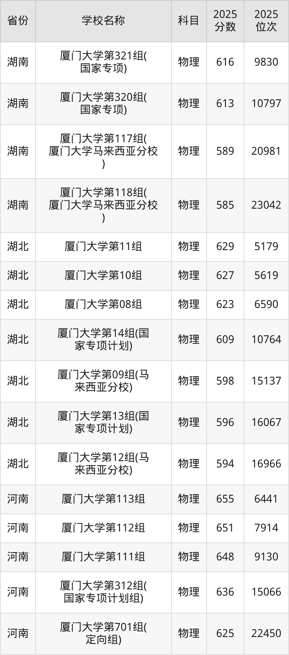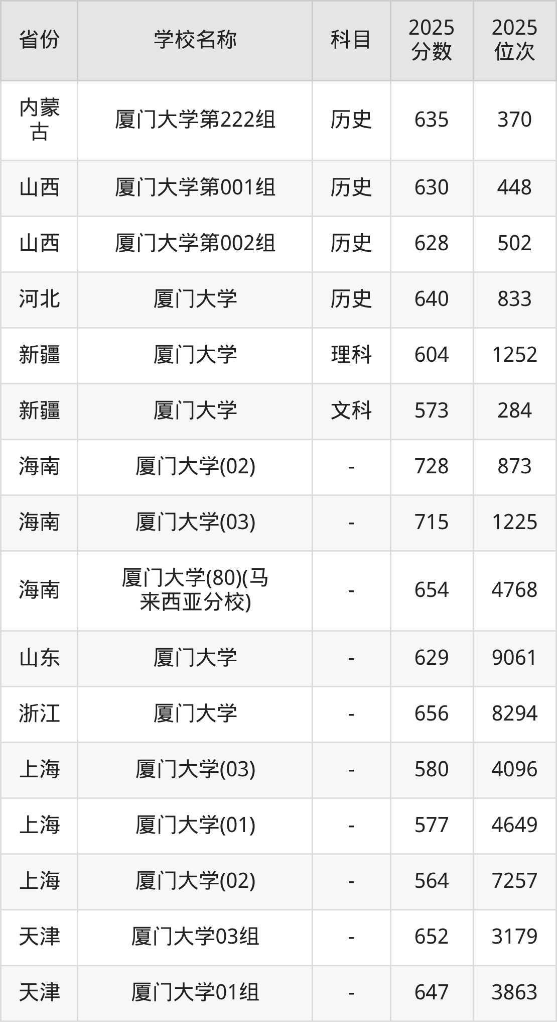 一、2025厦门大学录取分数线