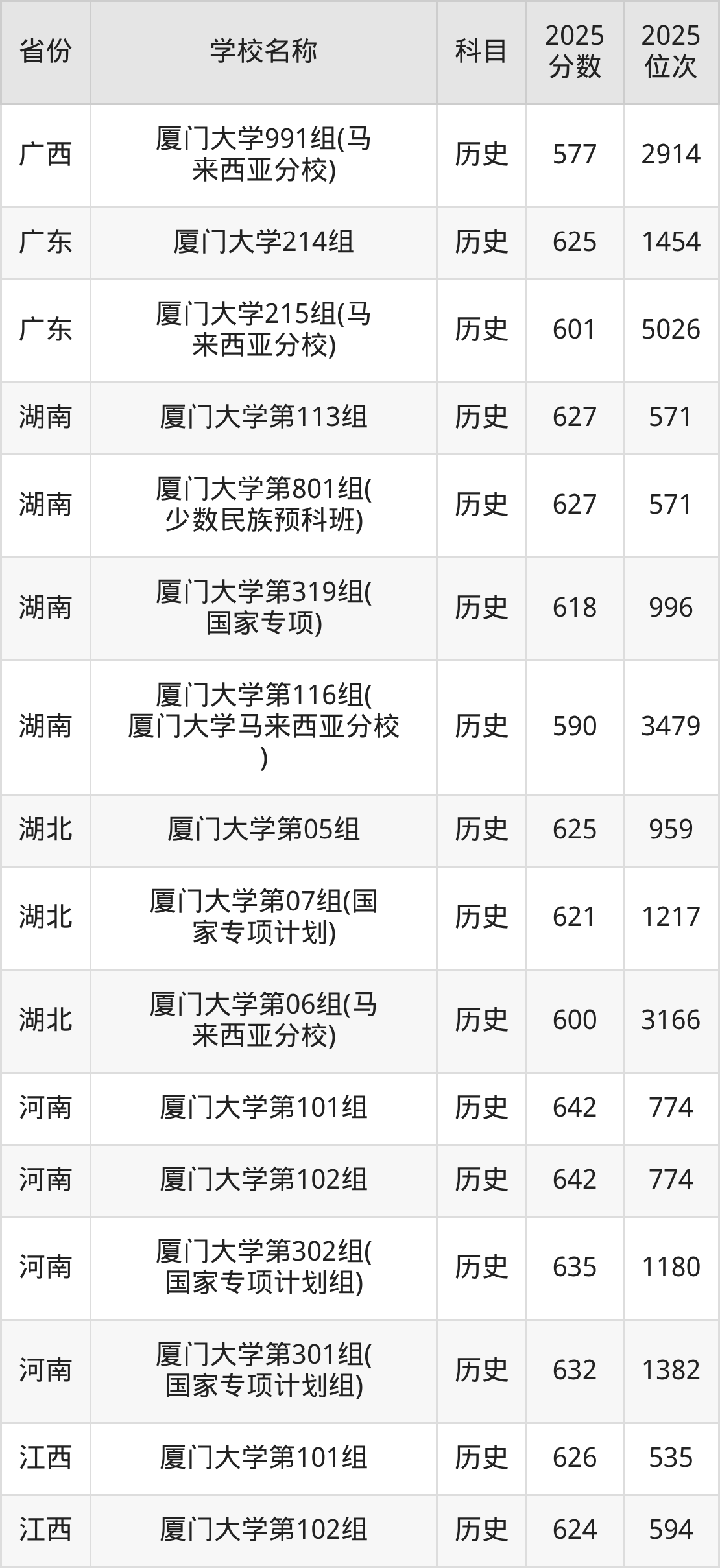 厦门大学2025年有2个专业组面向福建省内首选了历史科目的考生招生: