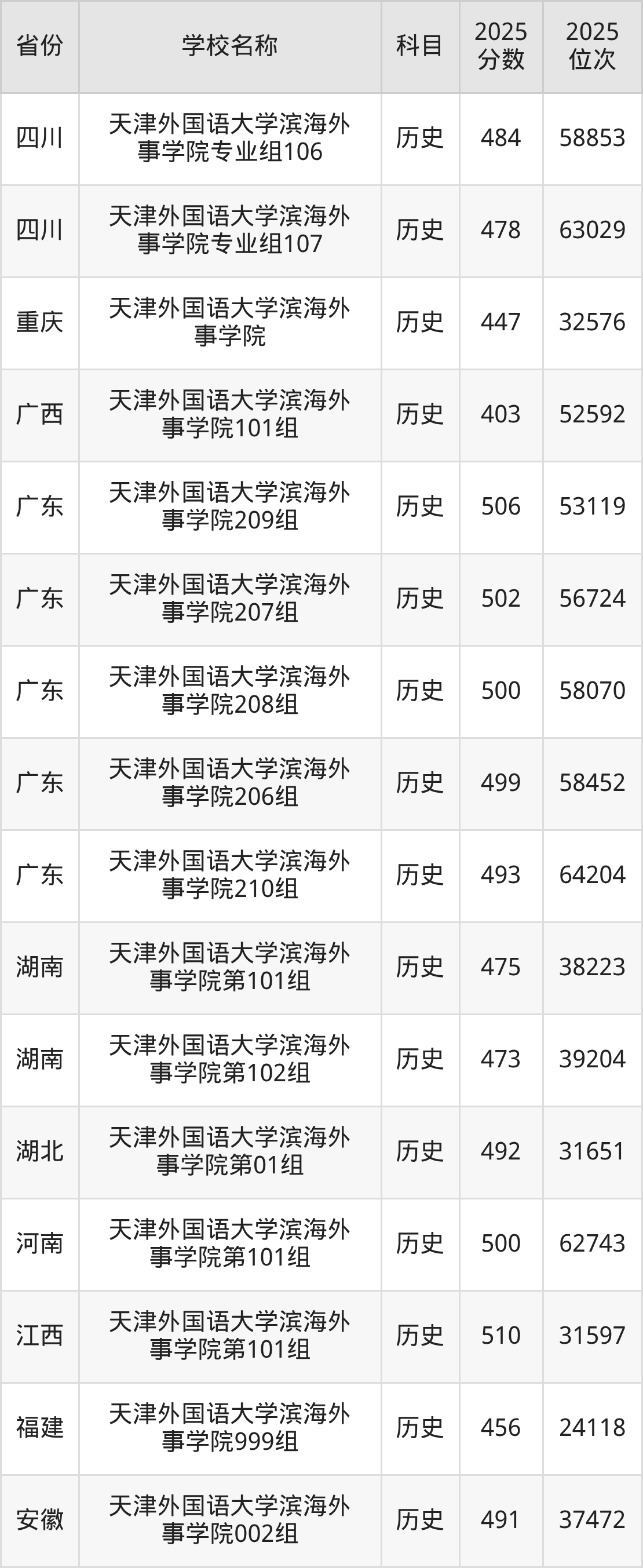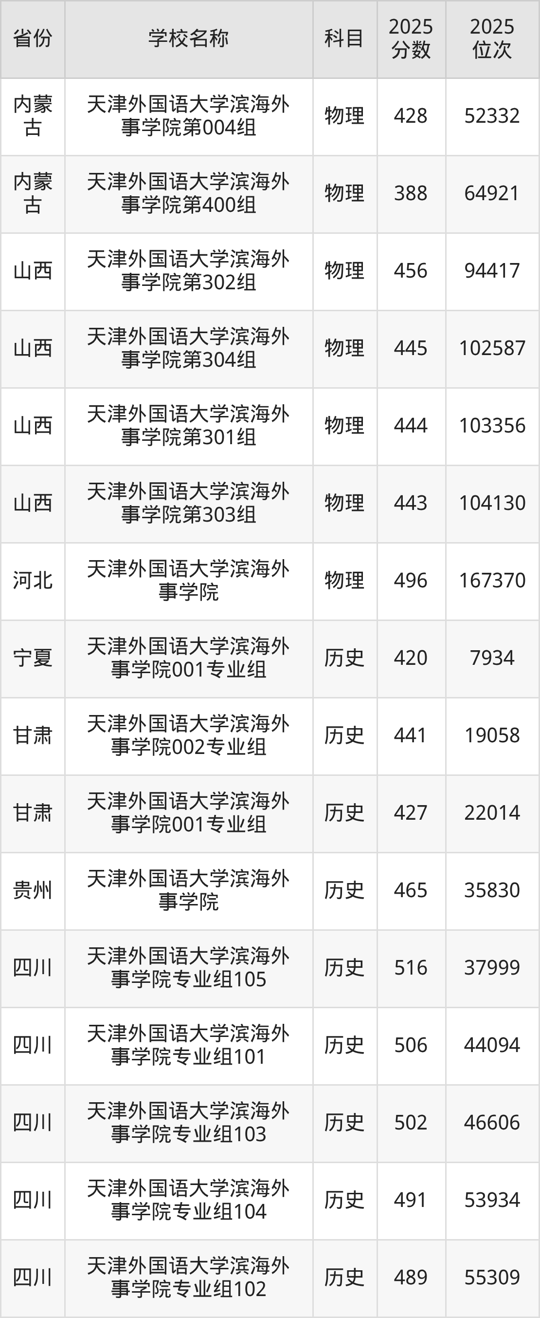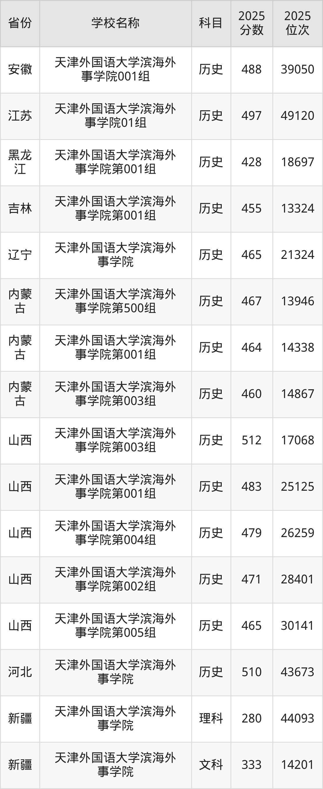 一、2025天津外国语大学滨海外事学院录取分数线