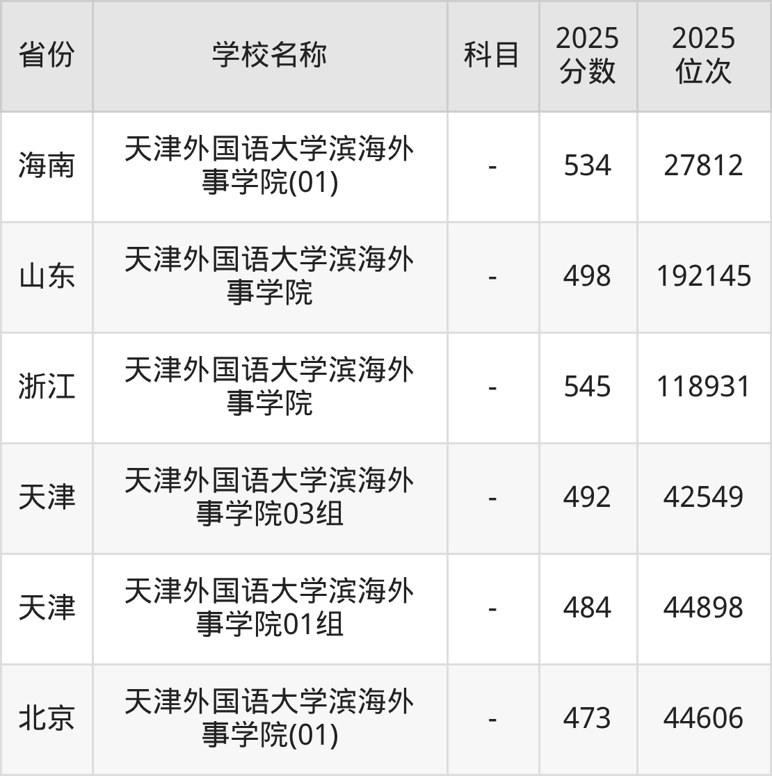 2025年天津外国语大学滨海外事学院在全国各省本科的最低录取分数线在280~545分之间。浙江高考生最低545分能上天津外国语大学滨海外事学院、海南高考生最低534分能上天津外国语大学滨海外事学院……下文将展示天津外国语大学滨海外事学院在全国26个高考省份中的本科最低投档录取分汇总!