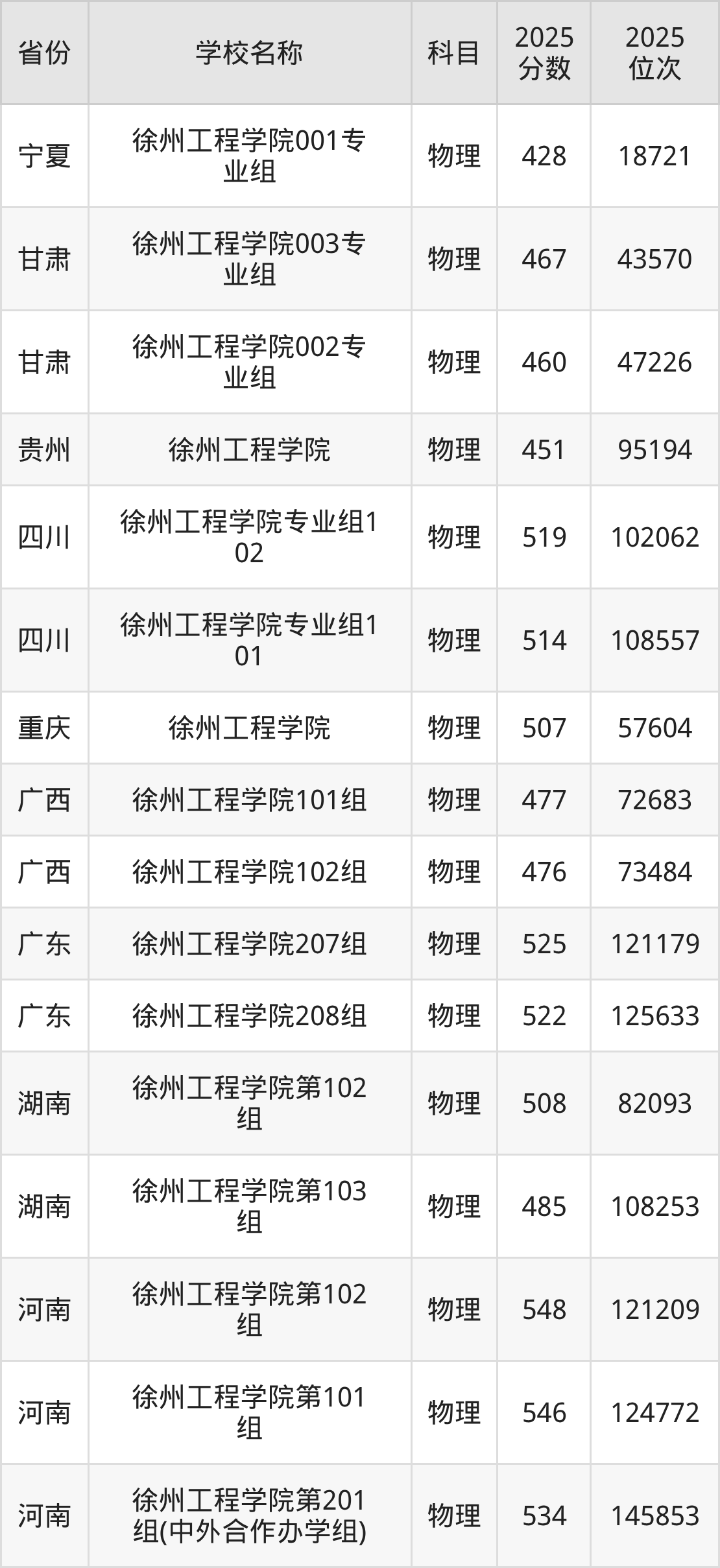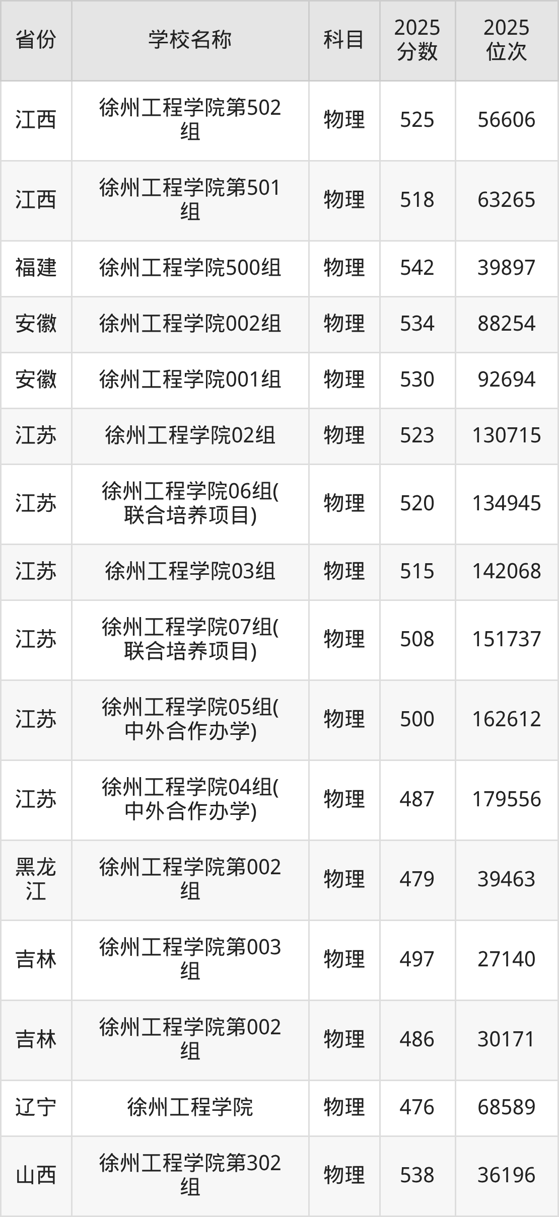 徐州工程学院2025年有6个专业组面向江苏省内首选了物理科目的考生招生: