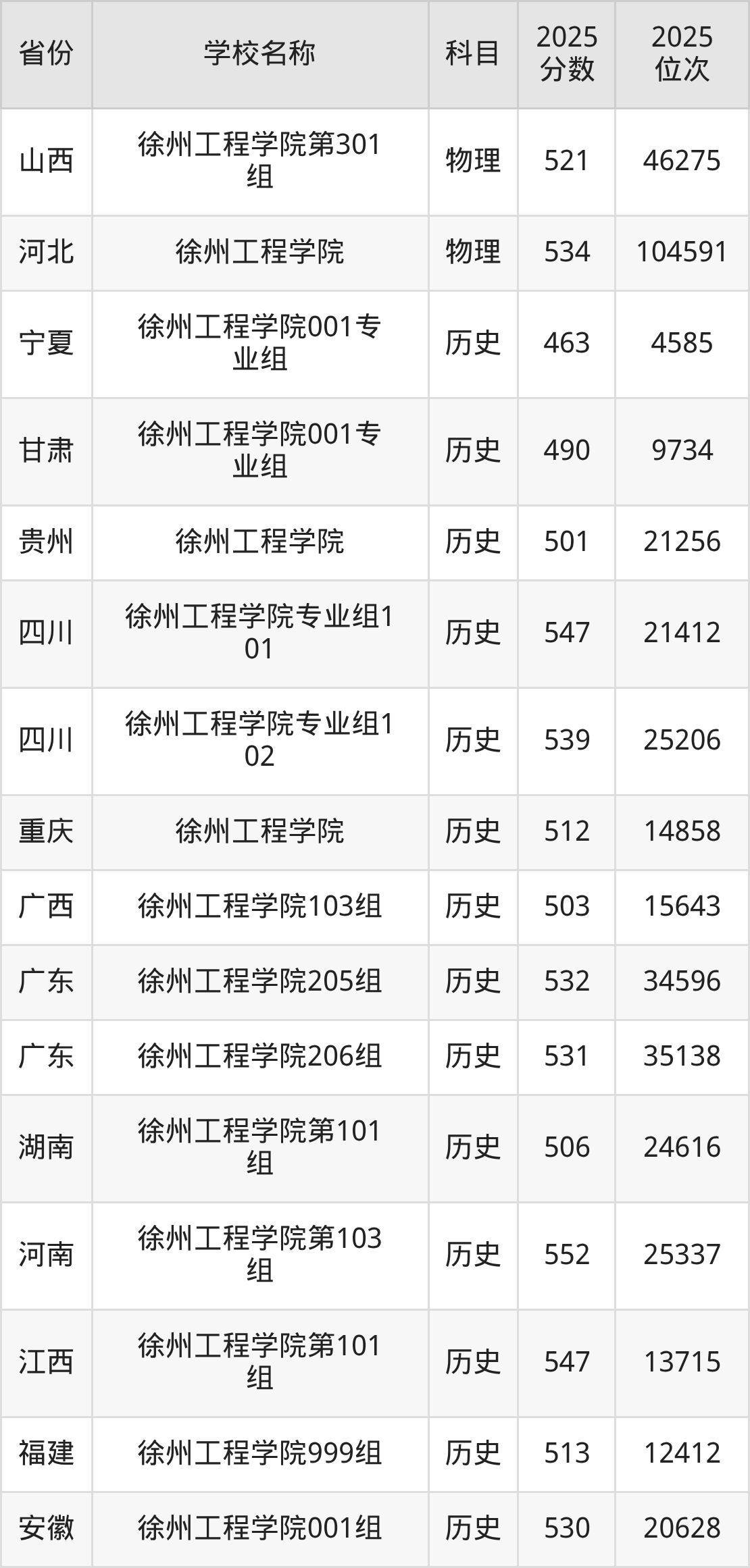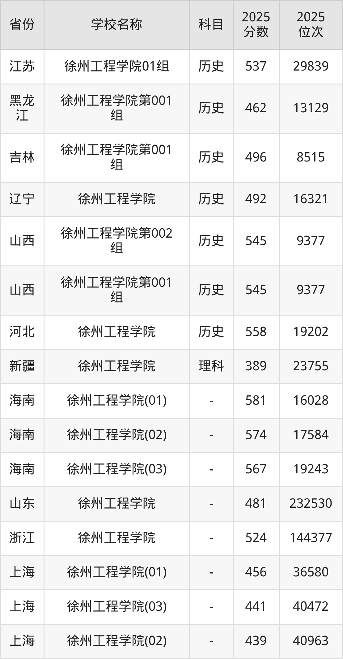 徐州工程学院2025年有1个专业组面向江苏省内首选了历史科目的考生招生: