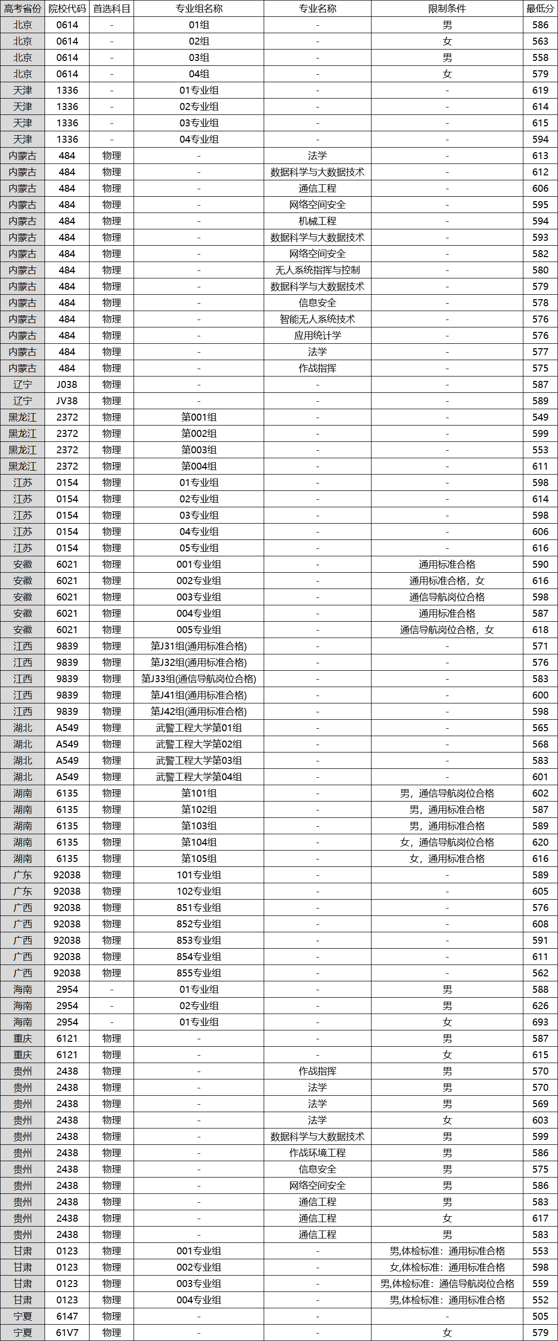 武警工程大学2025年在全国各省的录取分数线一览表具体如下: