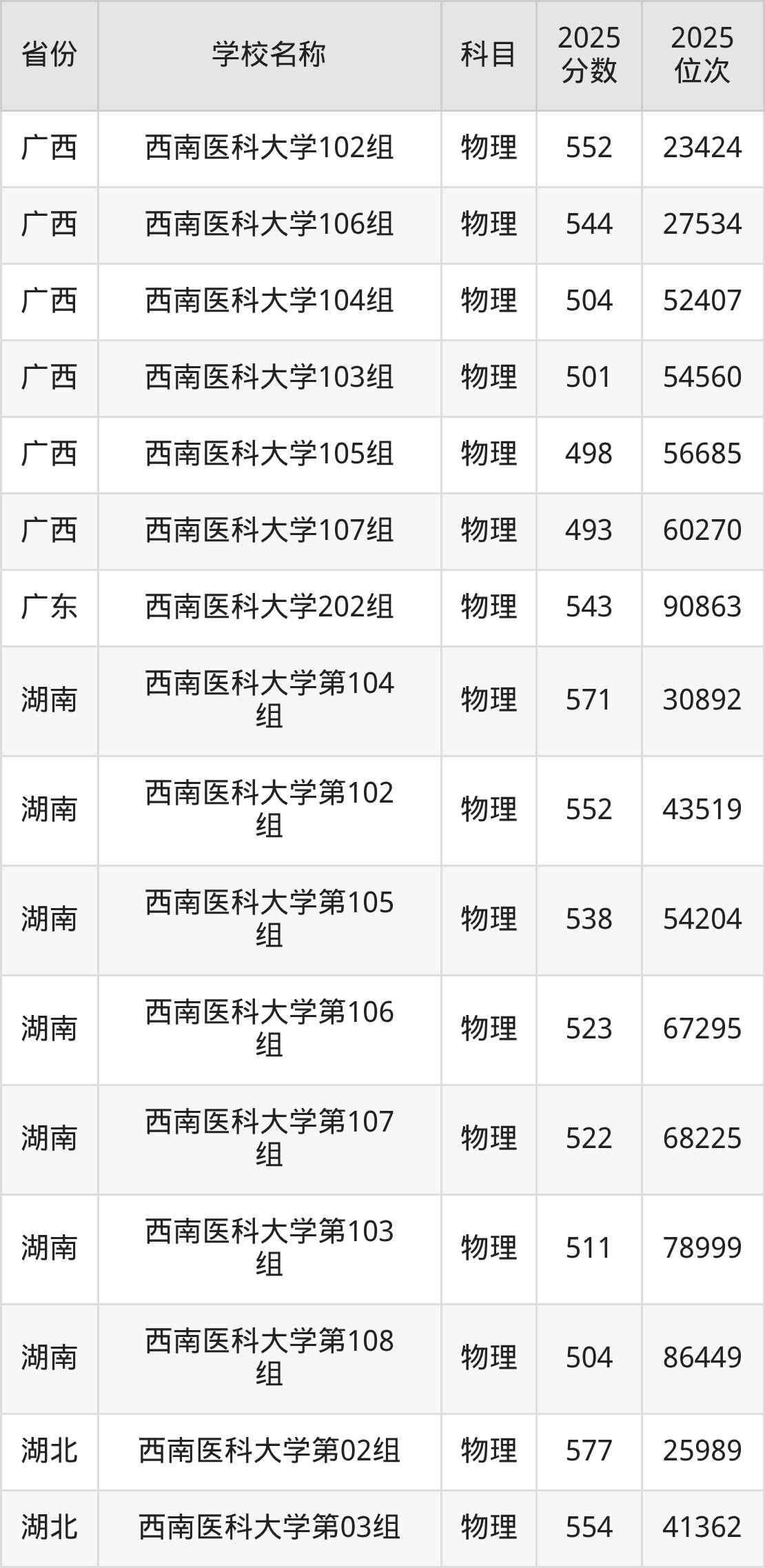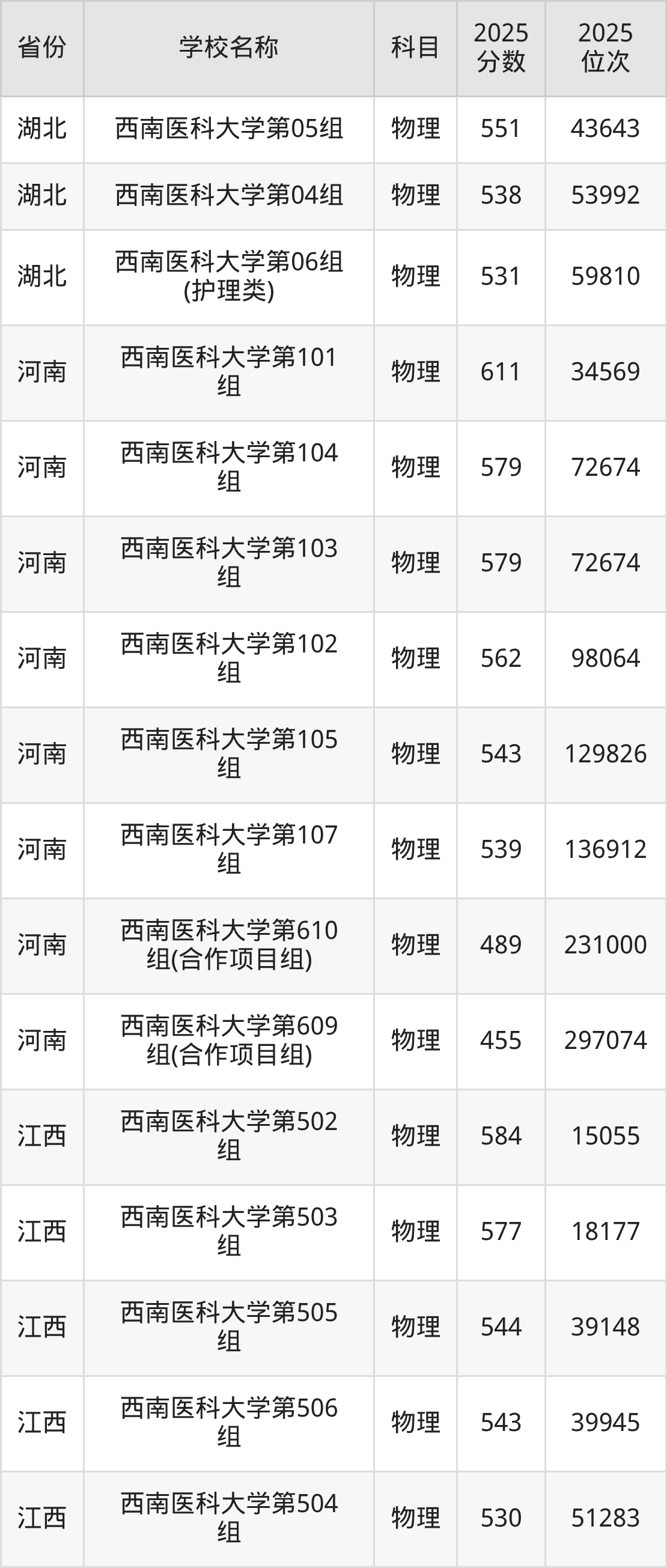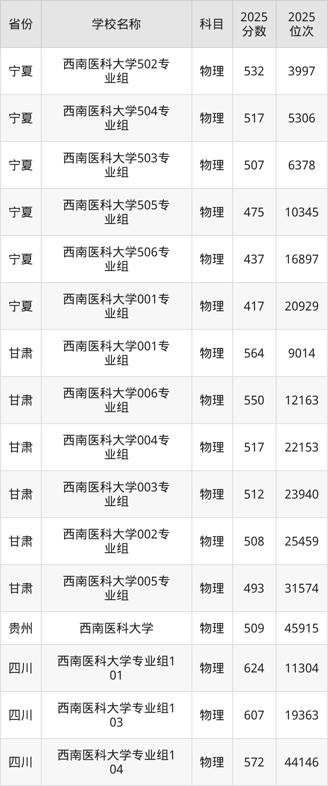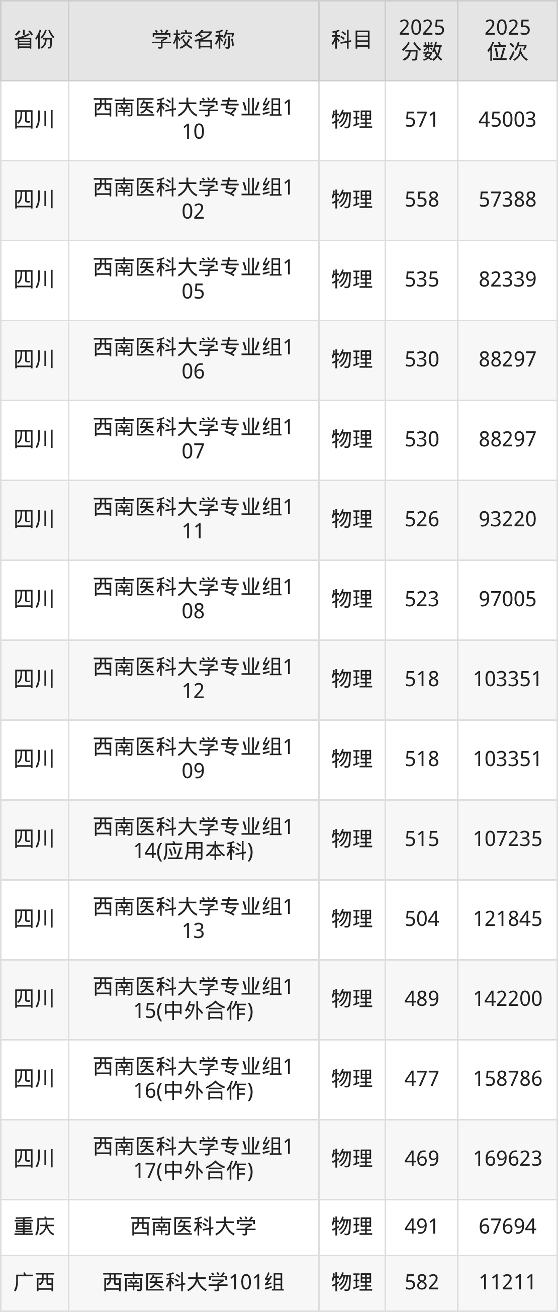 西南医科大学2025年有102个专业组面向四川省内首选了物理科目的考生招生: