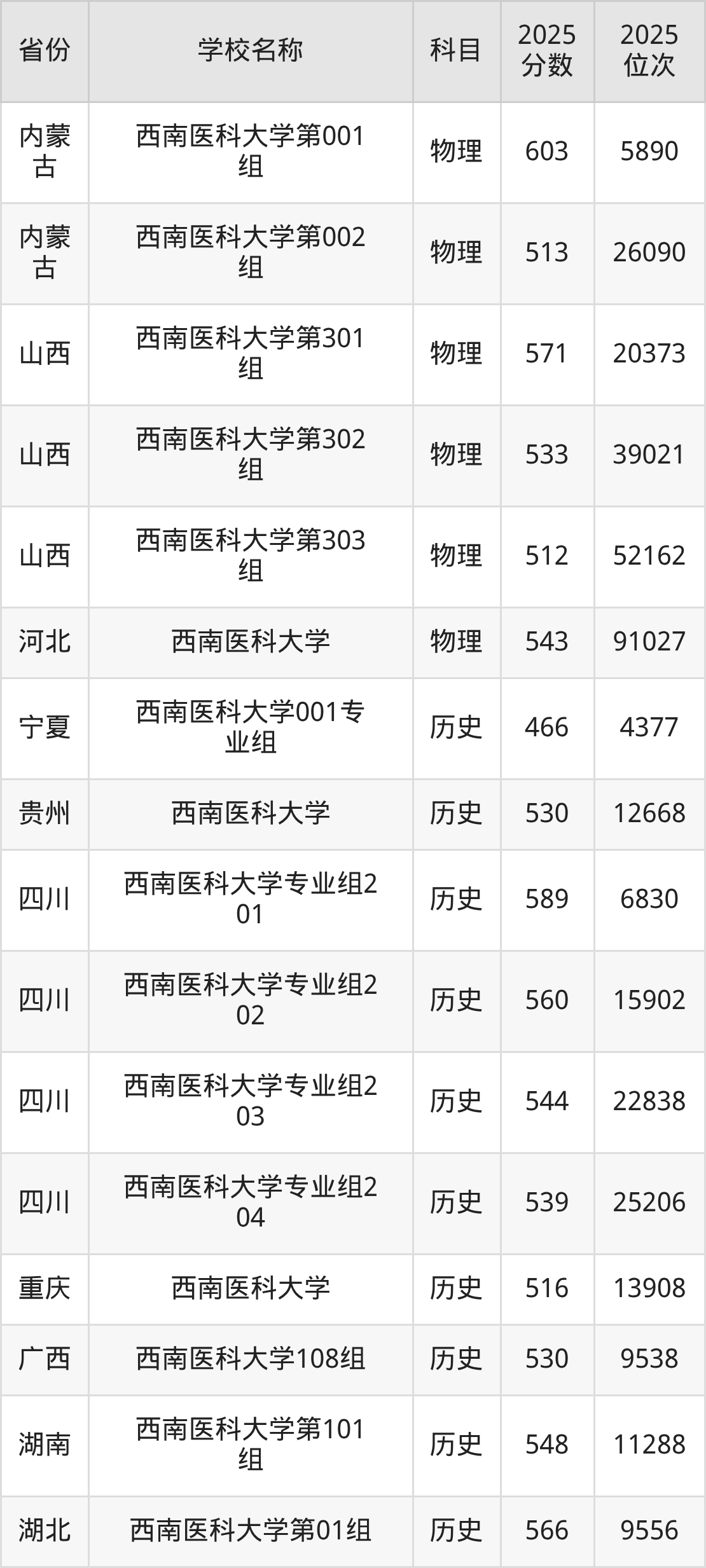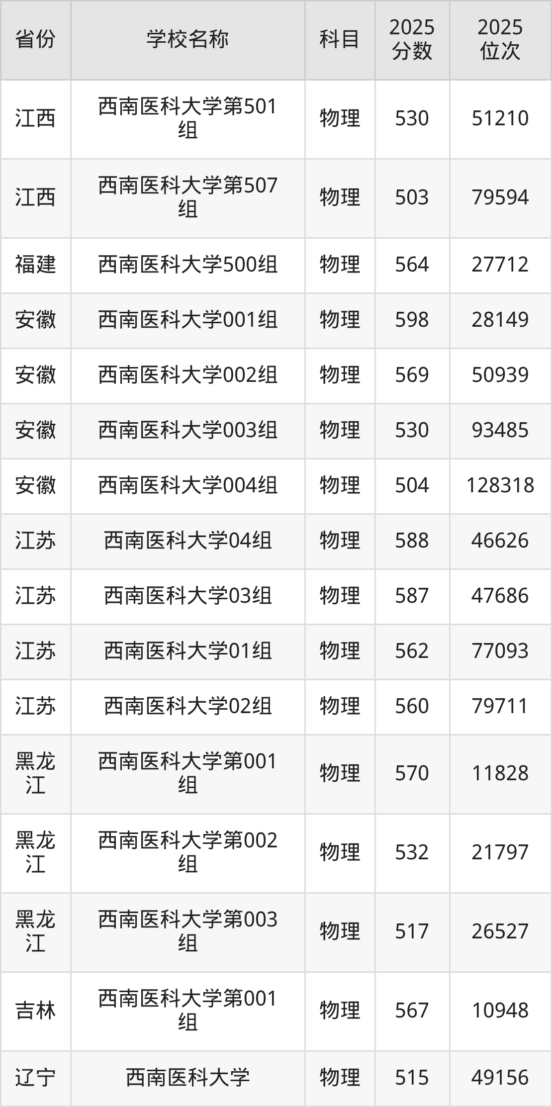 2025年西南医科大学在全国各省本科的最低录取分数线在417~624分之间。四川物理类高考生最低624分能上西南医科大学、河南物理类高考生最低611分能上西南医科大学……下文将展示西南医科大学在全国27个高考省份中的本科最低投档录取分汇总!
