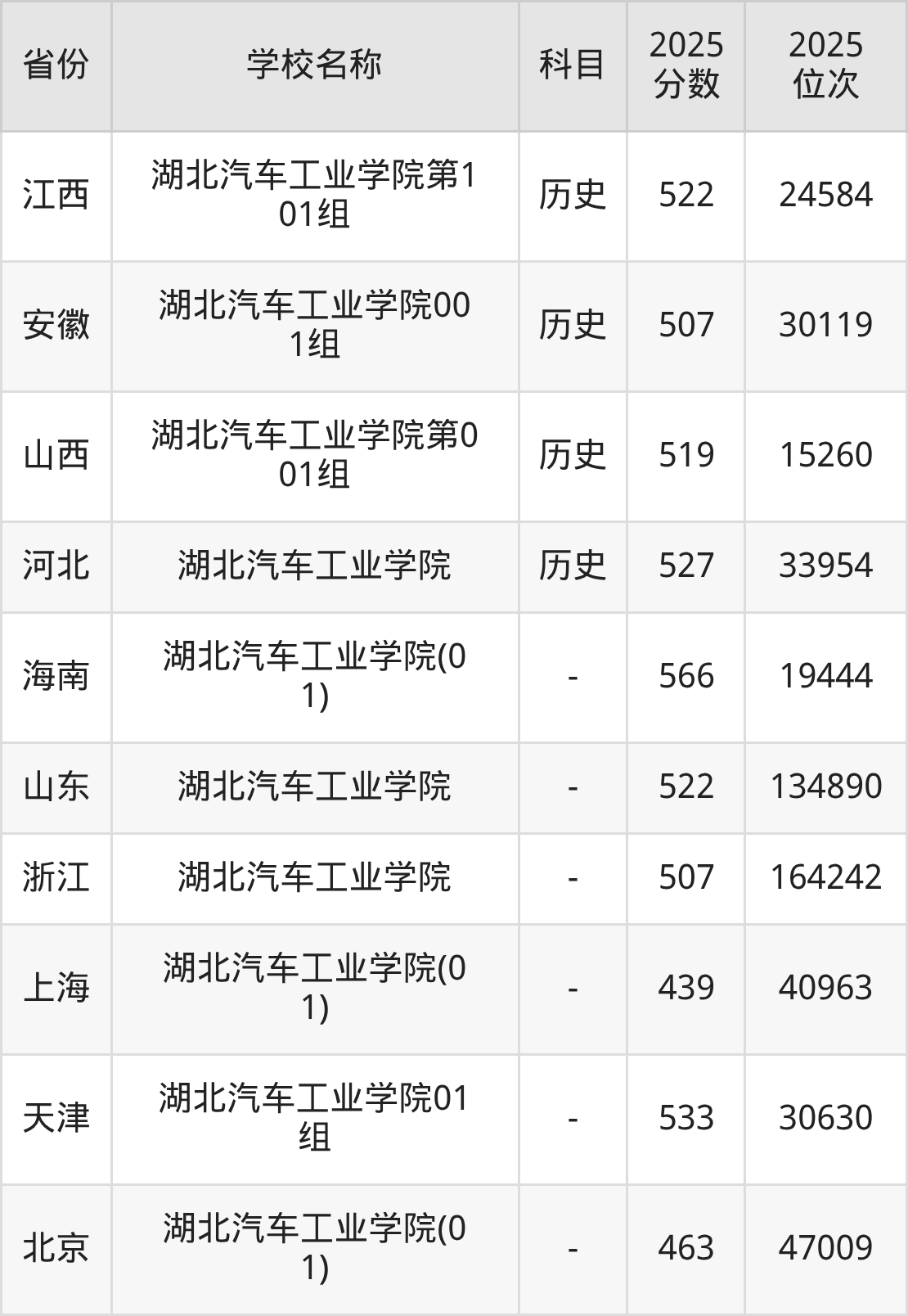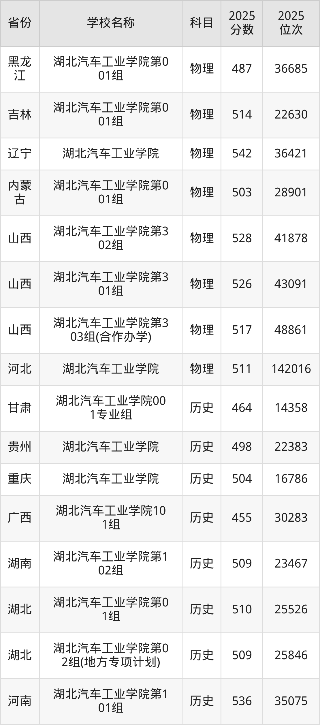 湖北汽车工业学院2025年有2个专业组面向湖北省内首选了历史科目的考生招生: