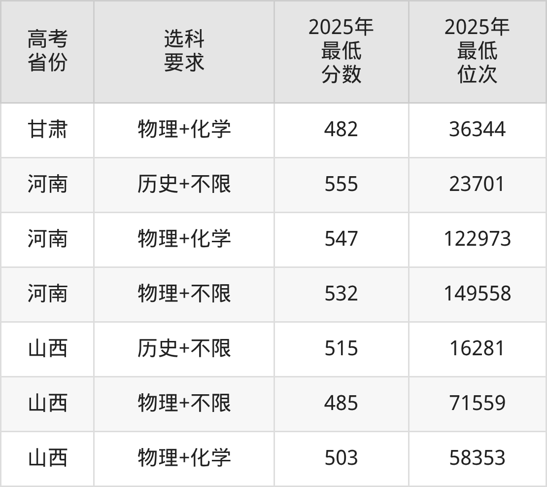 在2025年江西高考物理类招生时,211收分最低的是延边大学第503组,最低分是515分、位次是66039位。再看景德镇陶瓷大学,2025年在江西物理类的最低录取分数线是497分,最低位次是87960位。