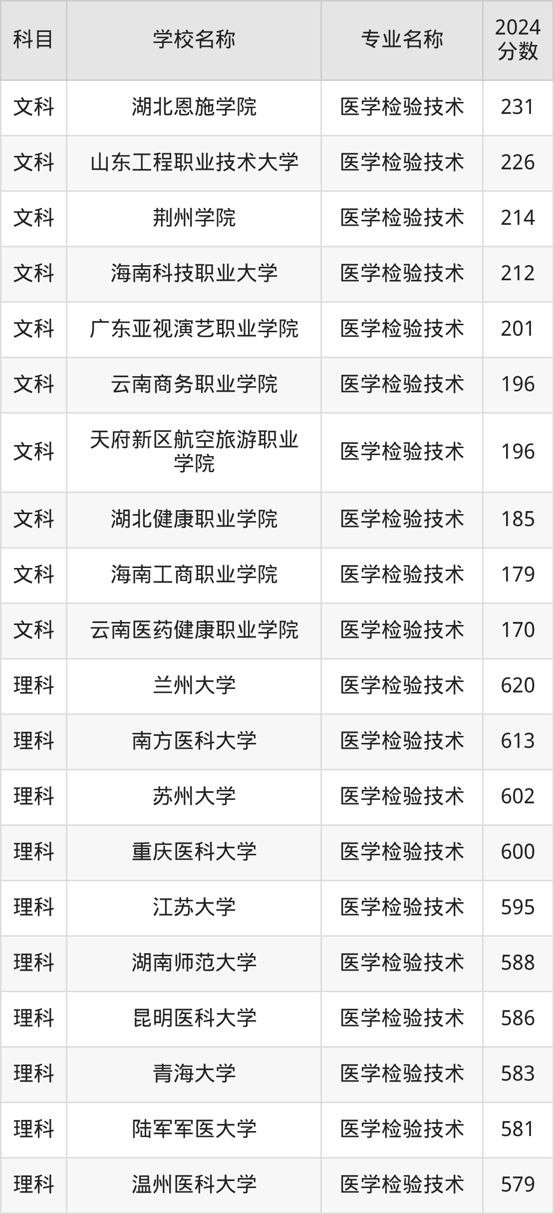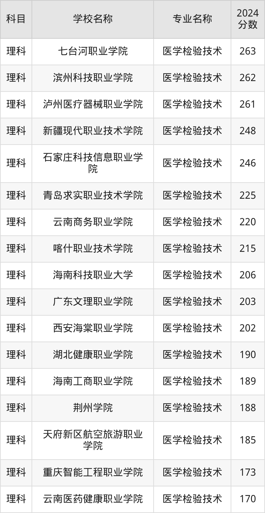 | 漯河医学高等专科学校 | 医学检验技术 | 189 |