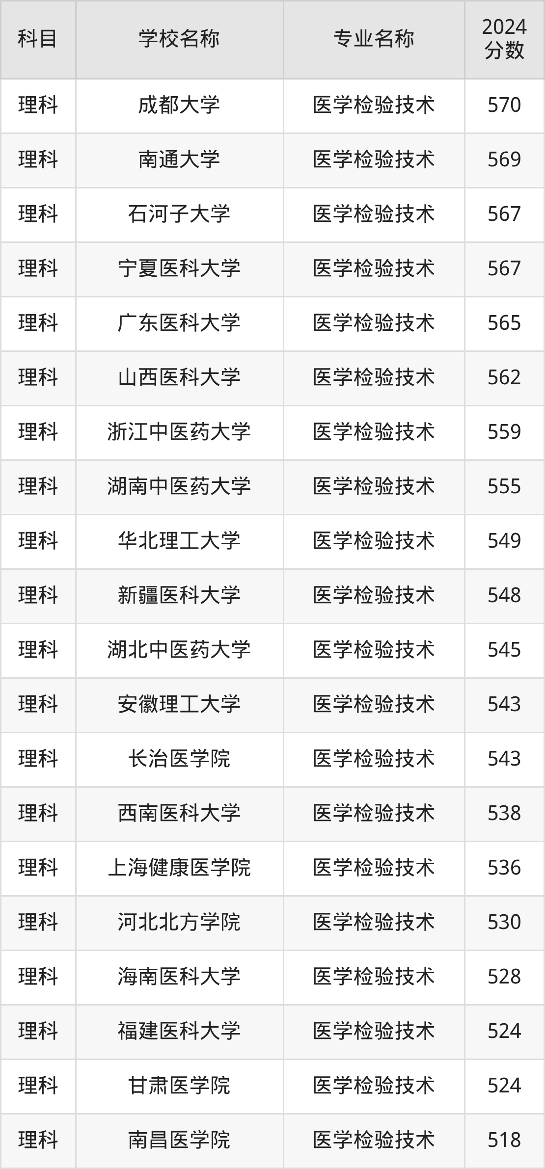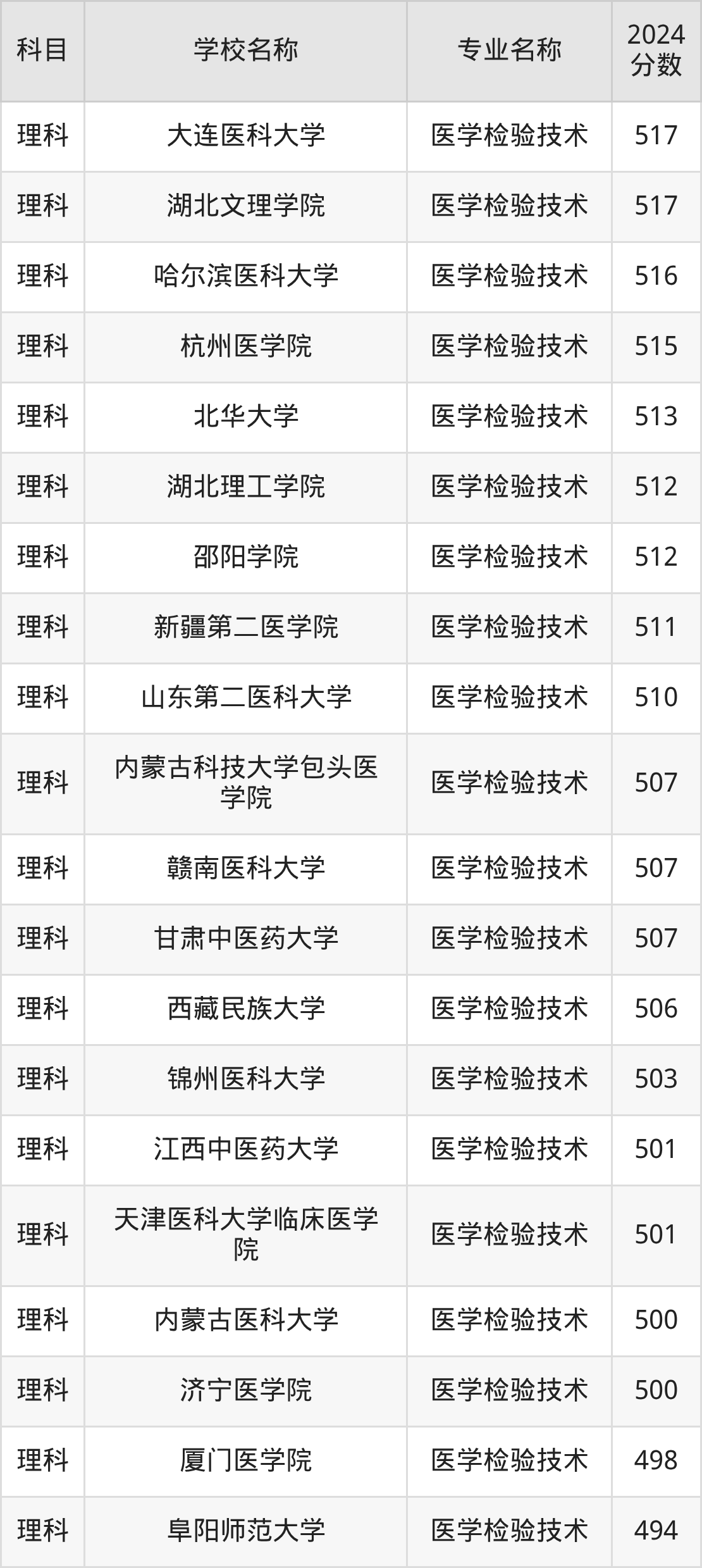二、河南医学检验技术专业排名(软科版)