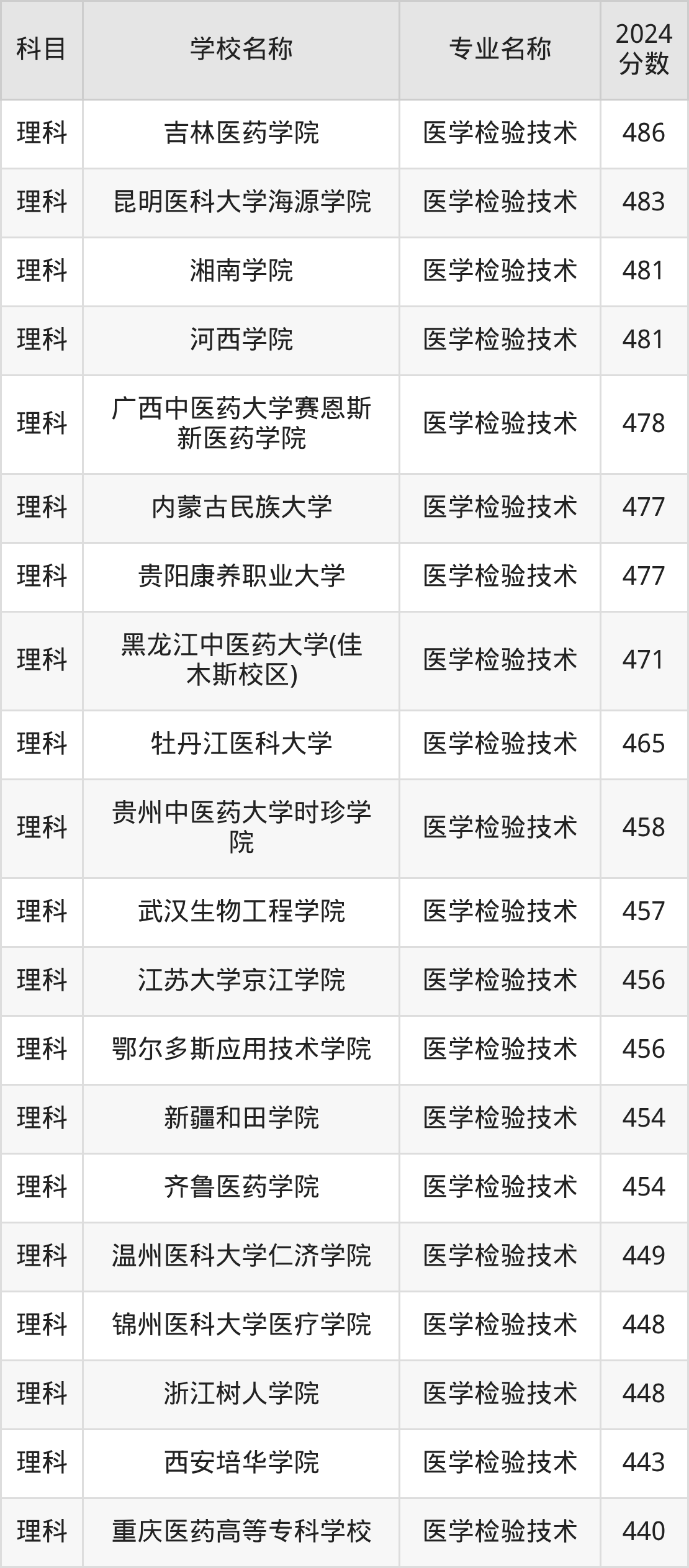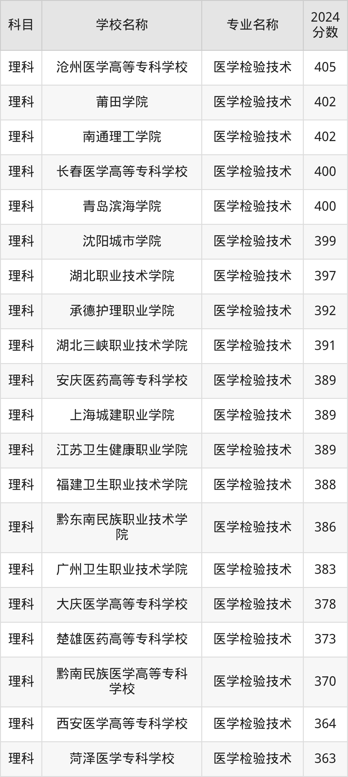 | 郑州铁路职业技术学院 | 医学检验技术 | 408 |