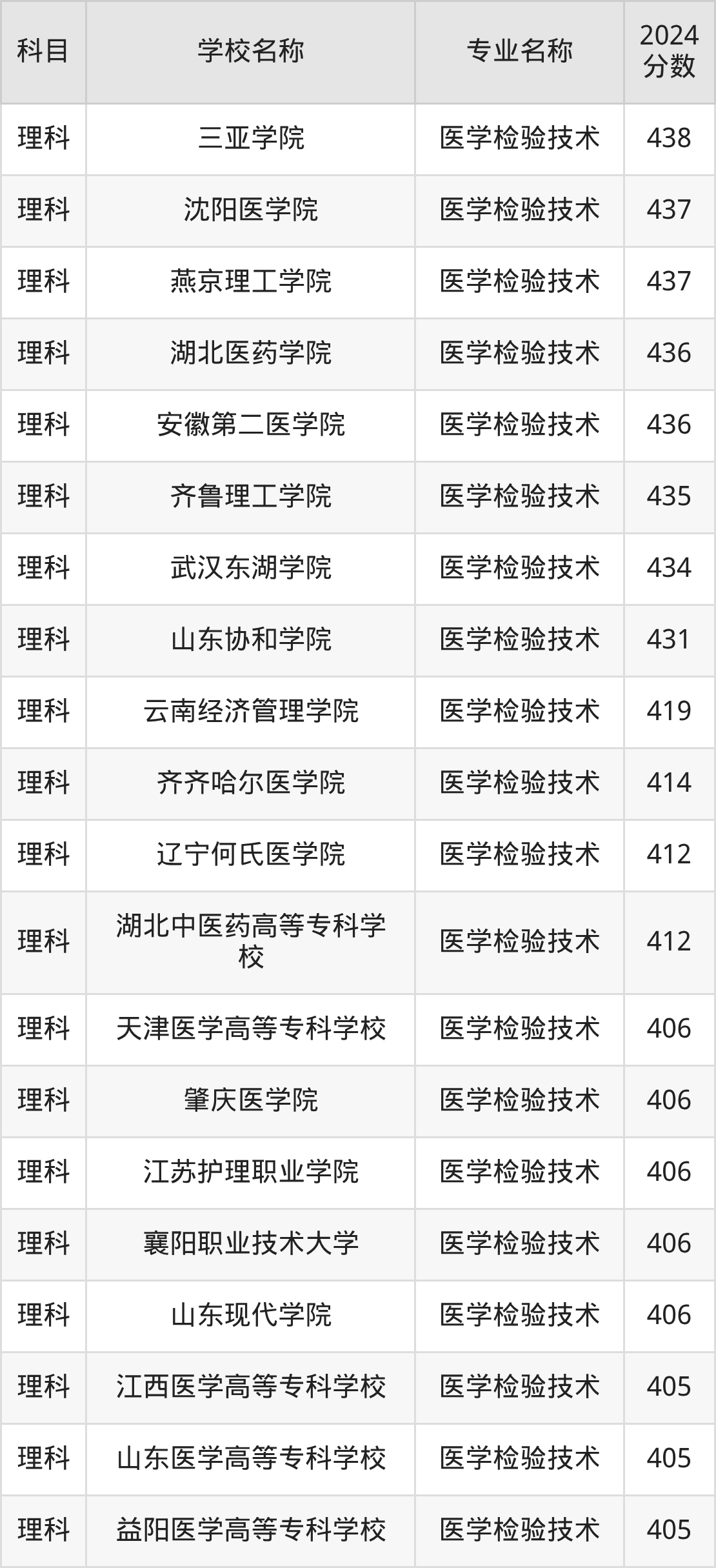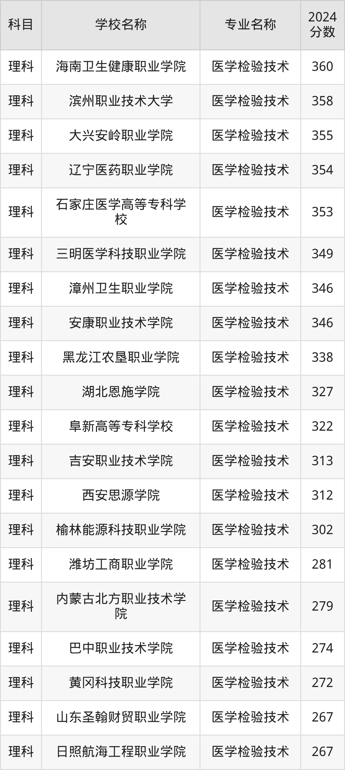 | 信阳职业技术学院 | 医学检验技术 | 310 |