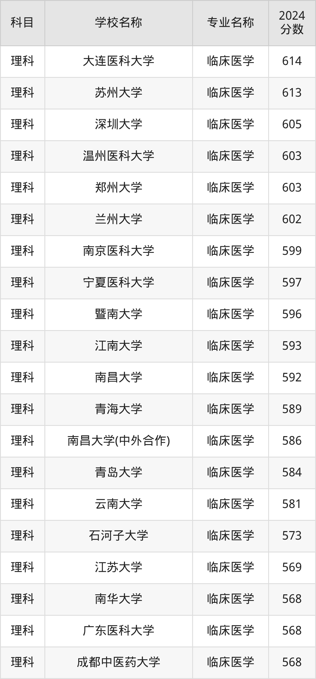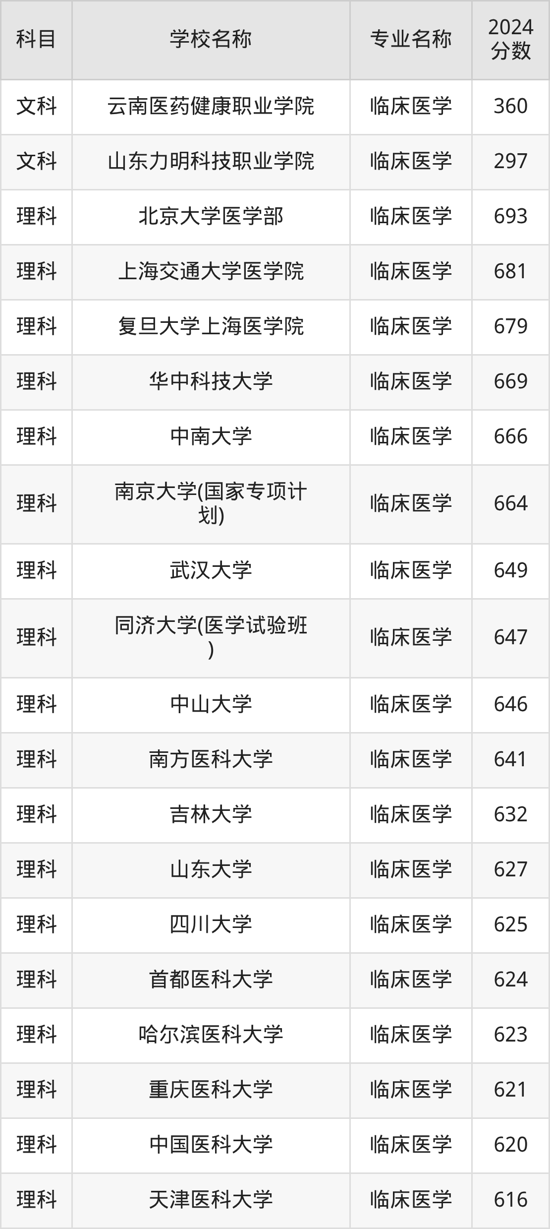 | 空军军医大学 | 临床医学 | 633 |