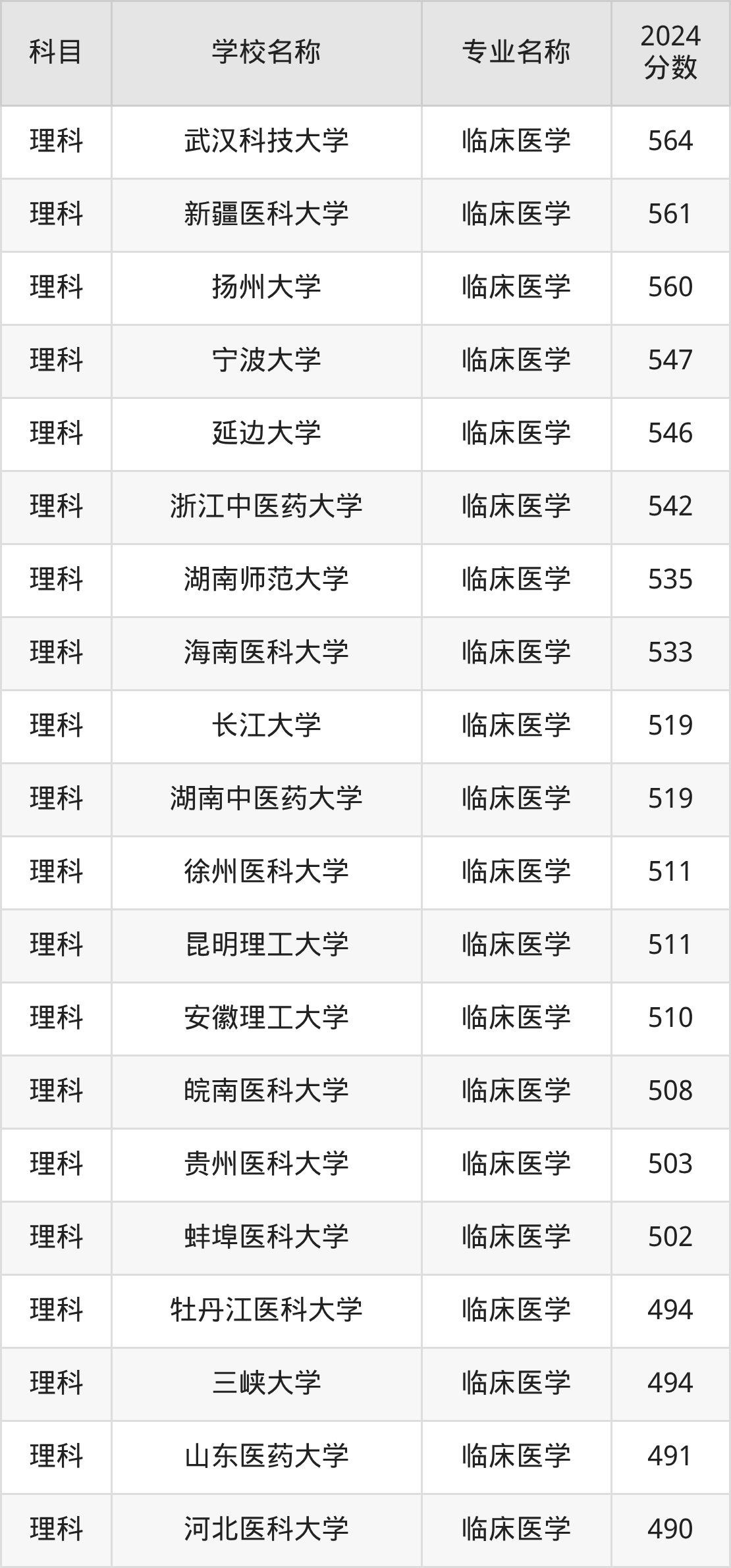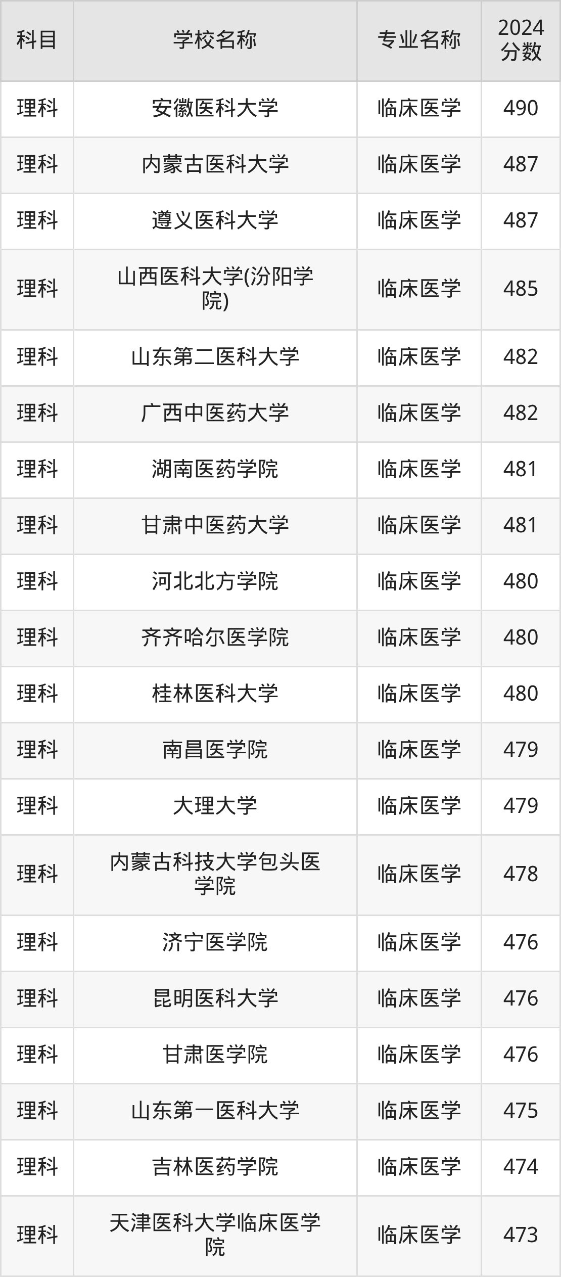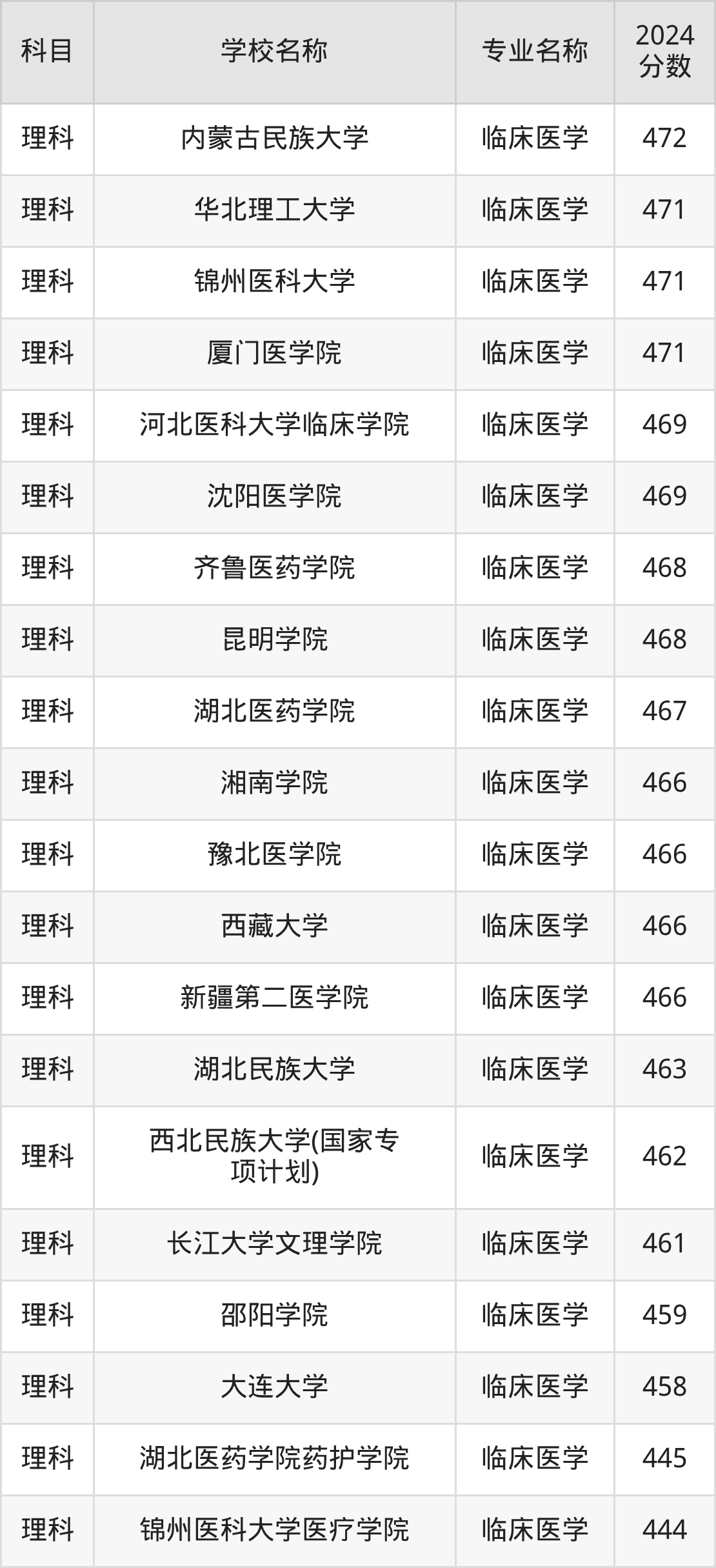 | 西藏民族大学 | 临床医学 | 488 |