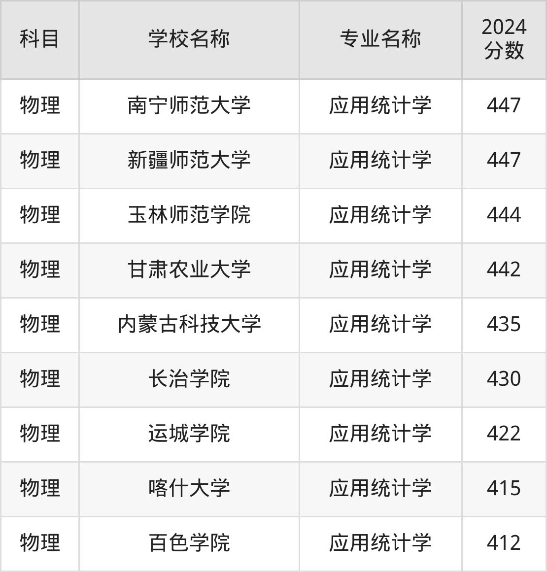 黑龙江高考物理组:应用统计学专业的最低分是430分~525分
