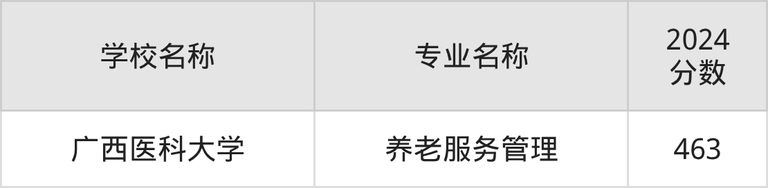 | 广西医科大学 | 养老服务管理 | 490 |