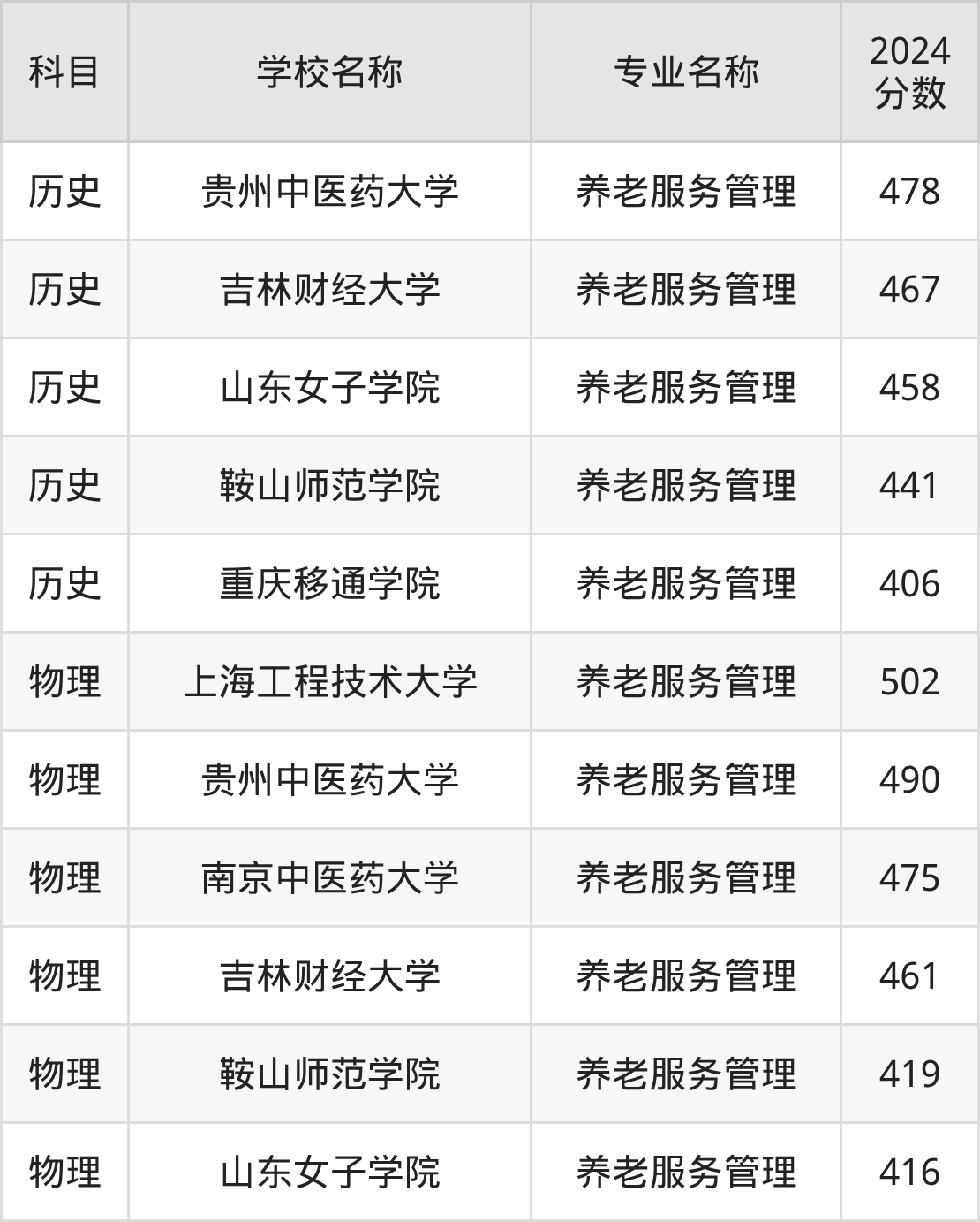 广西高考历史组:养老服务管理专业的最低分是490分