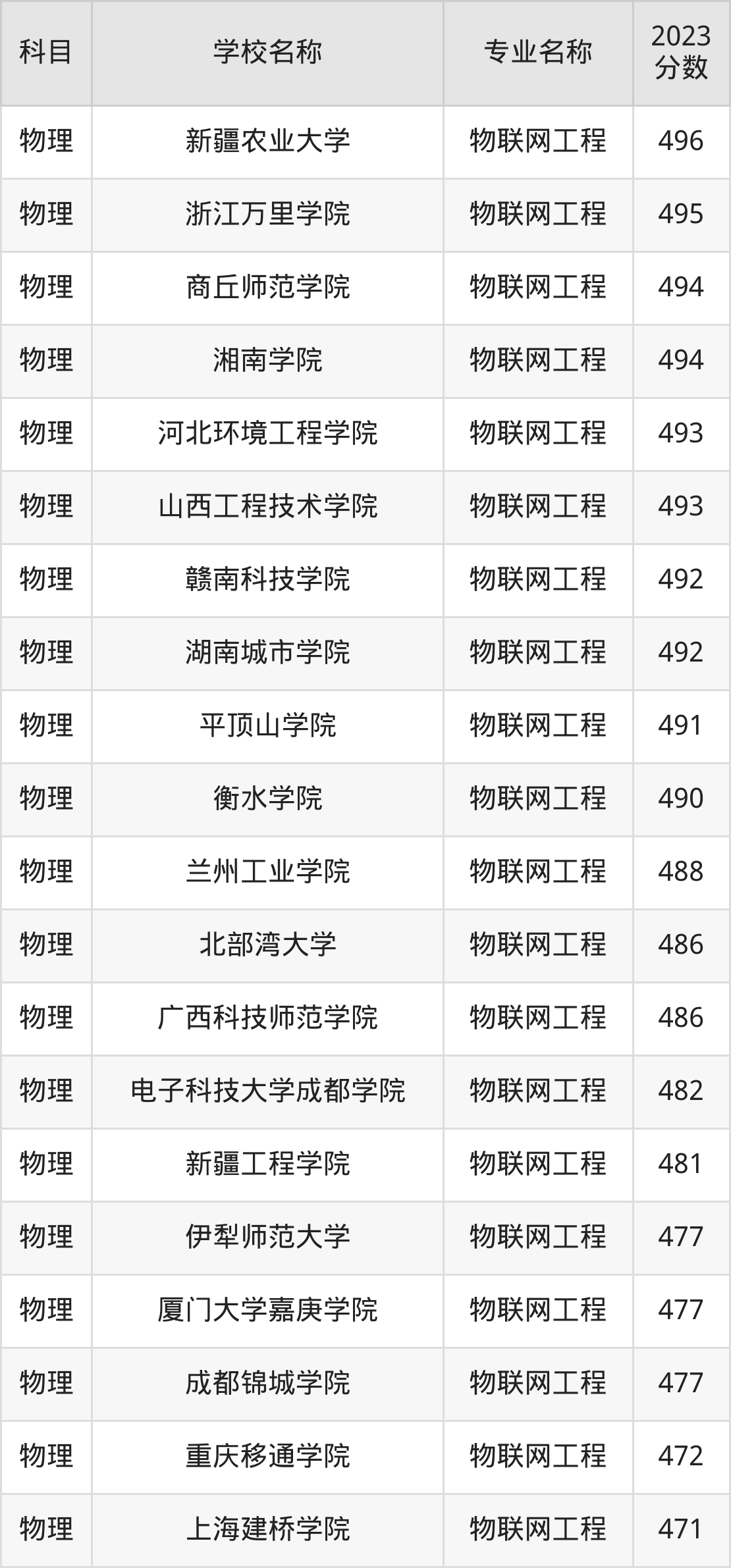 江苏高考物理组:物联网工程专业的最低分是465分~643分