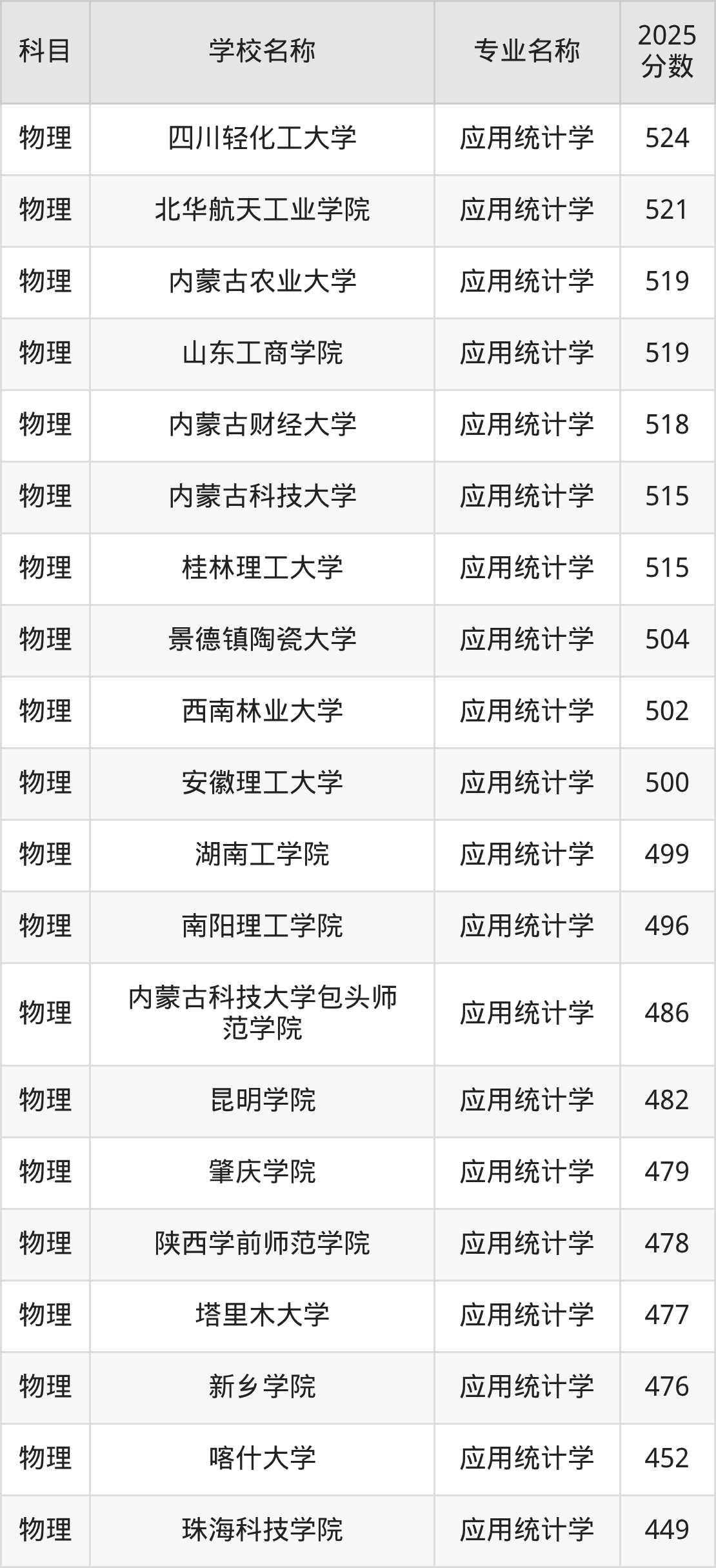 | 长治学院 | 应用统计学 | 452 |