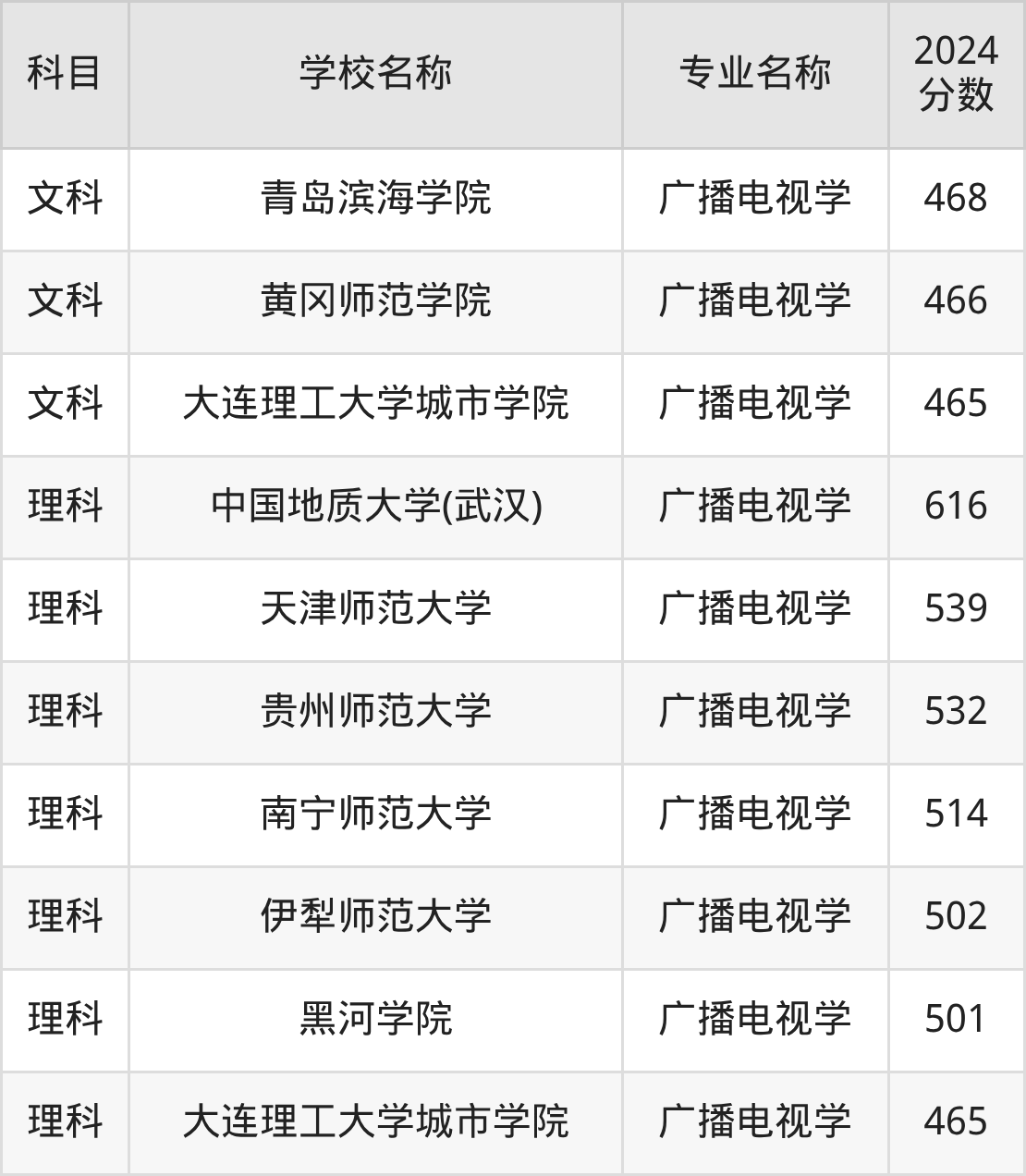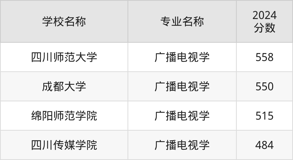 下文将为大家展示四川省大学广播电视学专业2024年在四川高考的最低录取分数线!