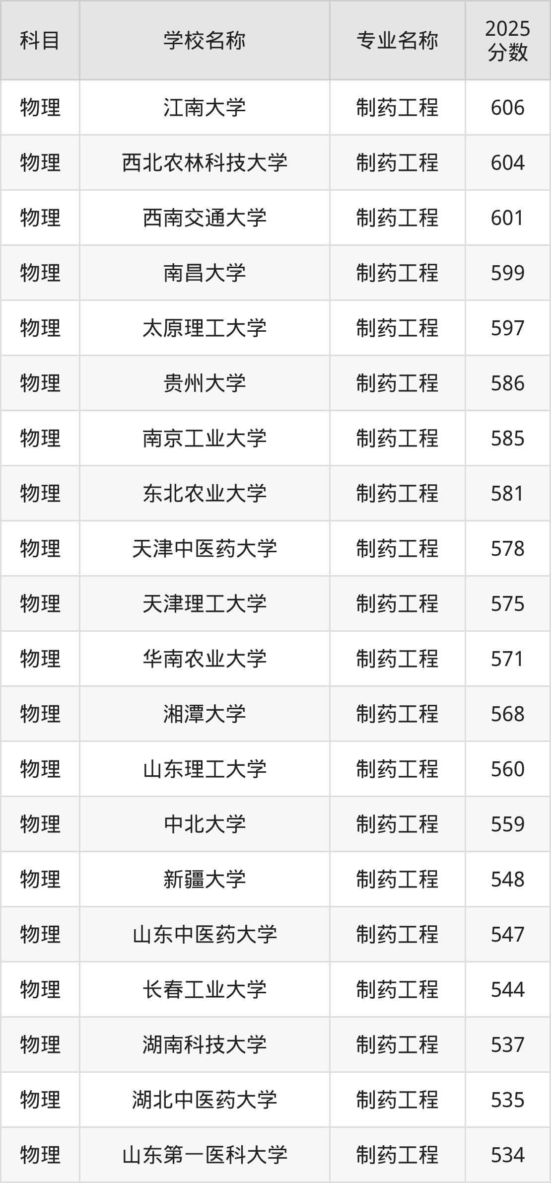 | 沈阳药科大学 | 制药工程(辽宁 省高校专项计划) | 542 |