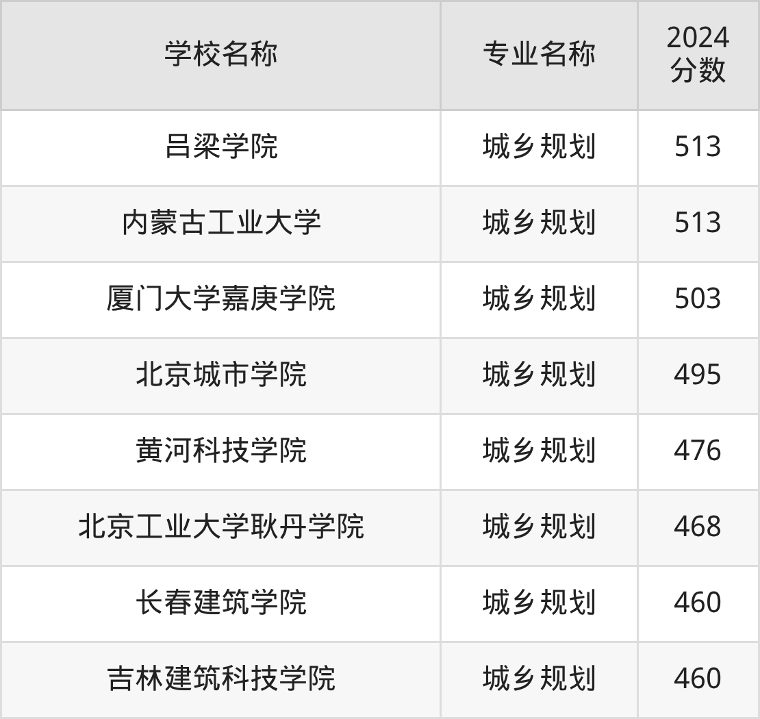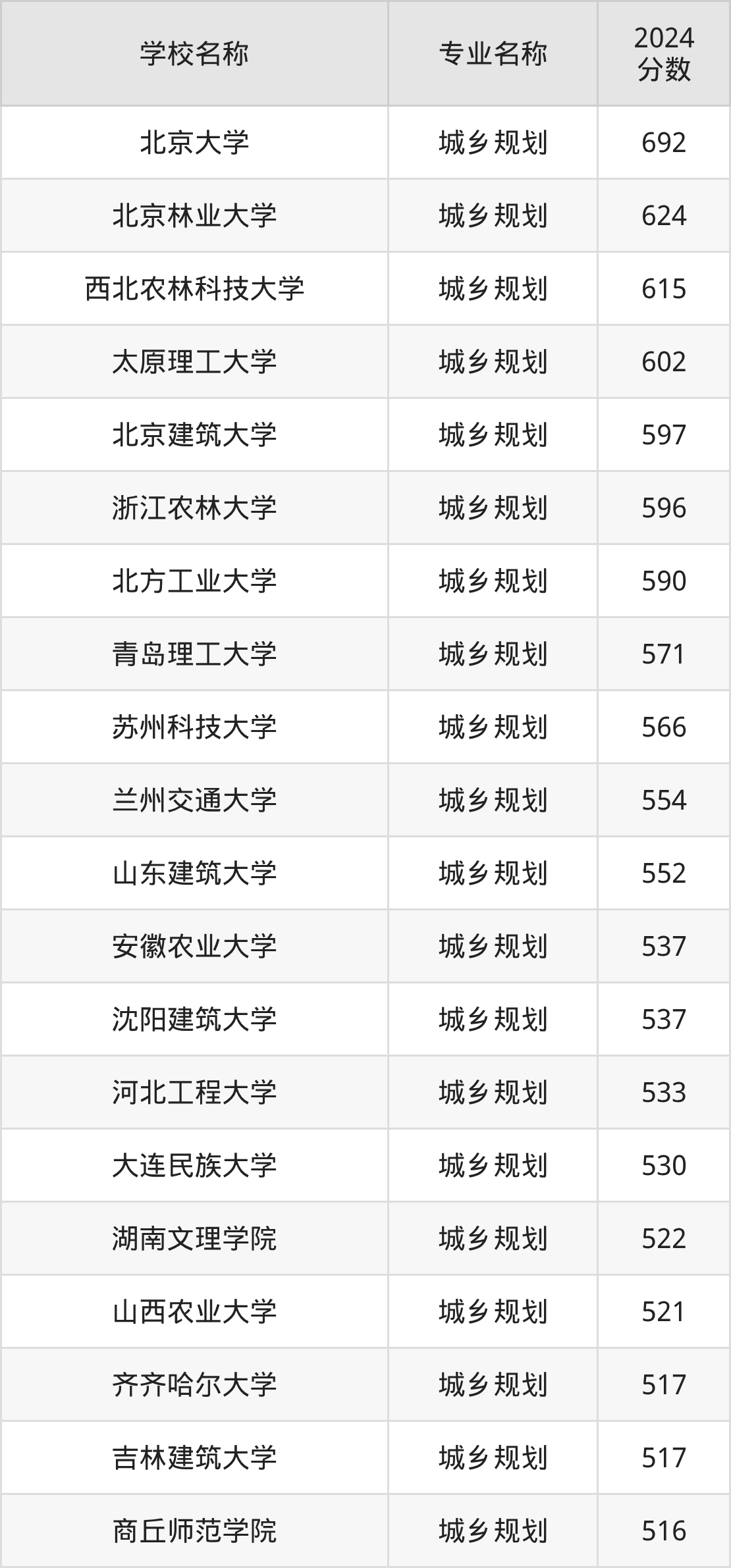 通过上文大家可以知晓,在天津市内招城乡规划专业的院校数量较少,所以下文将为2026届高考生继续展示:市外大学的城乡规划专业2024年在天津高考的录取情况,包含北京大学、北京林业大学、西北农林科技大学、太原理工大学、北京建筑大学。