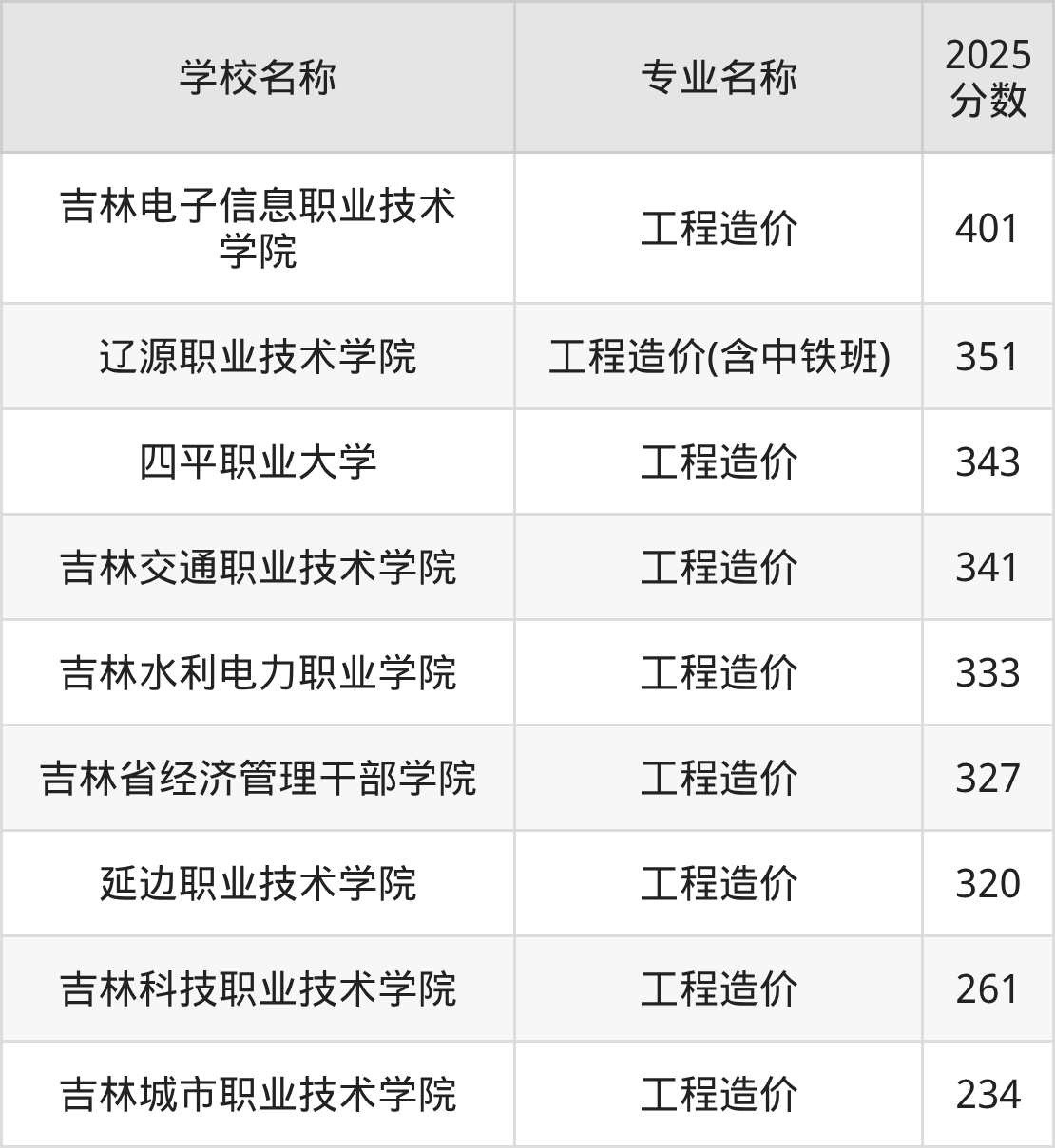 | 吉林交通职业技术学院 | 工程造价 | 311 |