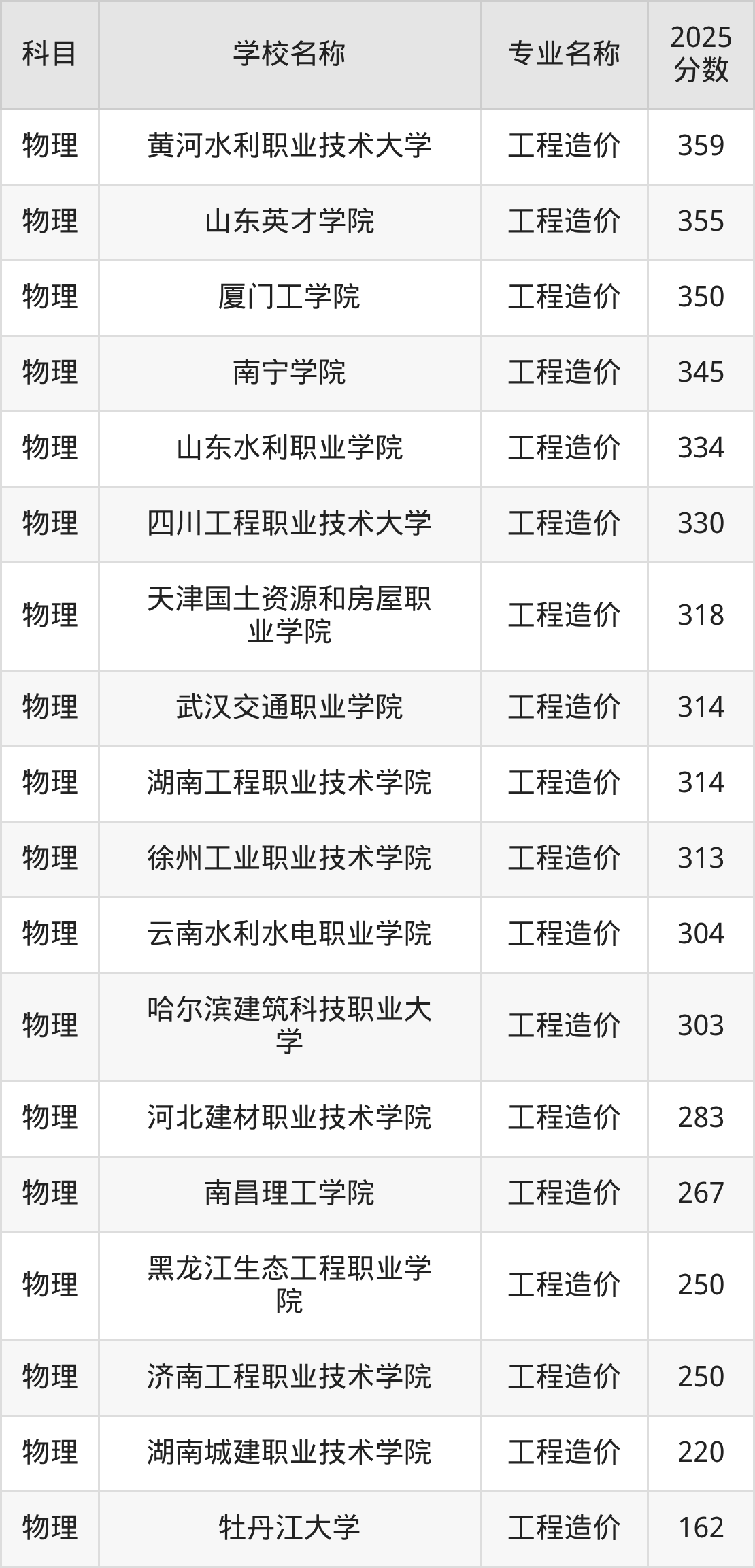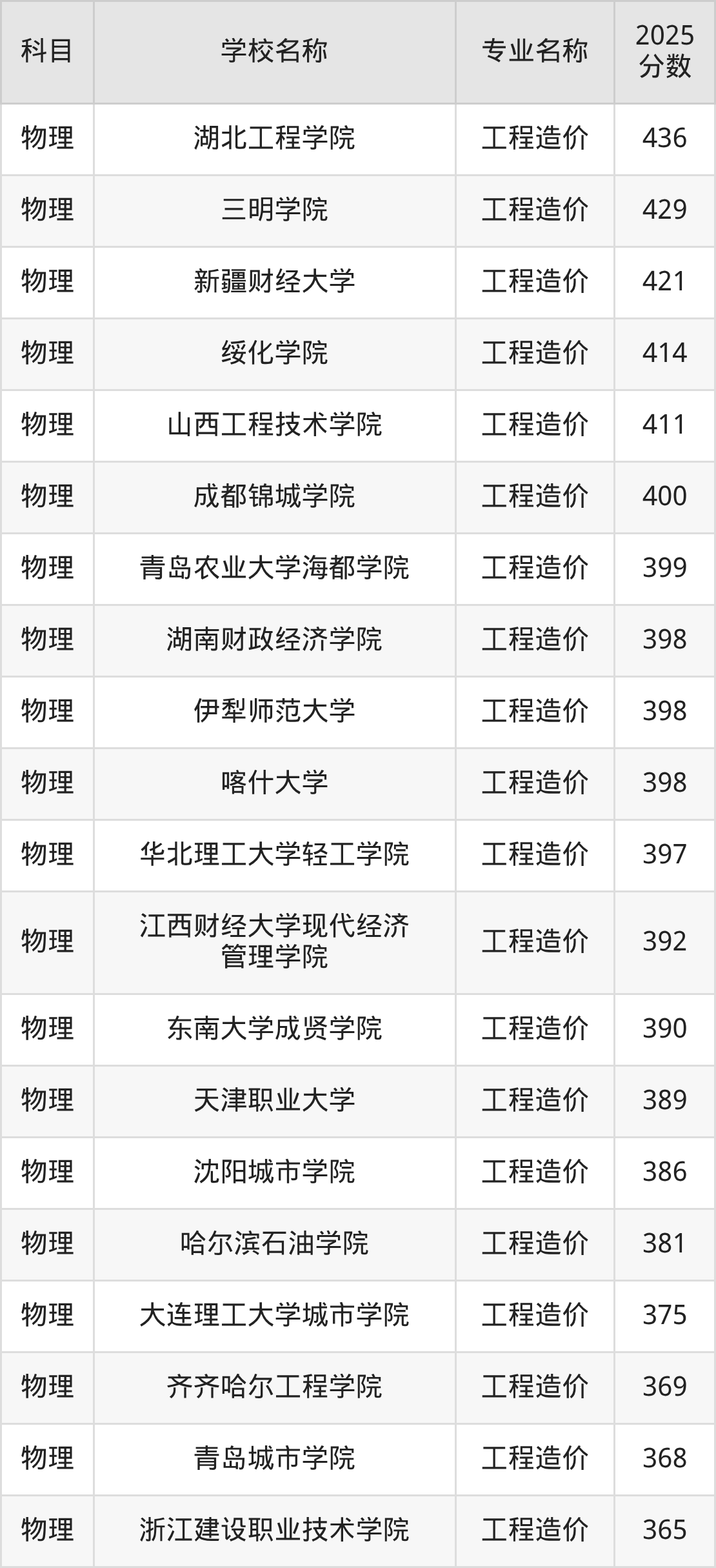 下文将为大家展示吉林省大学工程造价专业2025年在吉林高考的最低录取分数线!