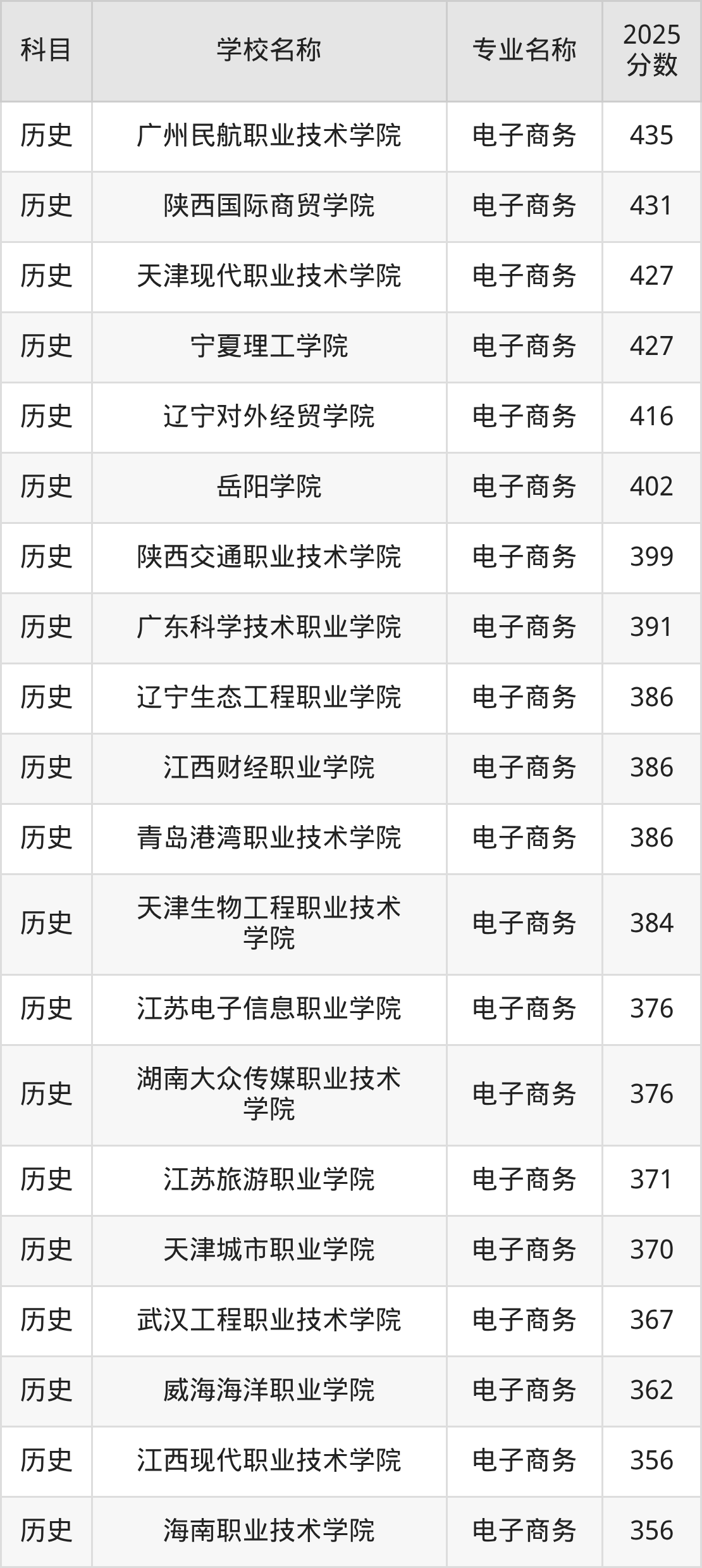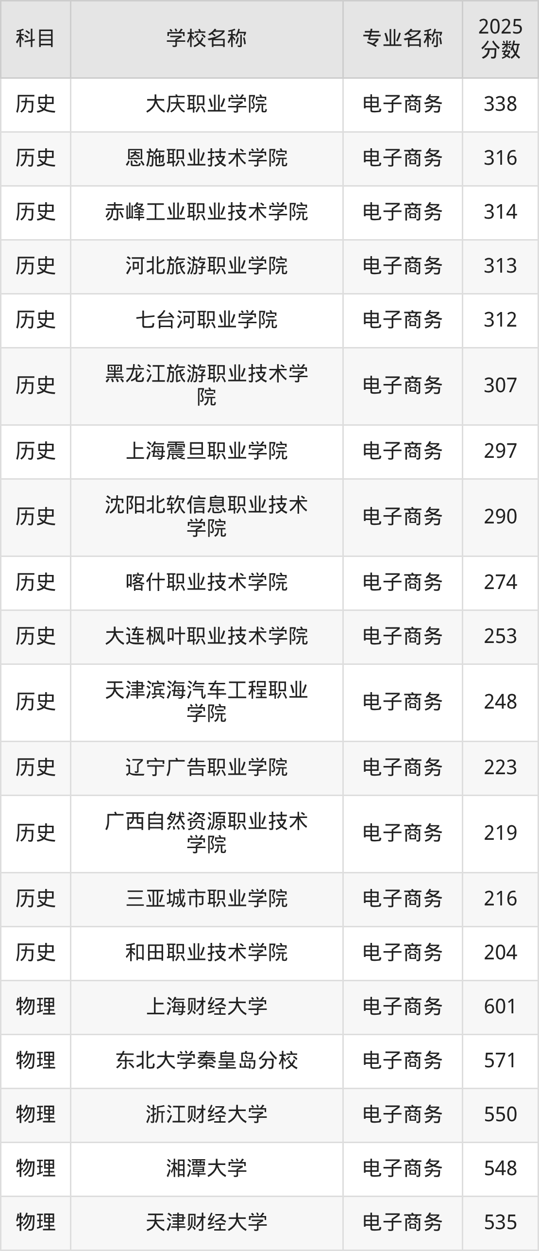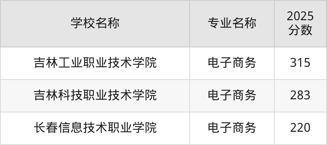 | 长春金融高等专科学校 | 电子商务 | 305 |