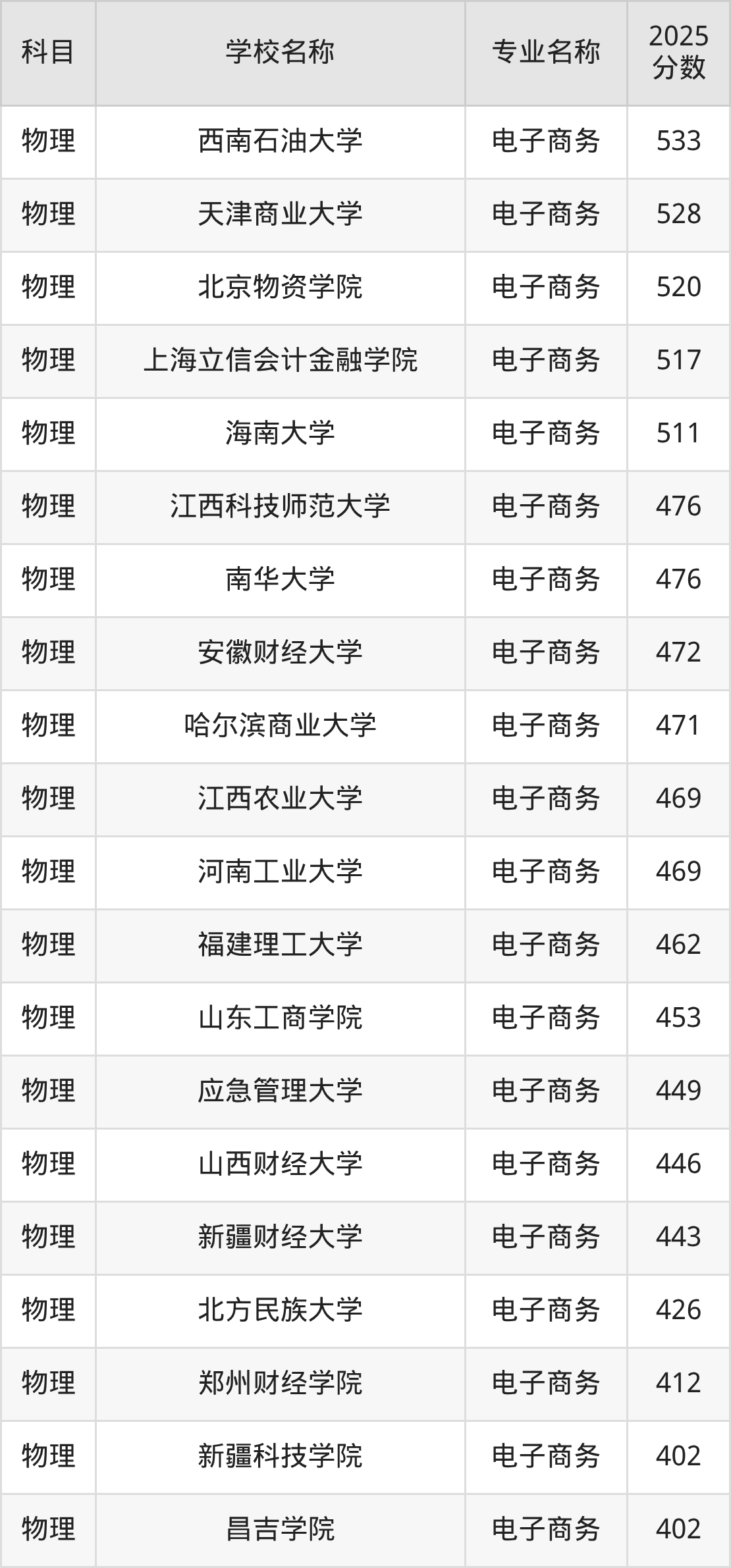 下文将为大家展示吉林省大学电子商务专业2025年在吉林高考的最低录取分数线!