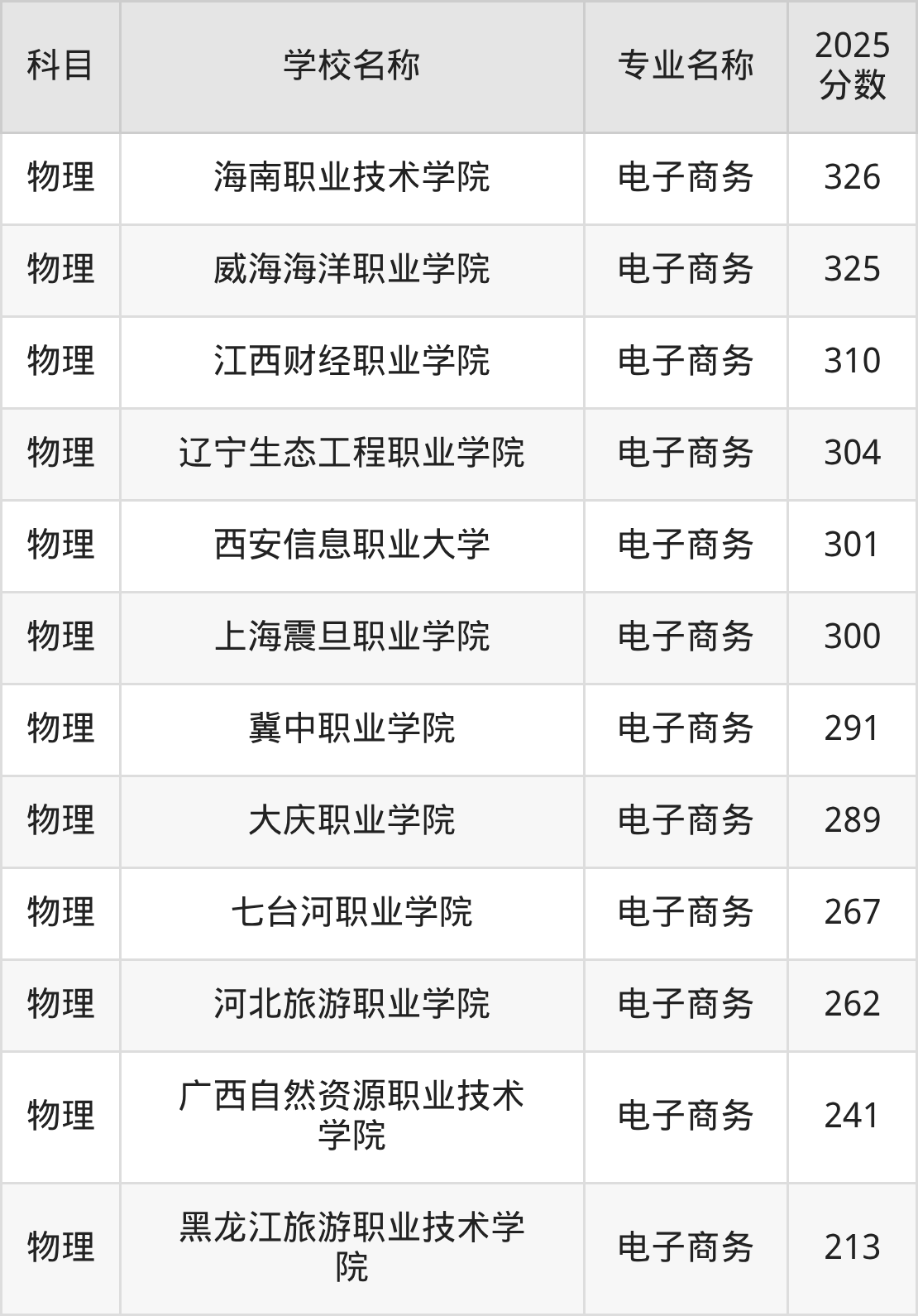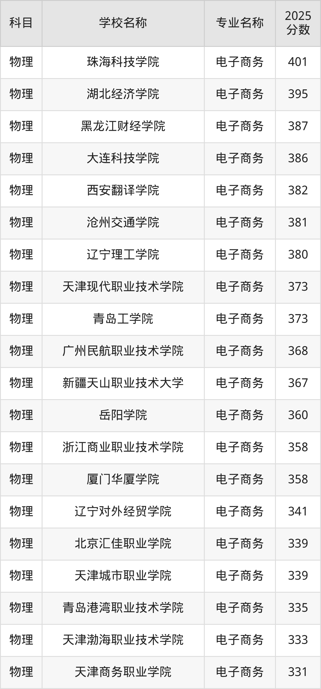 圆梦小编根据吉林2025年高考物理组专业分,将开设了电子商务专业且位于吉林省内的大学按照“录取分”从高到低排序,得出了以上榜单。