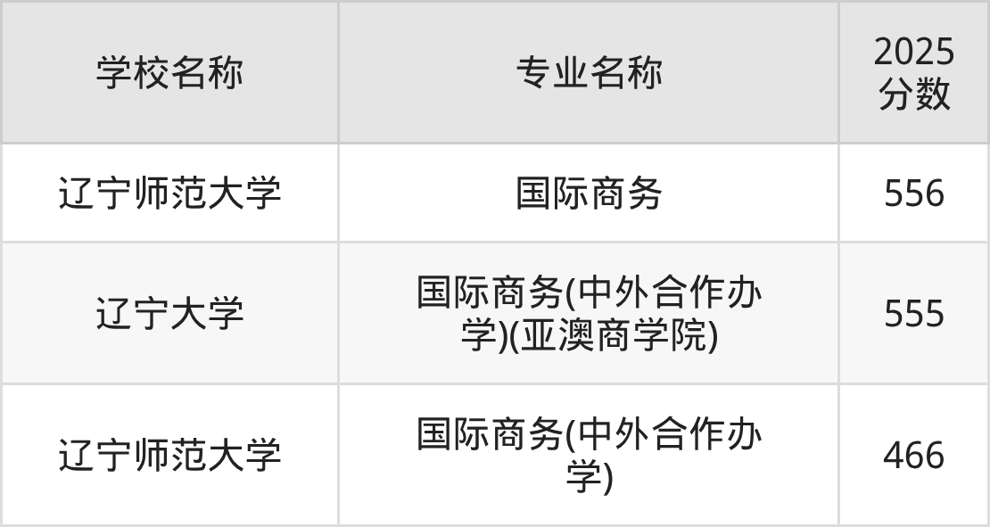 下文将为大家展示辽宁省大学国际商务专业2025年在辽宁高考的最低录取分数线!