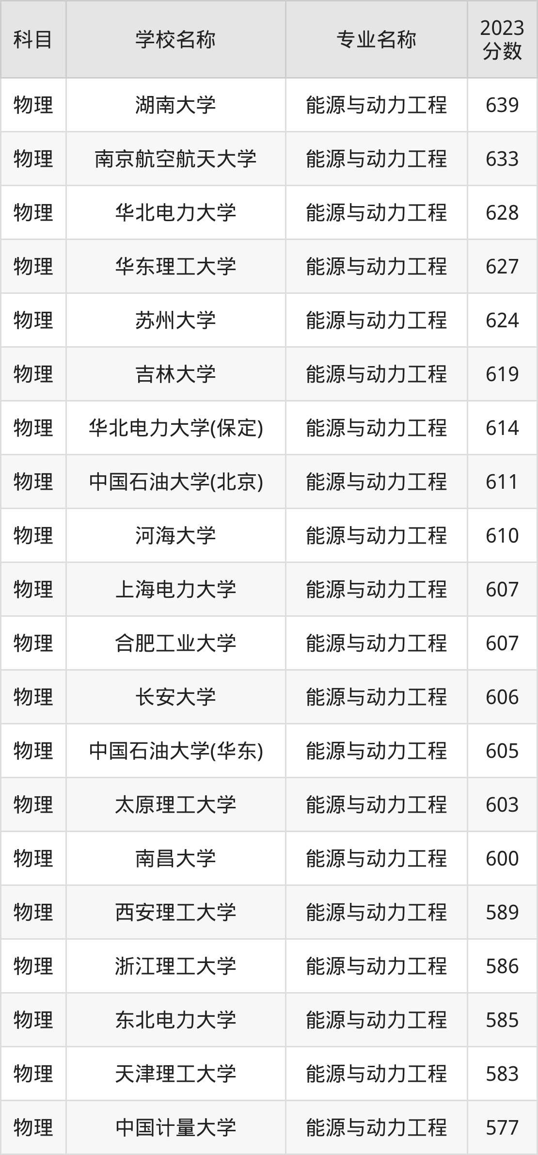 通过上文大家可以知晓,在辽宁省内招能源与动力工程专业的院校数量较少,所以下文将为2025届高考生继续展示:省外大学的能源与动力工程专业2023年在辽宁高考的录取情况,包含湖南大学、南京航空航天大学、华北电力大学、华东理工大学、苏州大学。