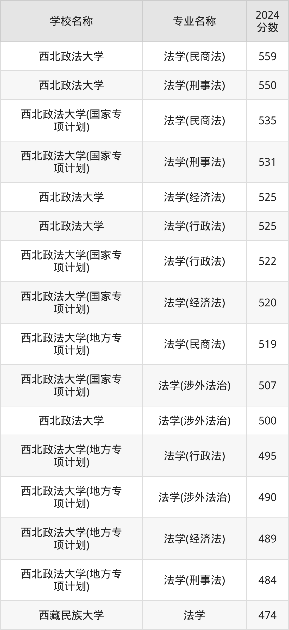 | 西北政法大学(地方专 项计划) | 法学(涉外法治) | 524 |
