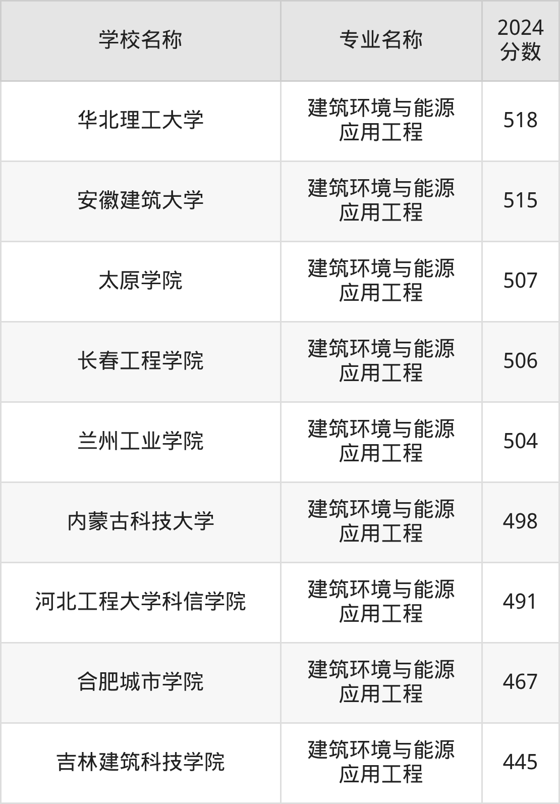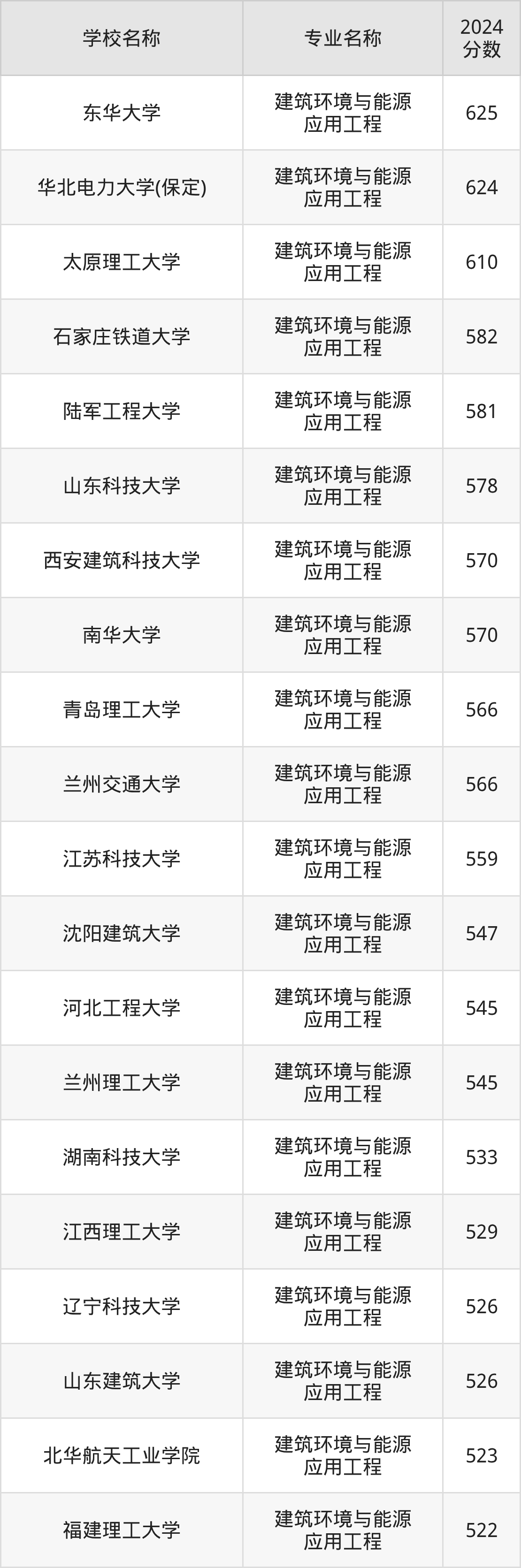 | 天津城建大学 | 建筑环境与能源 应用工程 | 516 |