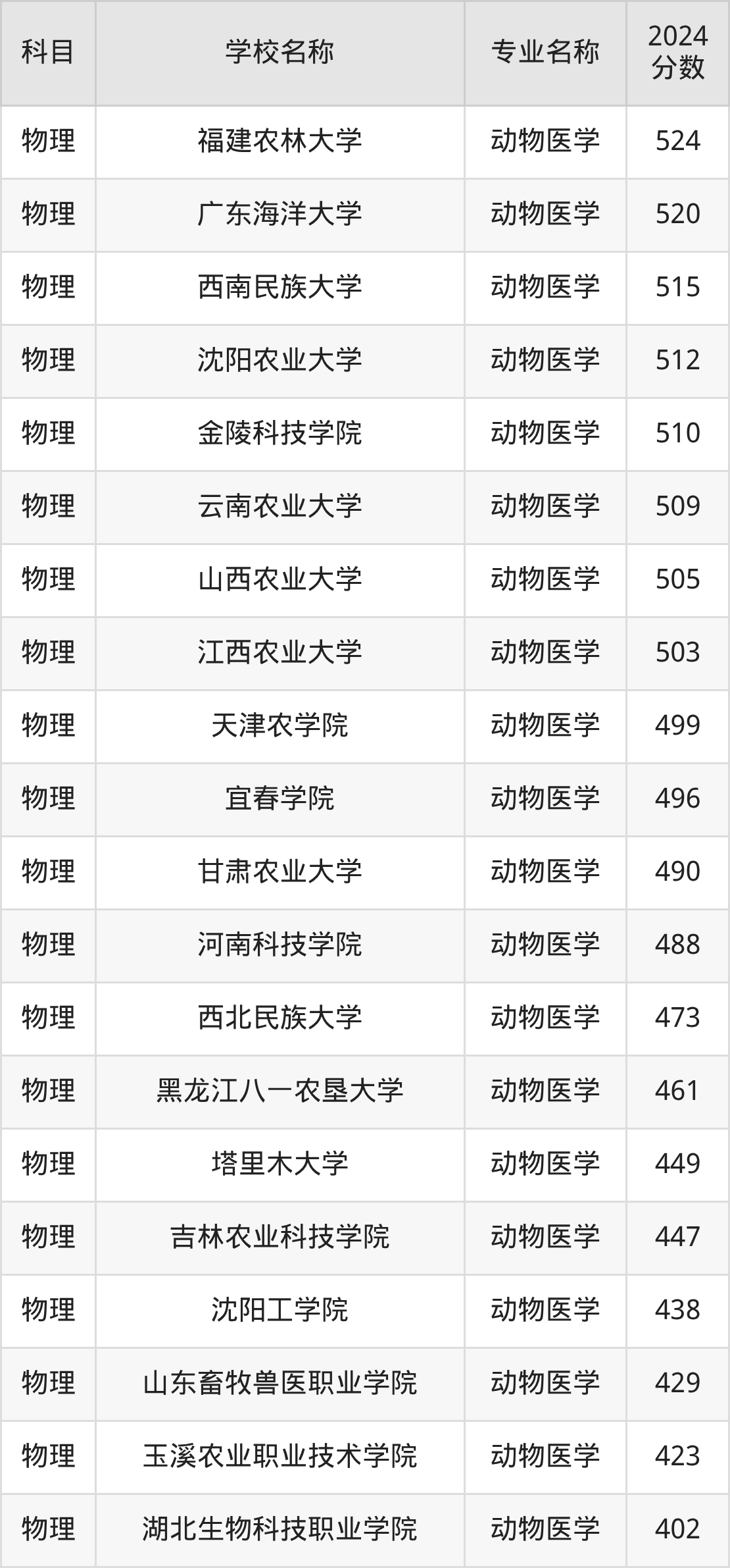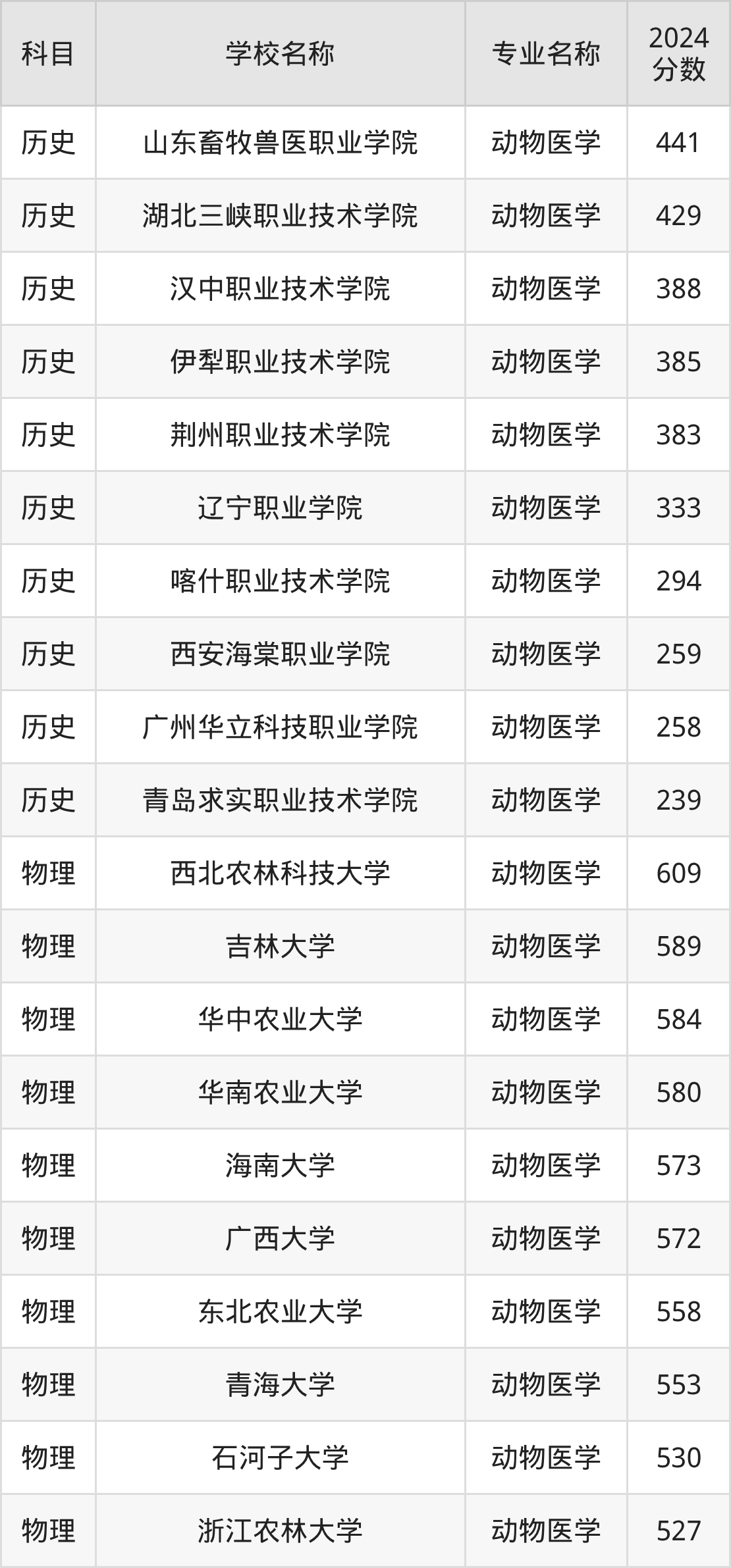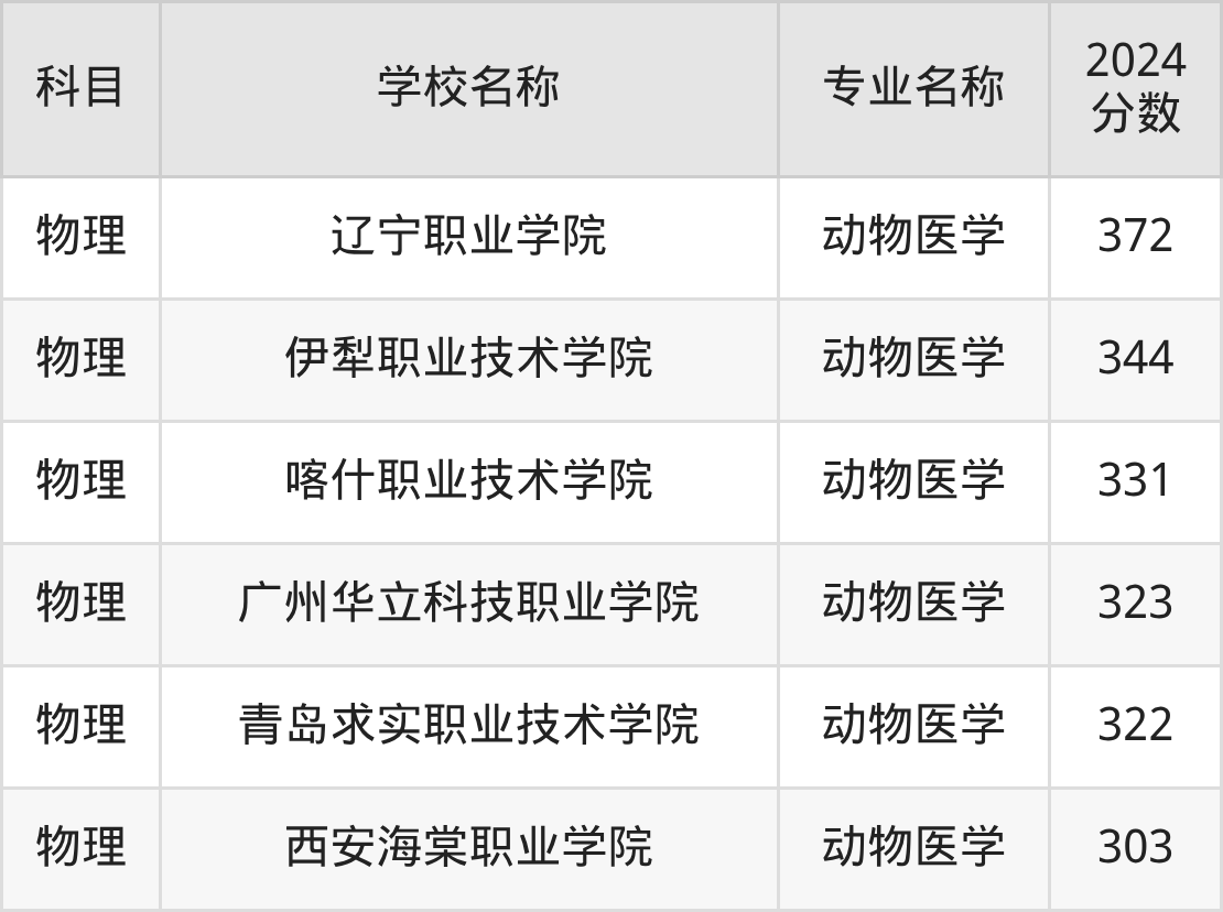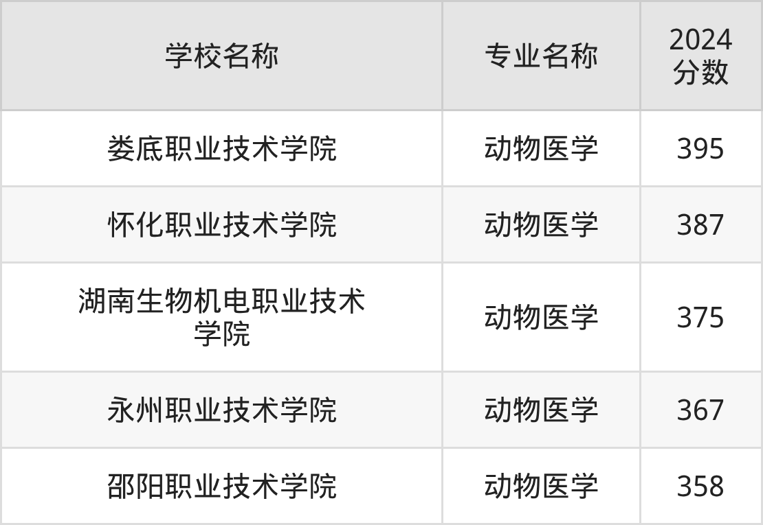 | 湖南生物机电职业技术 学院 | 动物医学 | 401 |