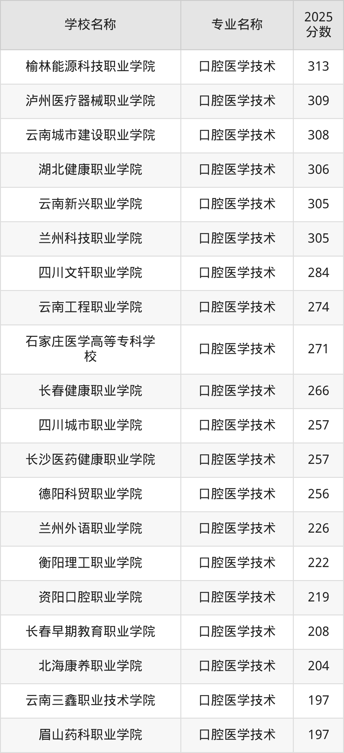 | 齐鲁理工学院 | 口腔医学技术 | 355 |