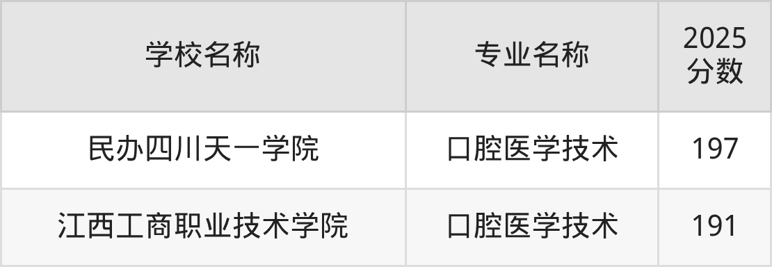 | 枣庄职业学院 | 口腔医学技术 | 420 |