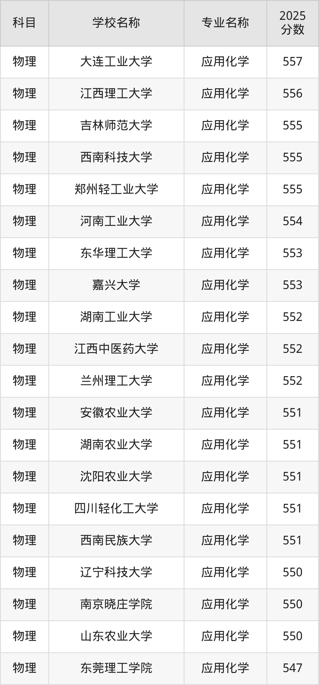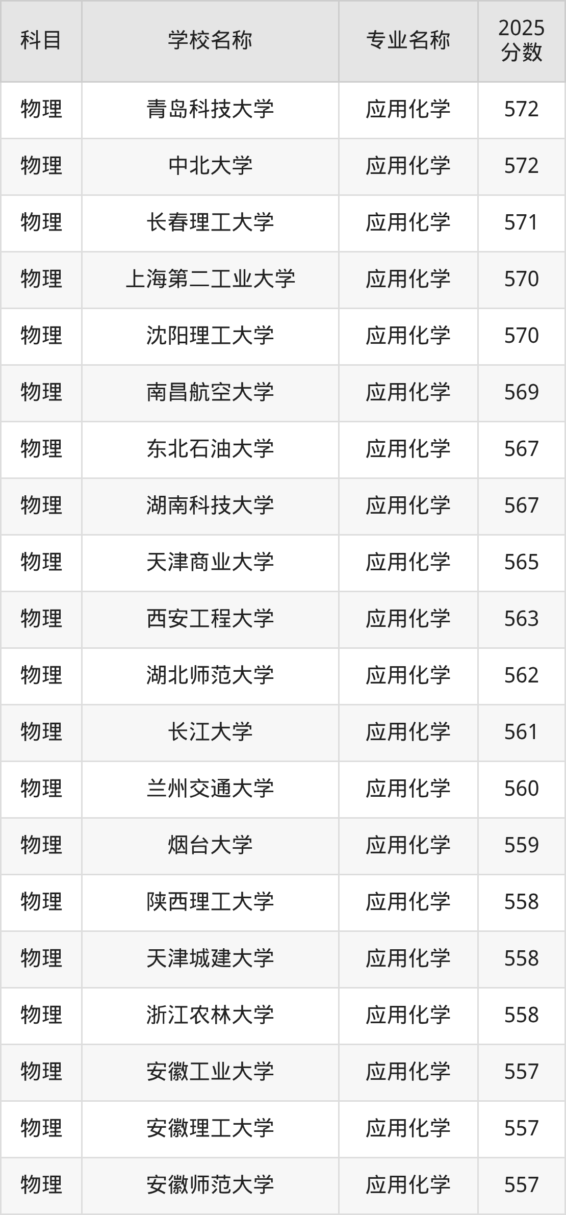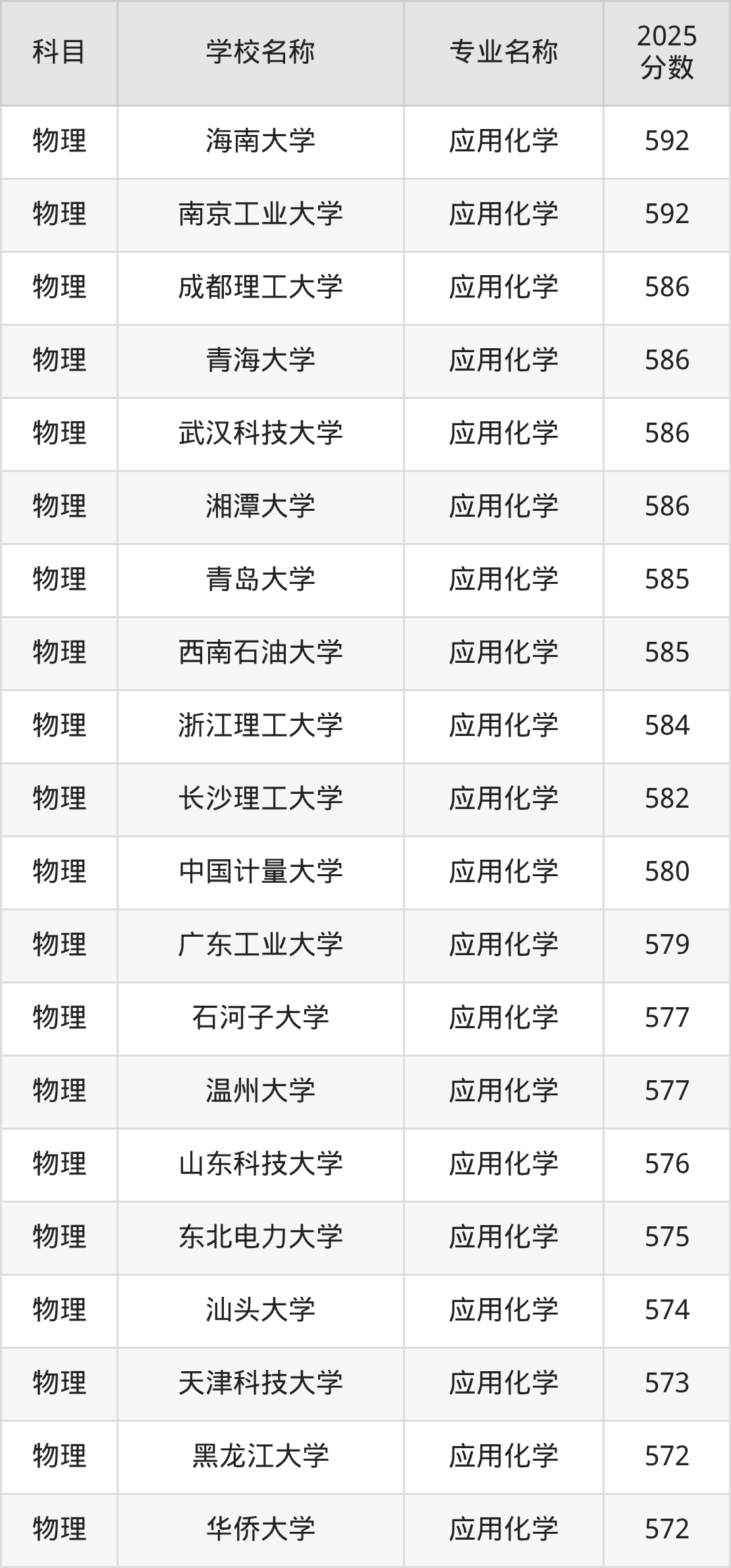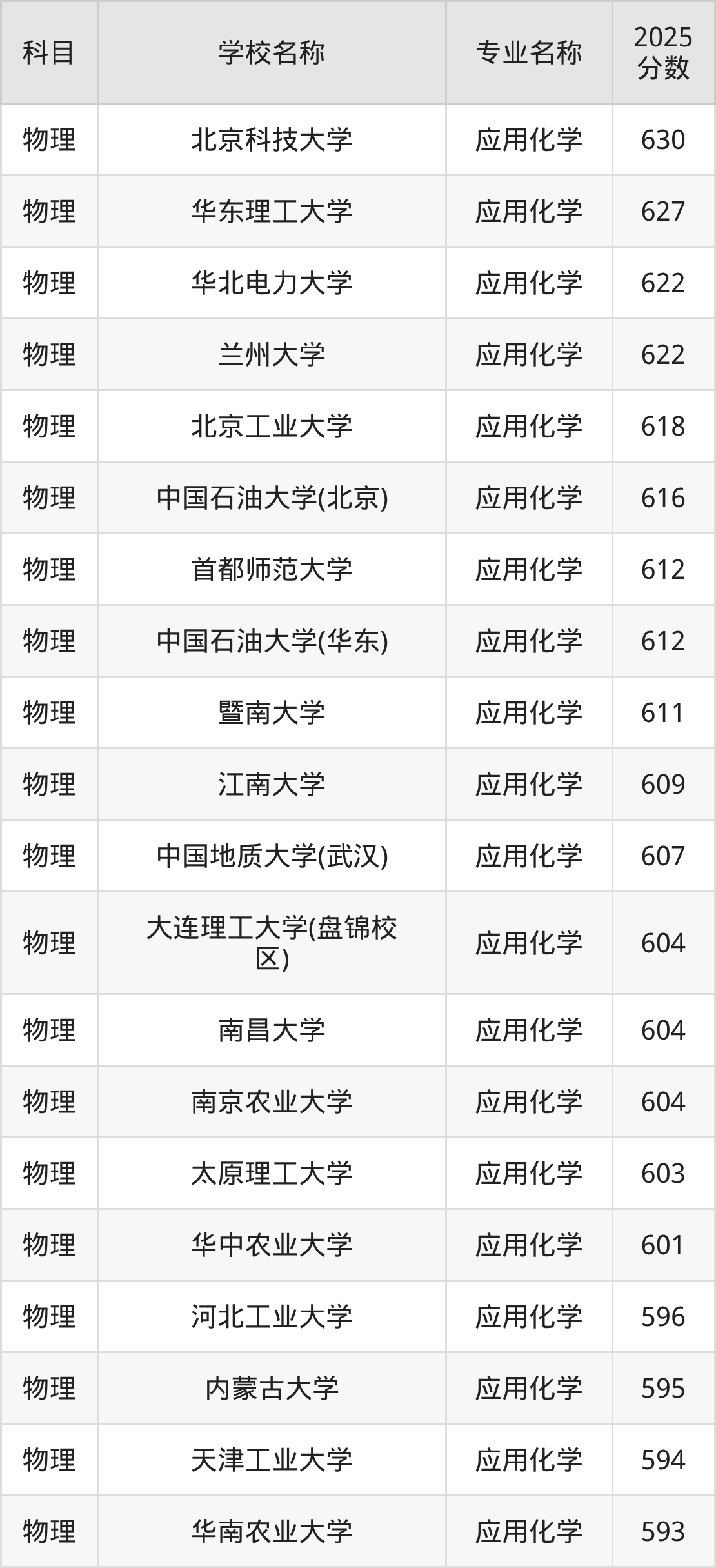 | 华北电力大学(保定) | 应用化学 | 607 |