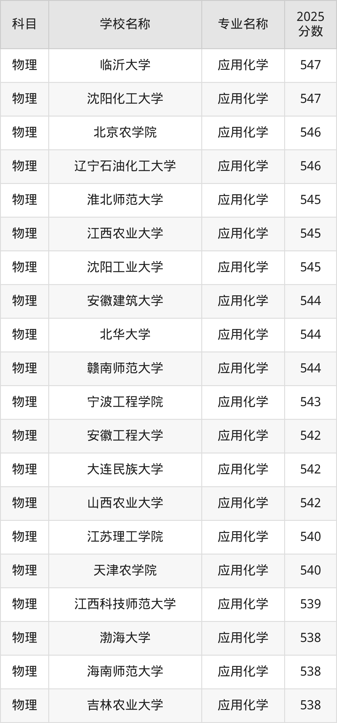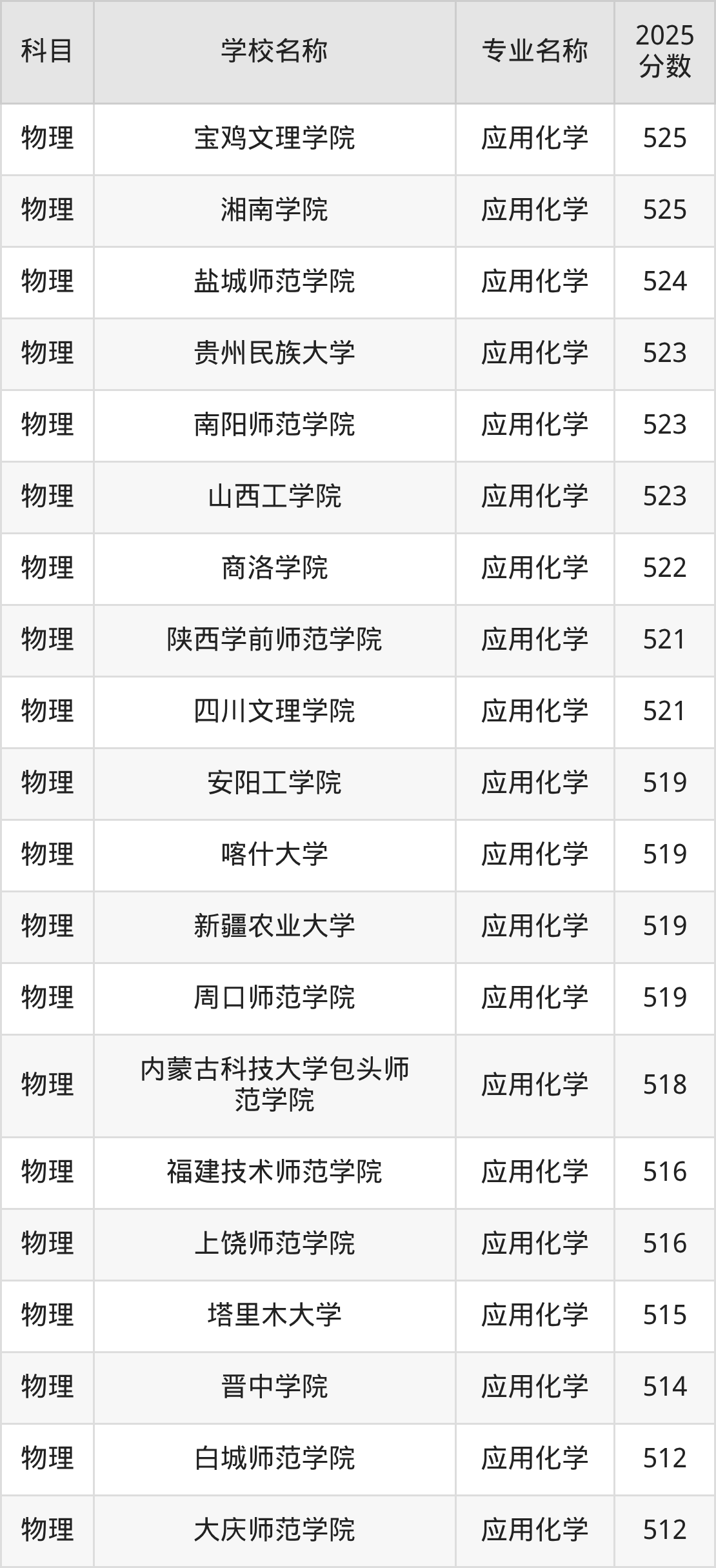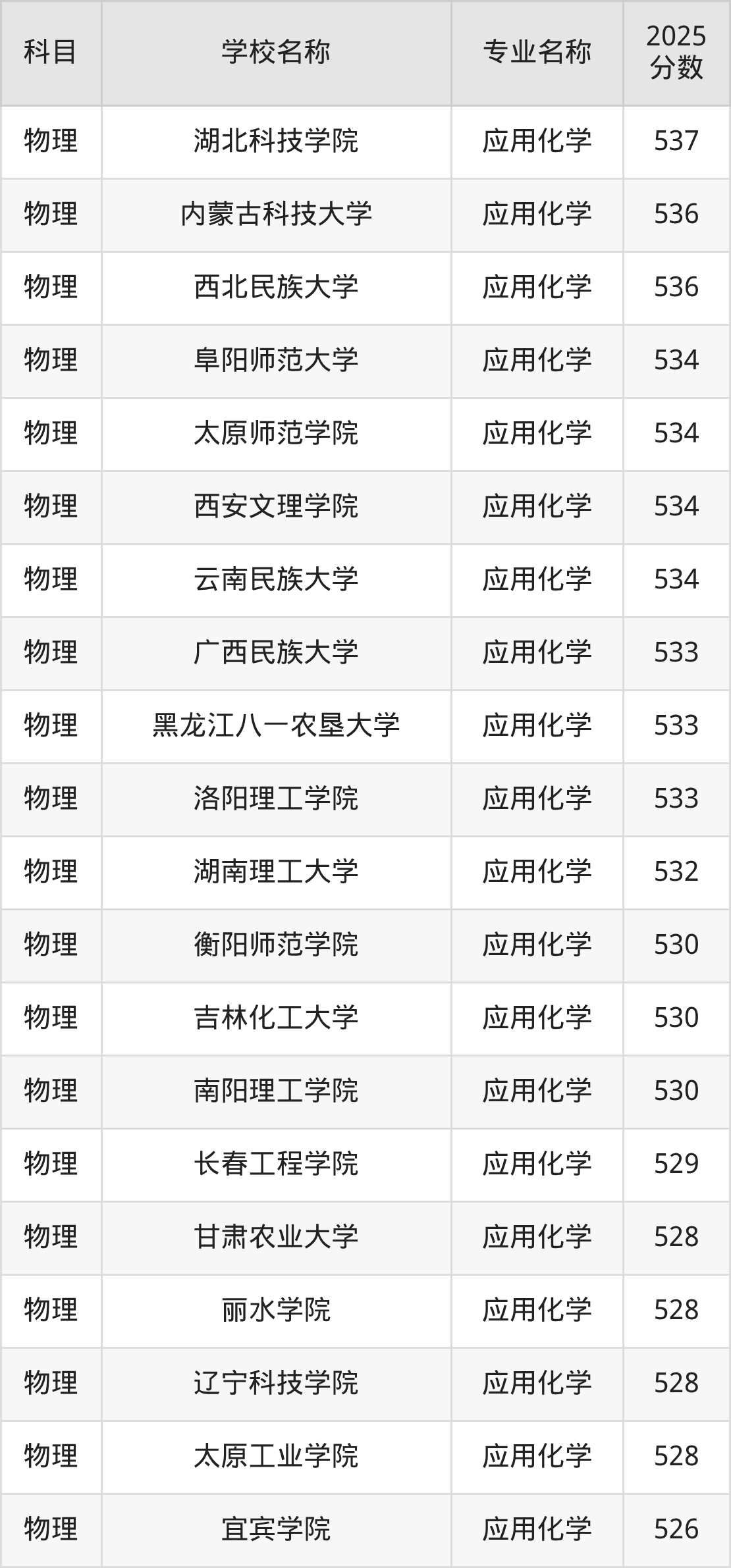 下文将为大家展示河北省大学应用化学专业2025年在河北高考的最低录取分数线!