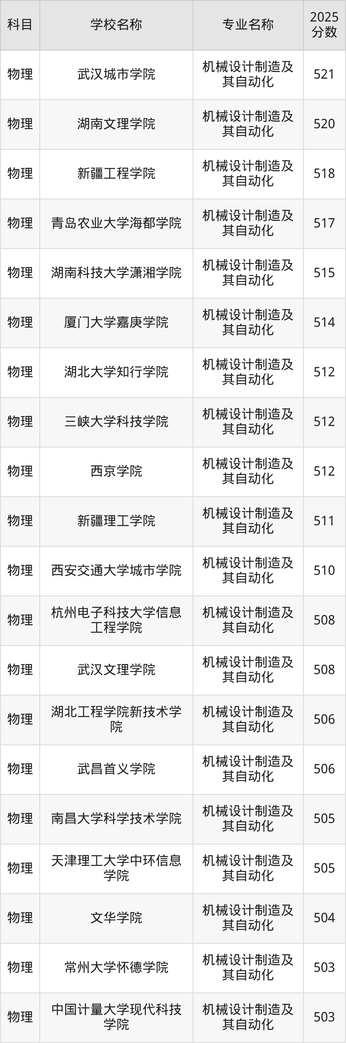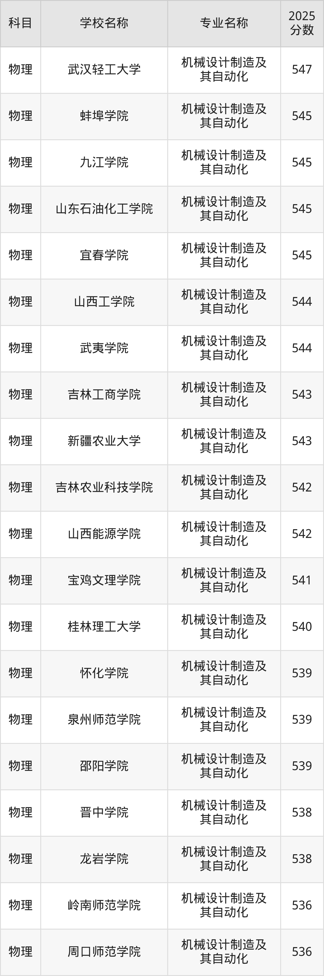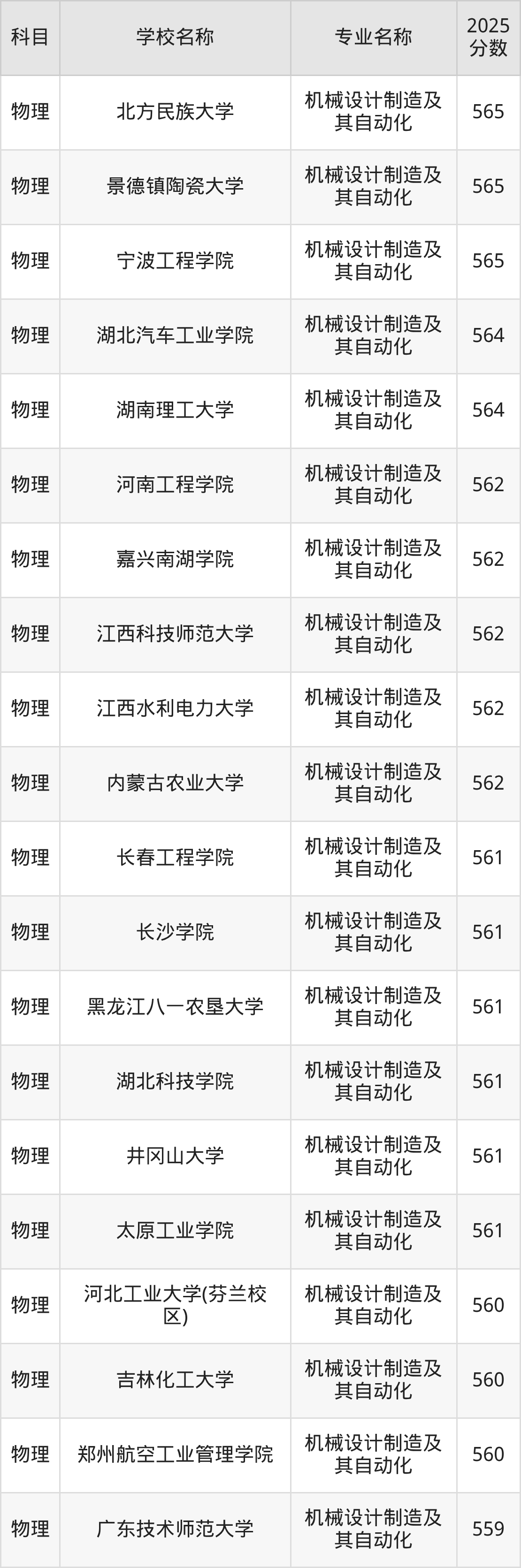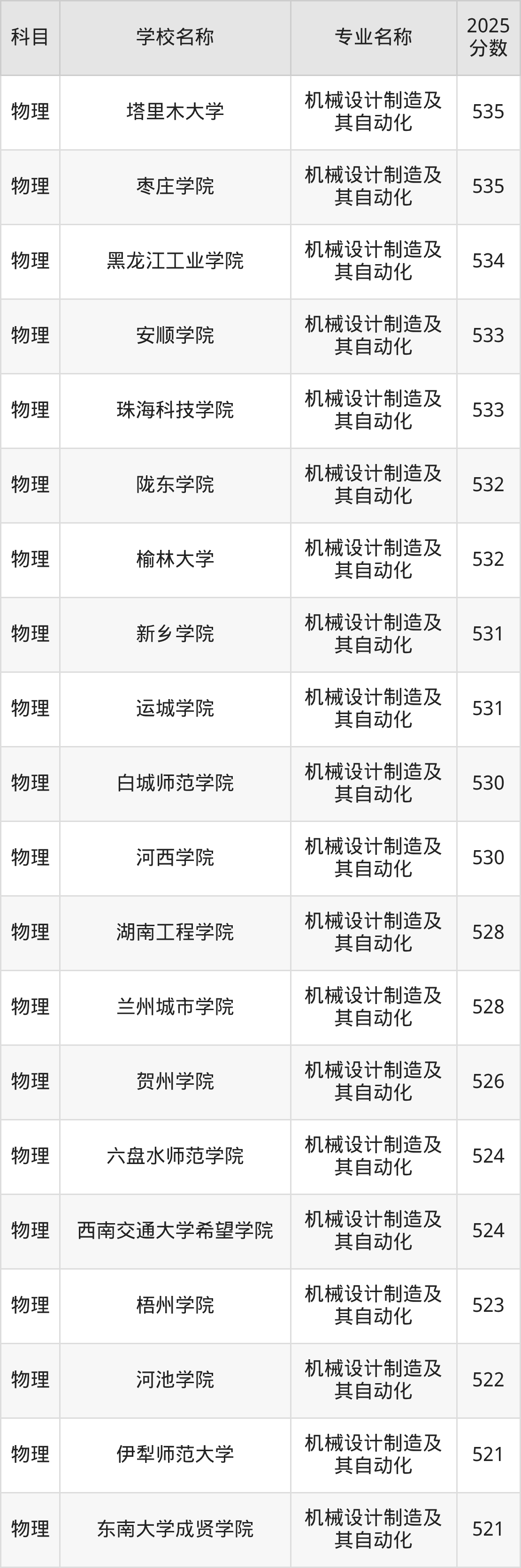| 学校名称 | 专业名称 | 2025 分数 |