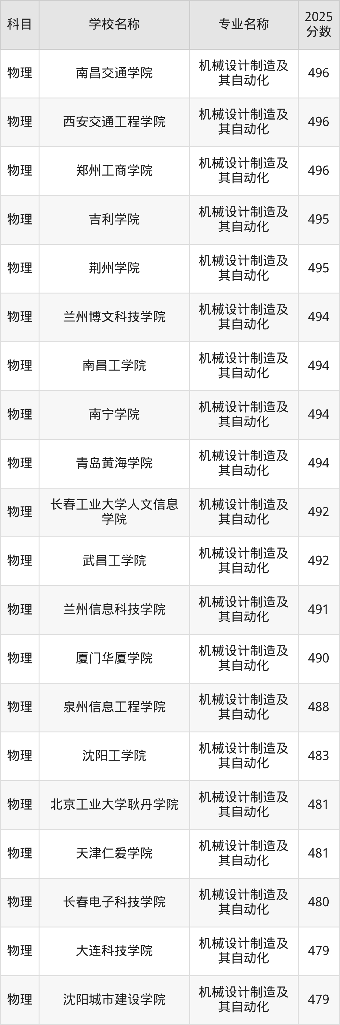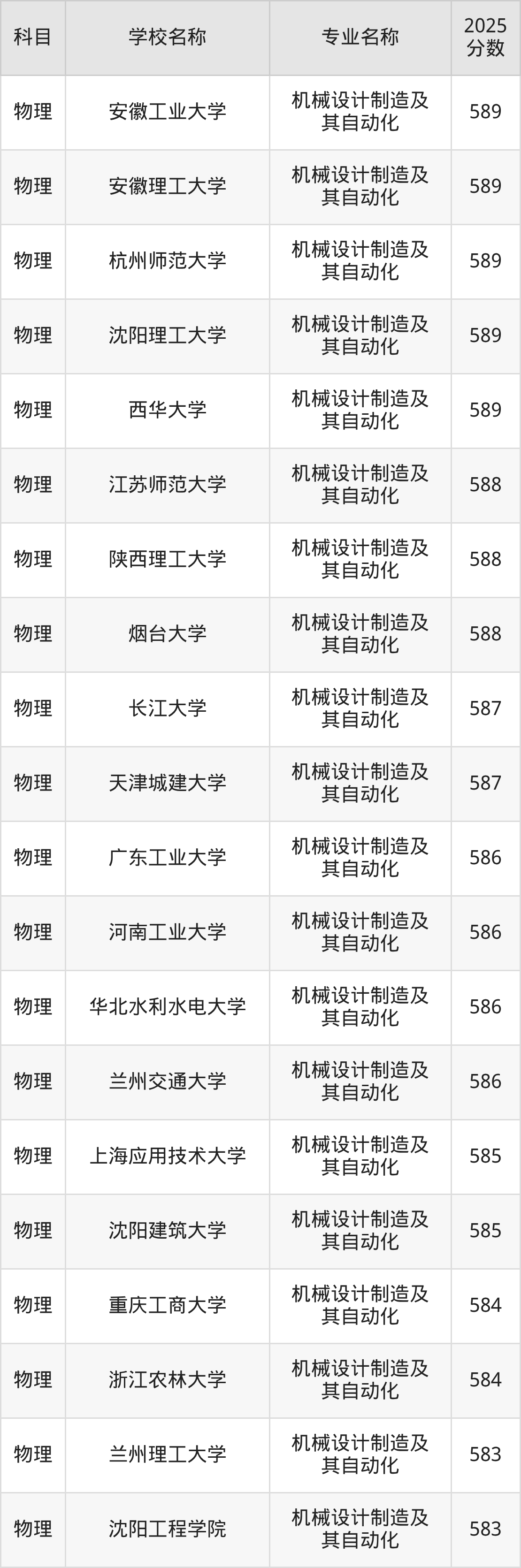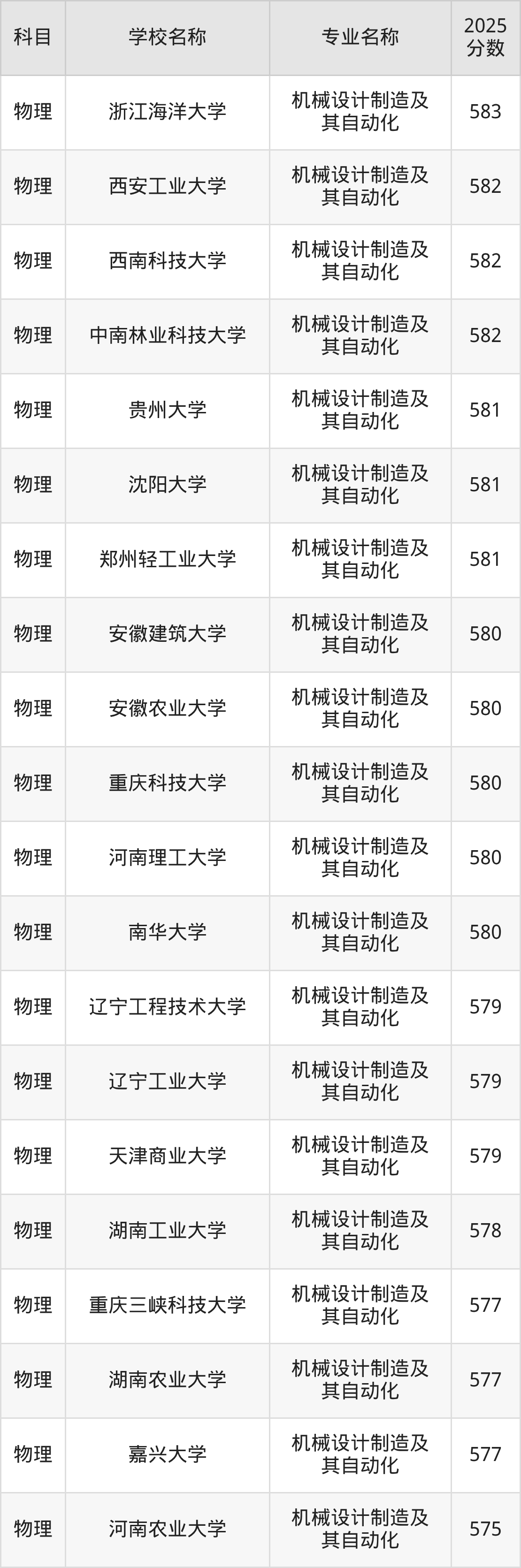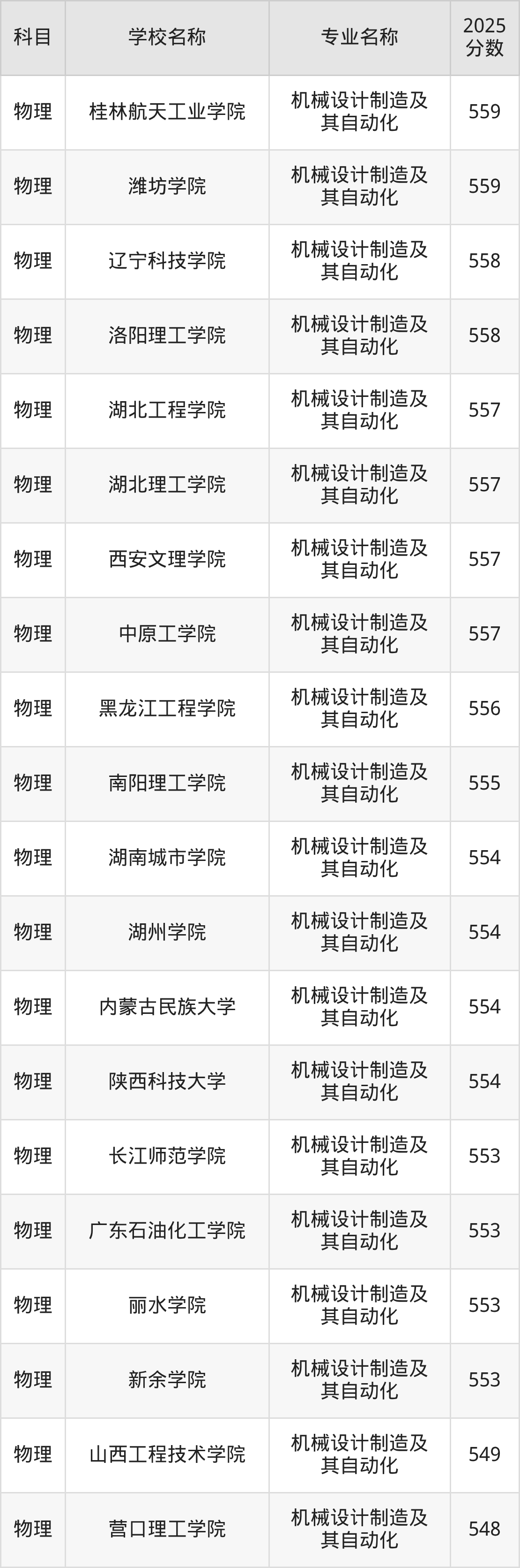 | 学校名称 | 专业名称 | 2025 分数 |