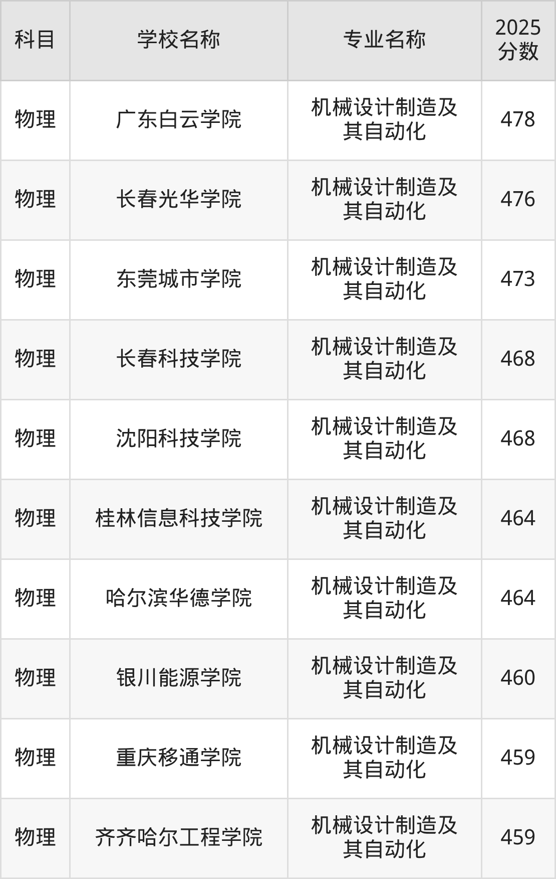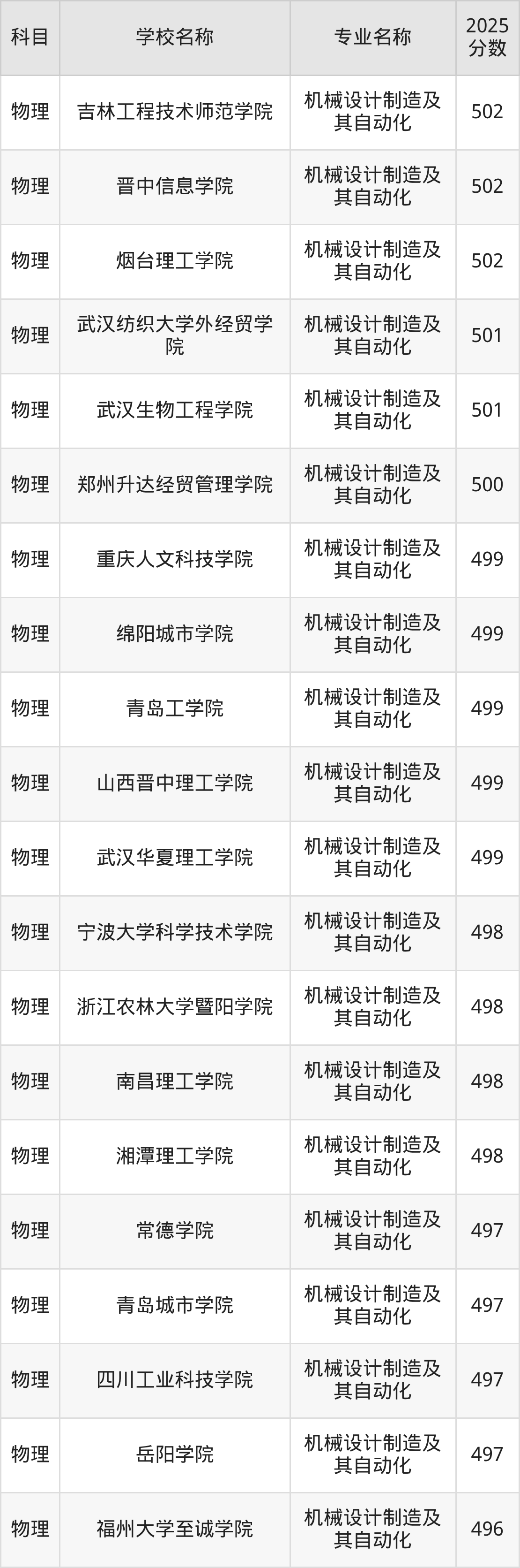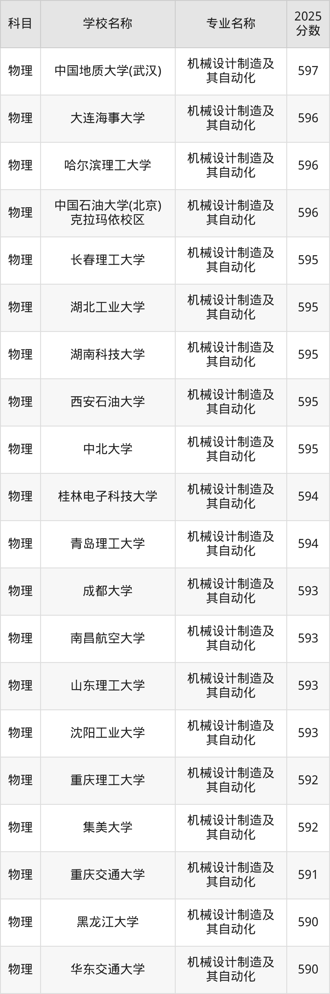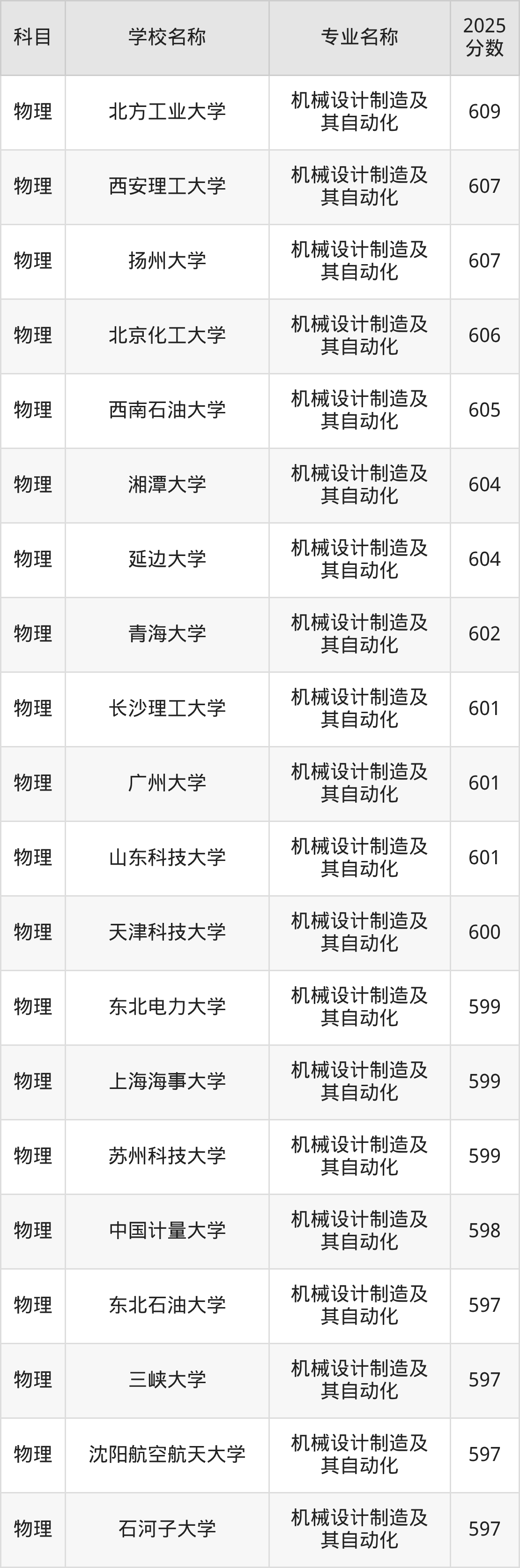 | 学校名称 | 专业名称 | 2025 分数 |