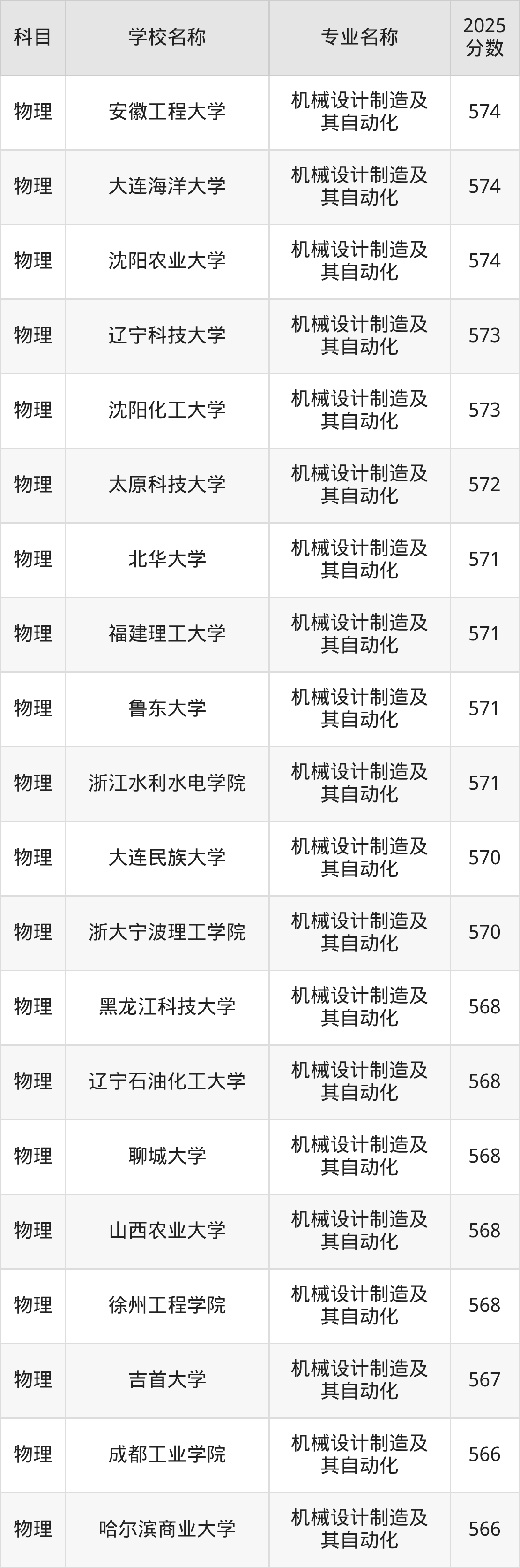 | 华北理工大学 | 机械设计制造及 其自动化 | 574 |