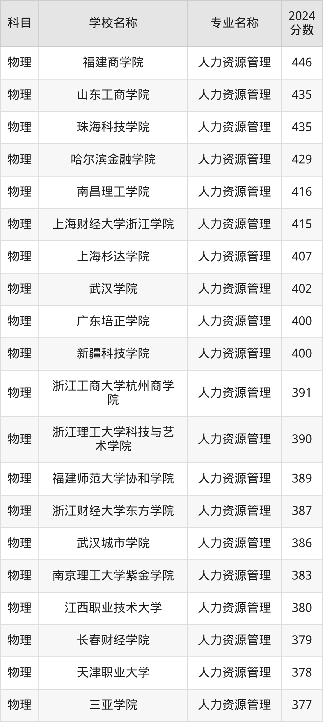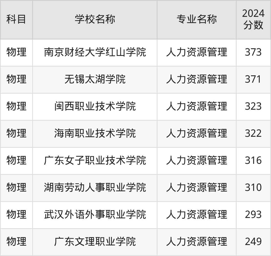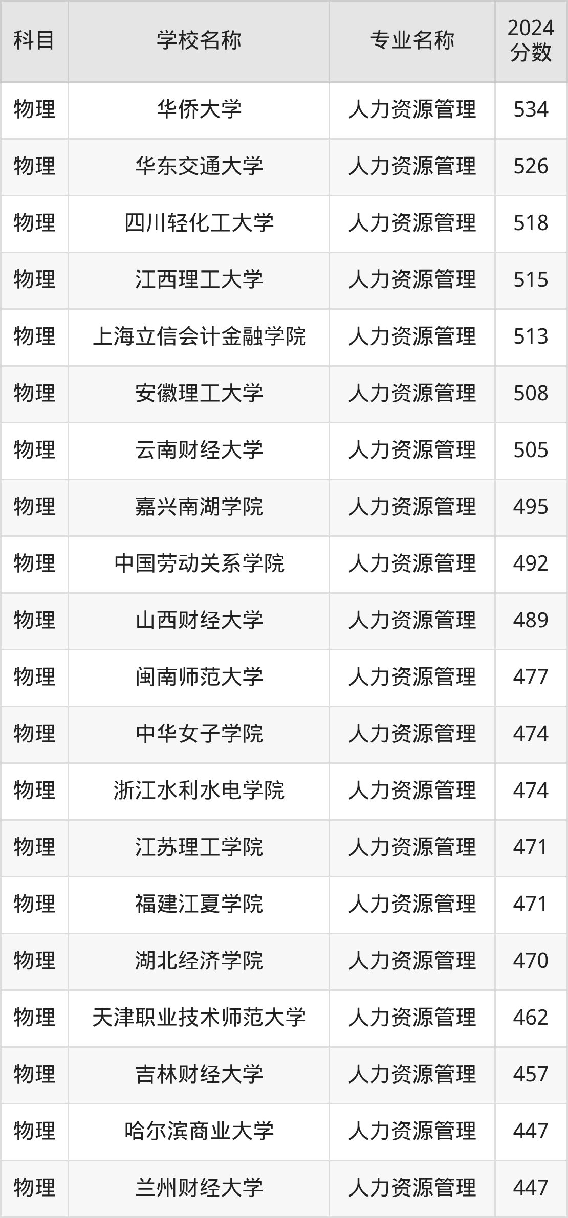 下文将为大家展示广西壮族自治区大学人力资源管理专业2024年在广西高考的最低录取分数线!