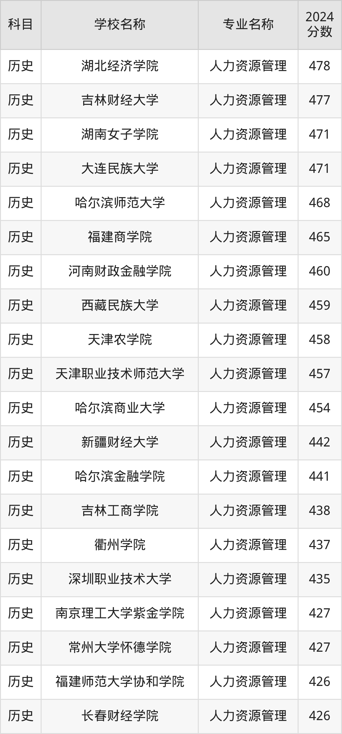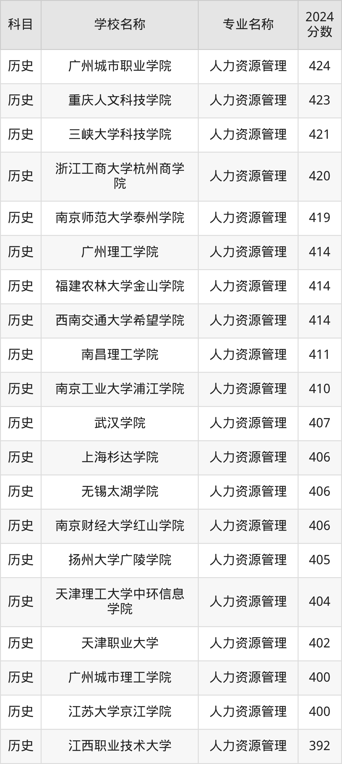 广西高考历史组:人力资源管理专业的最低分是207分~540分