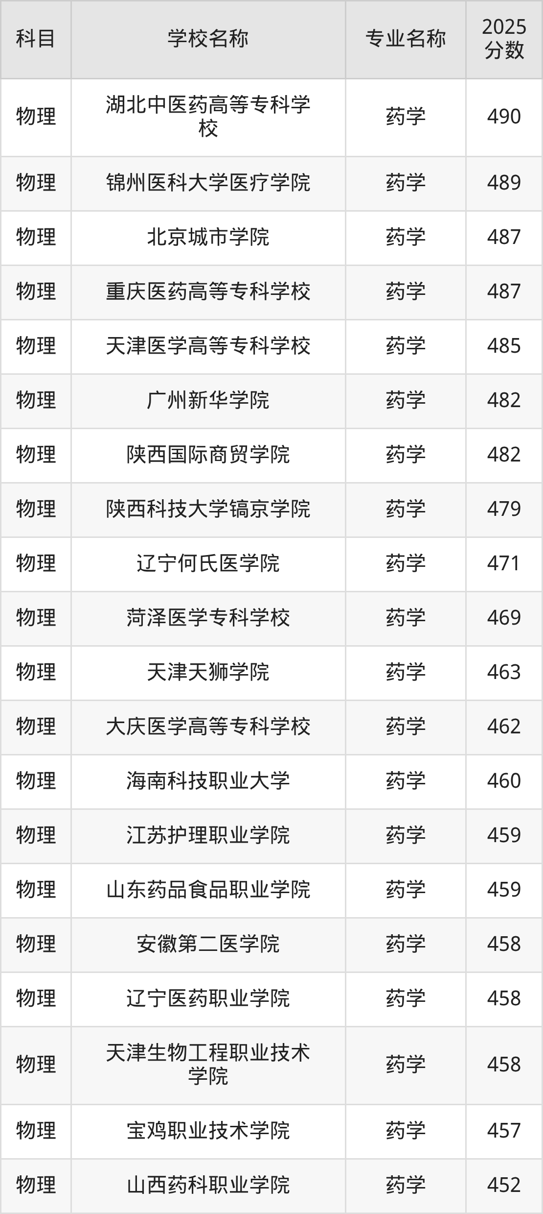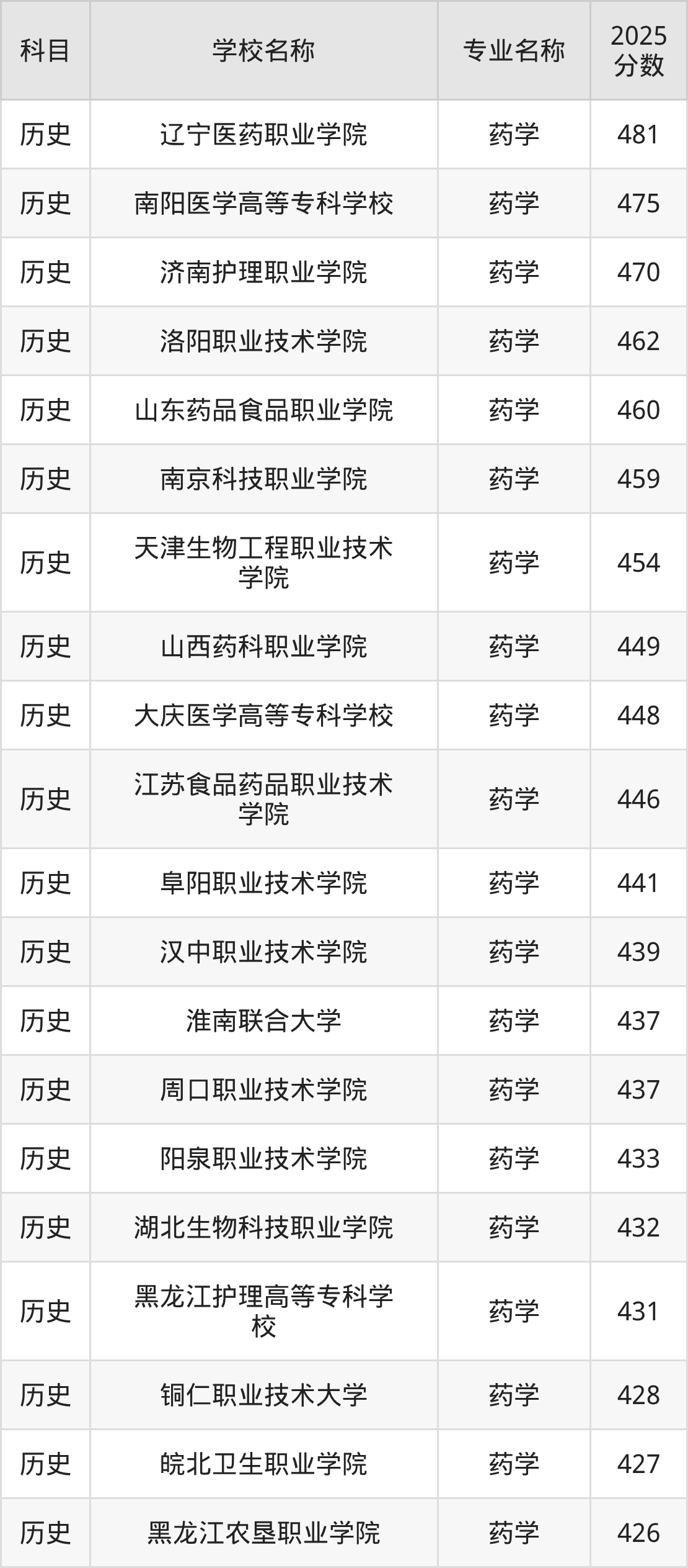 | 河北化工医药职业技术 学院 | 药学 | 462 |