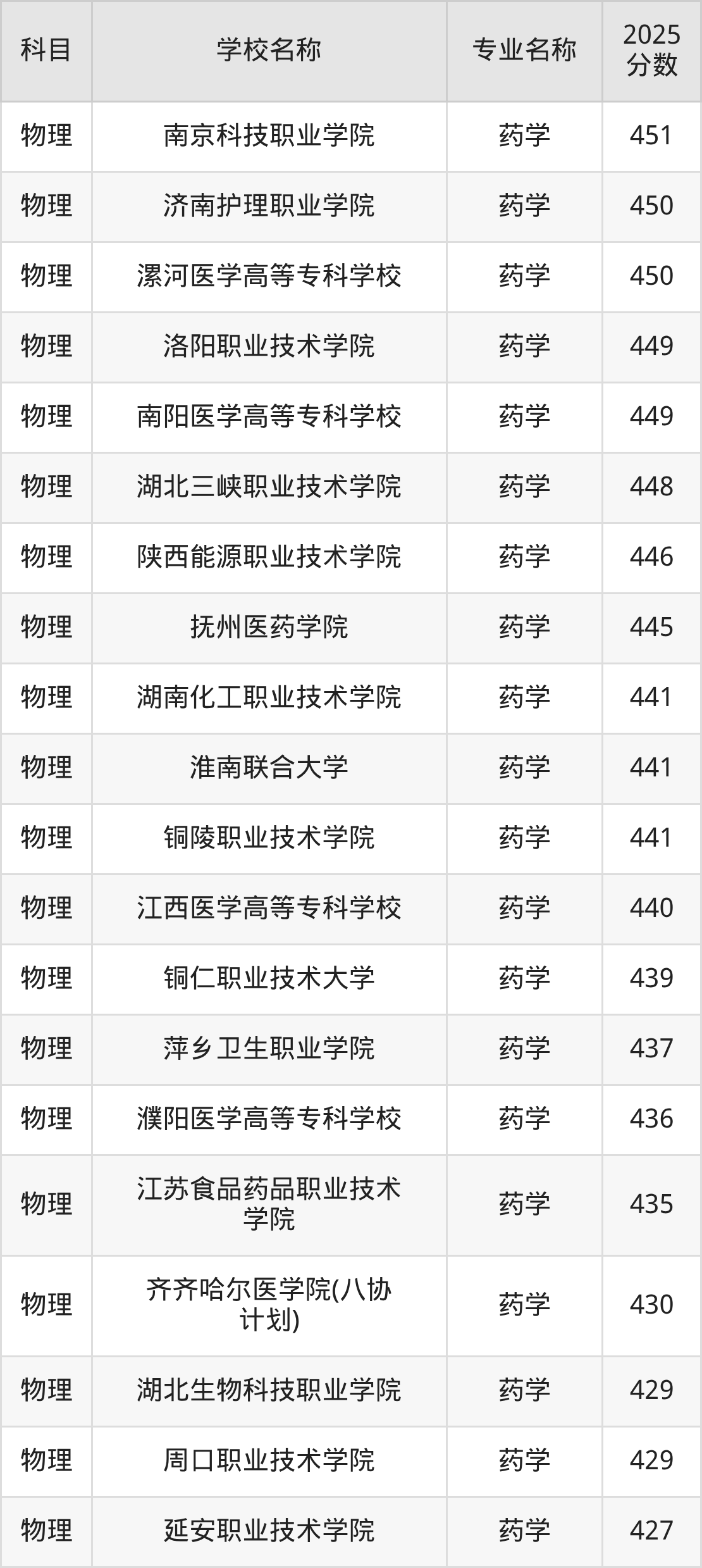 | 沧州医学高等专科学校 | 药学 | 439 |