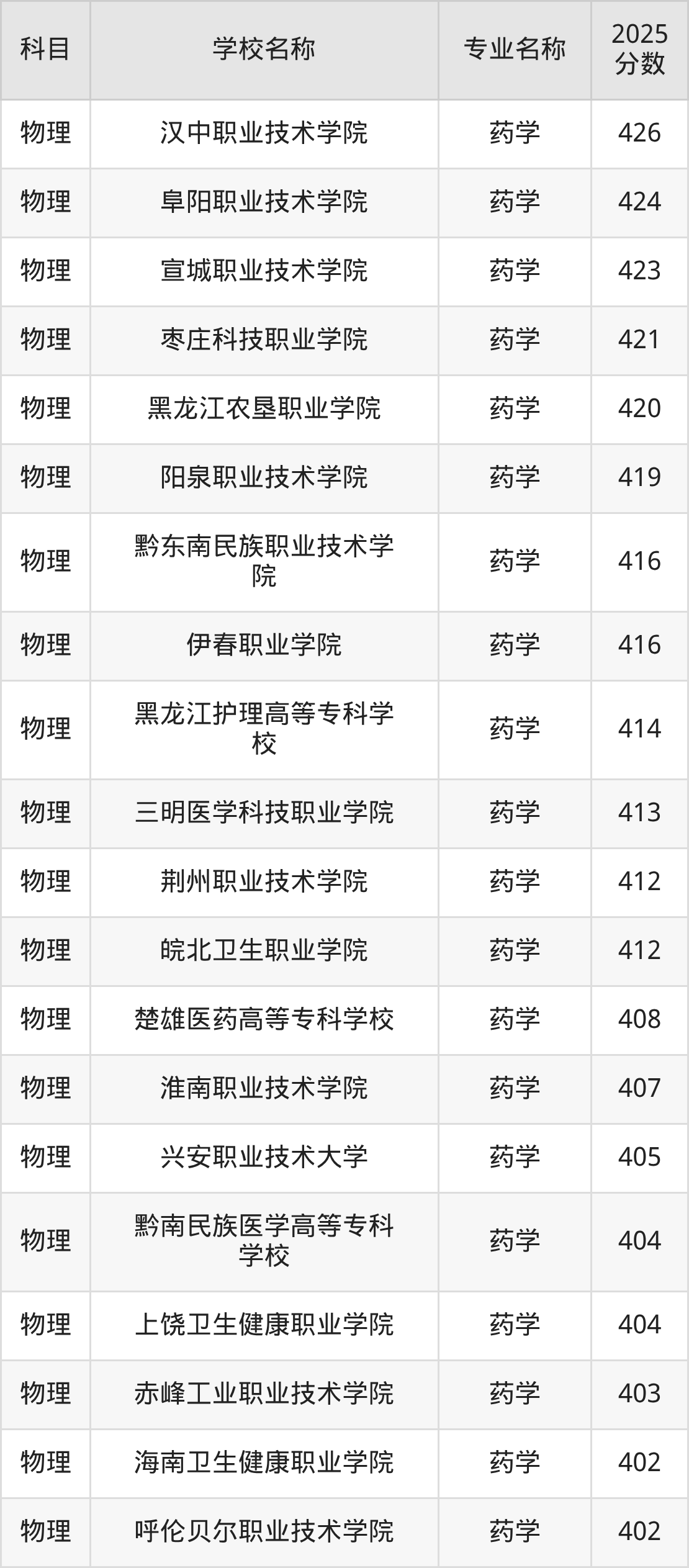 | 石家庄科技信息职业学 院 | 药学 | 380 |