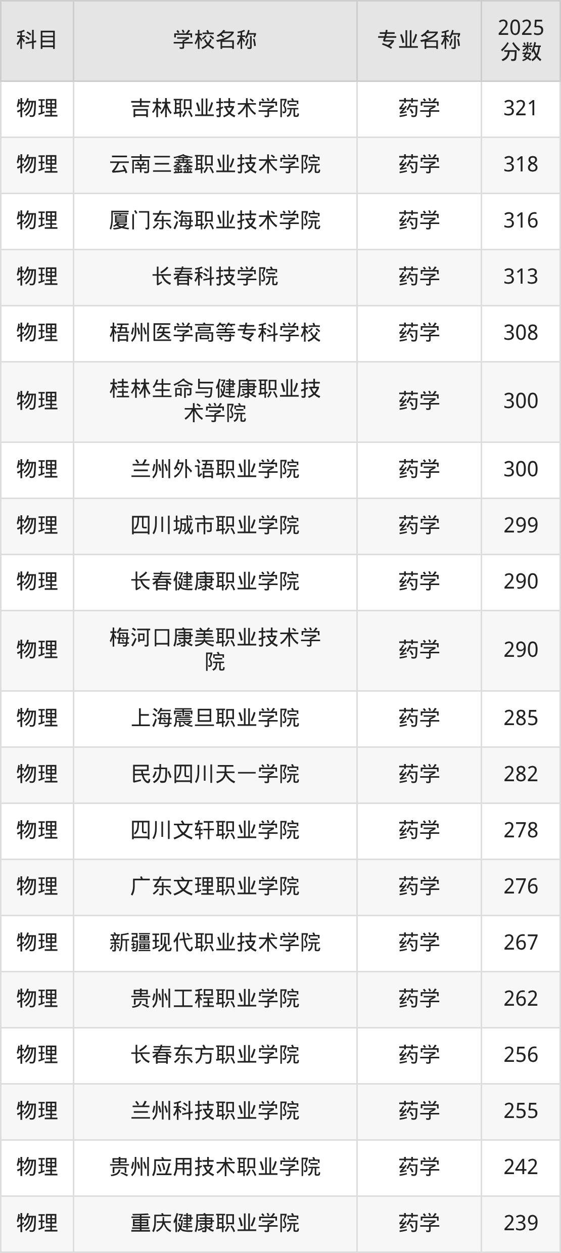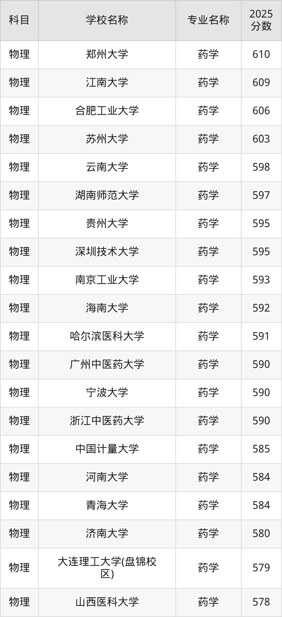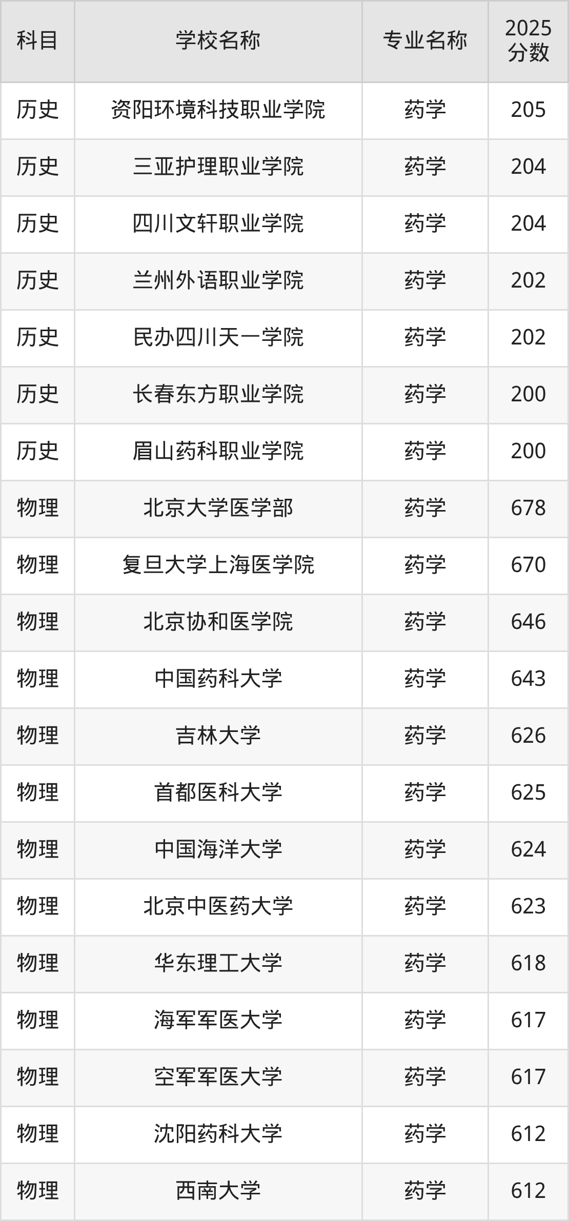 | 学校名称 | 专业名称 | 2025 分数 |